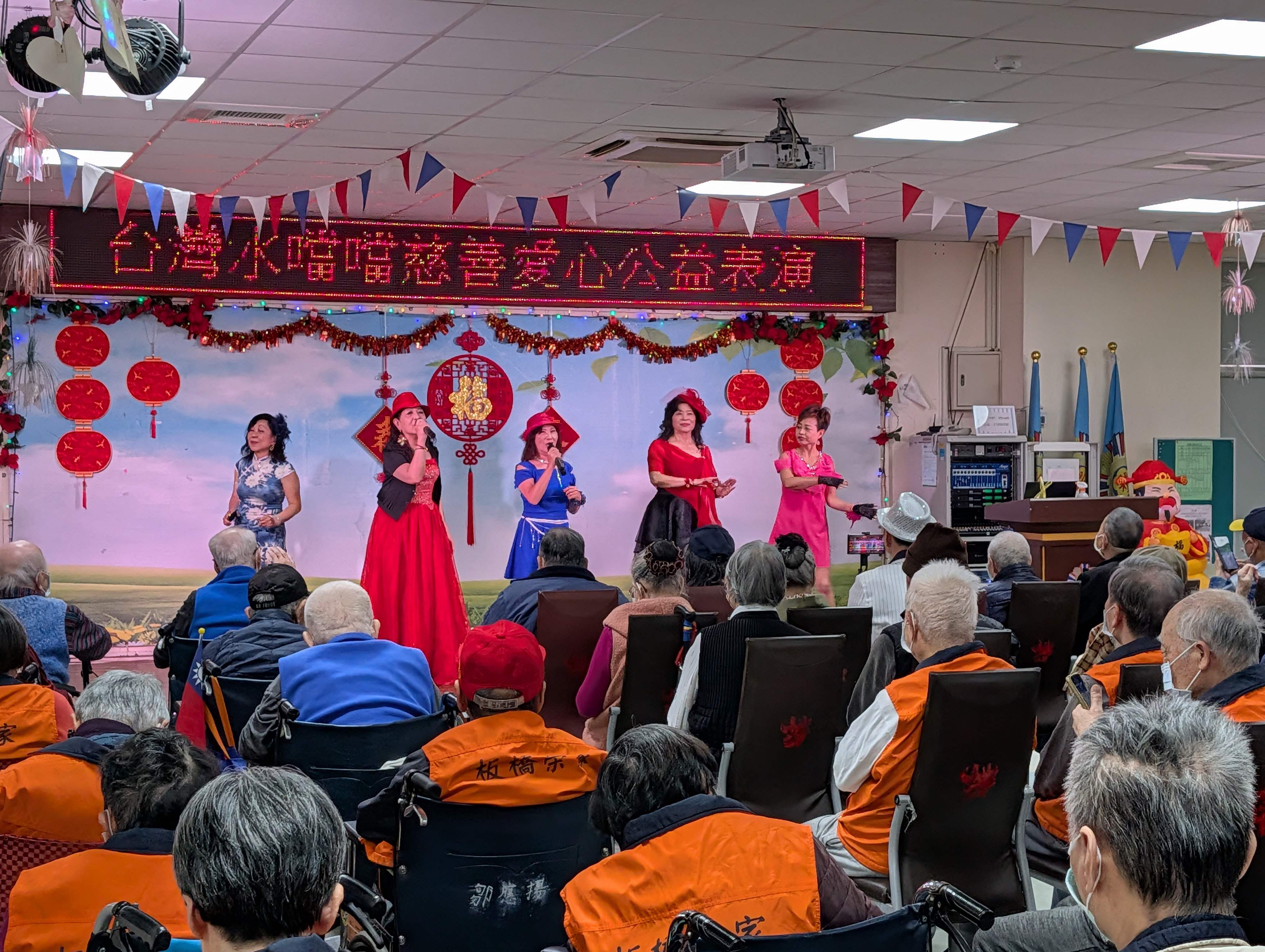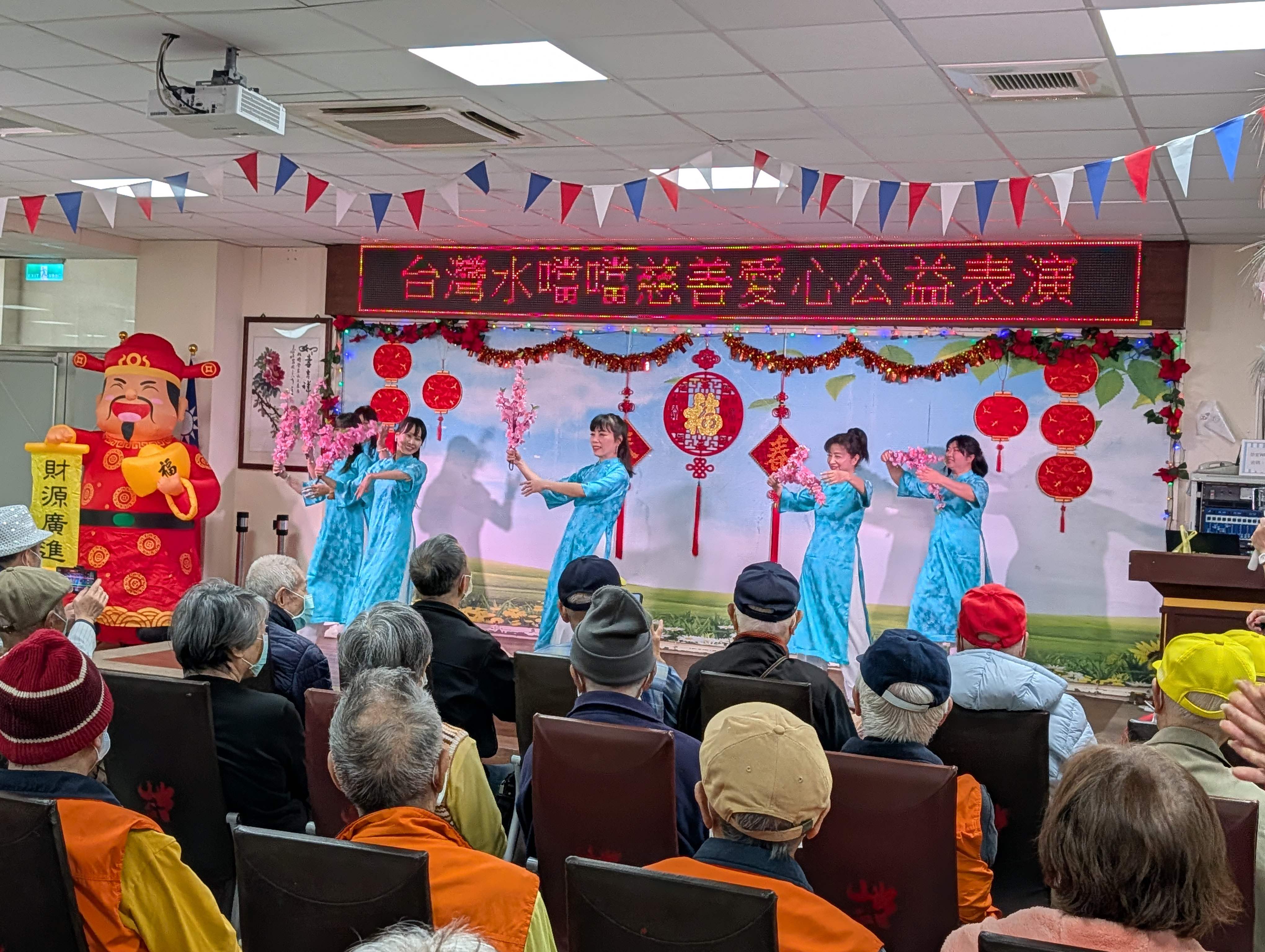春暖花開之際,台灣水噹噹慈善愛心團隊蒞臨板橋榮家,為長輩舉辦愛心公益表演,由團長謝緹雯領軍,帶領多位實力派藝友,為榮家的長輩們帶來一場充滿經典金曲與傳統文化的感官盛宴。