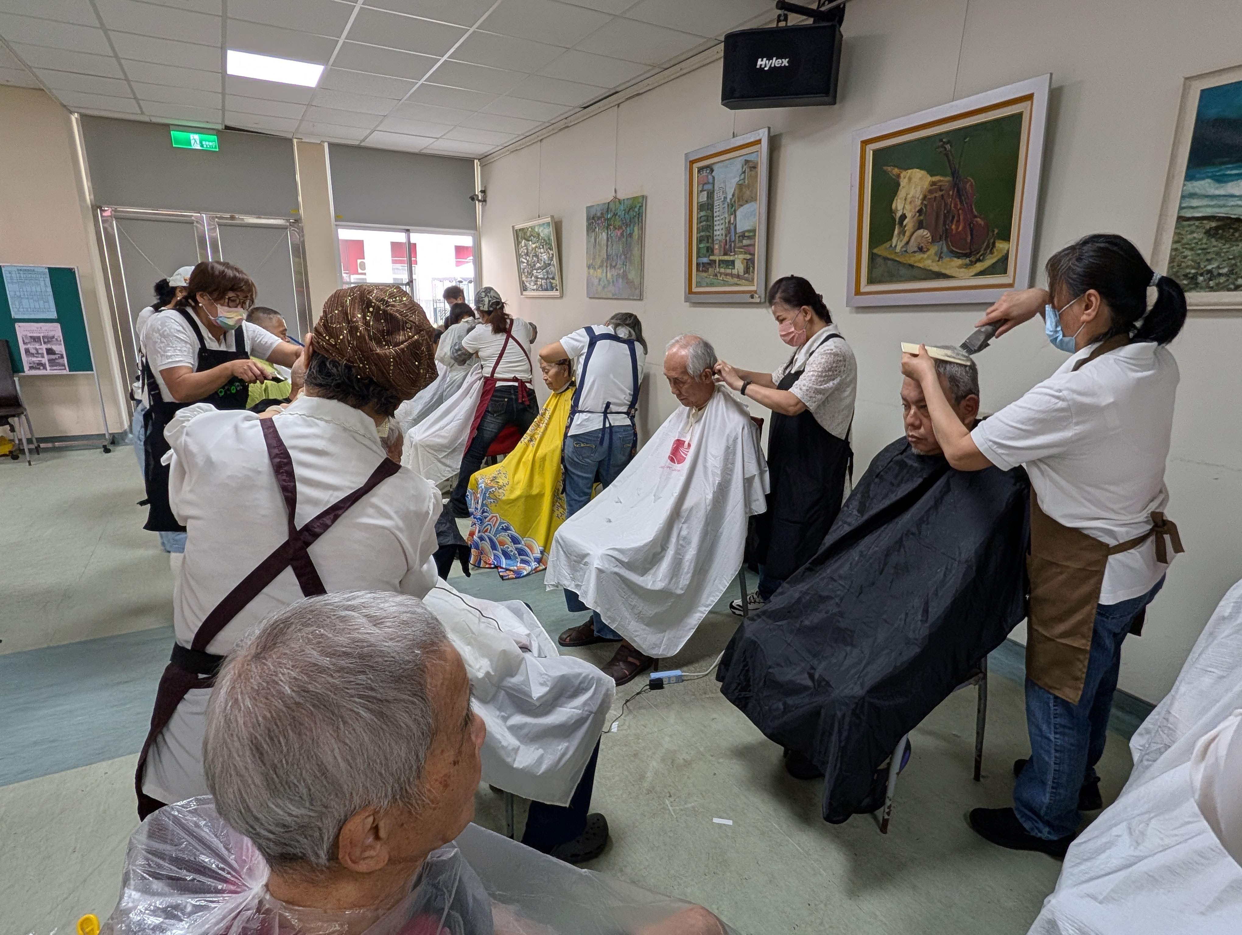 週一早晨,板橋榮家每月最重要的服務就是由「喬琳多寶」主辦的「轉動愛~義剪暨關懷表演活動」,長輩們非常期待的一早7點半就來到現場等待義剪,活動在專業義剪服務與豐富的藝文表演中進行,為榮家長輩在一星期的一開始就帶來身心慰藉。