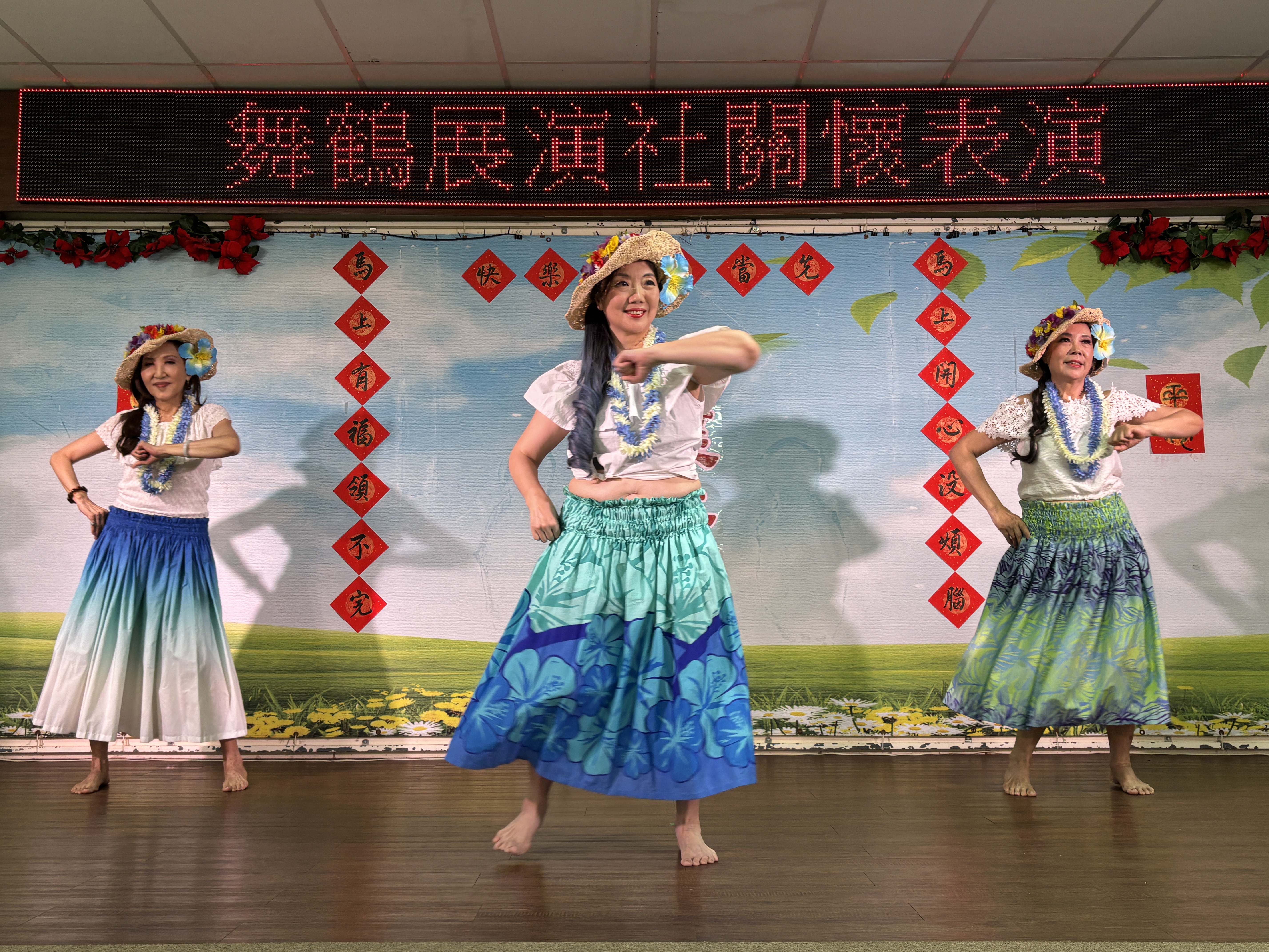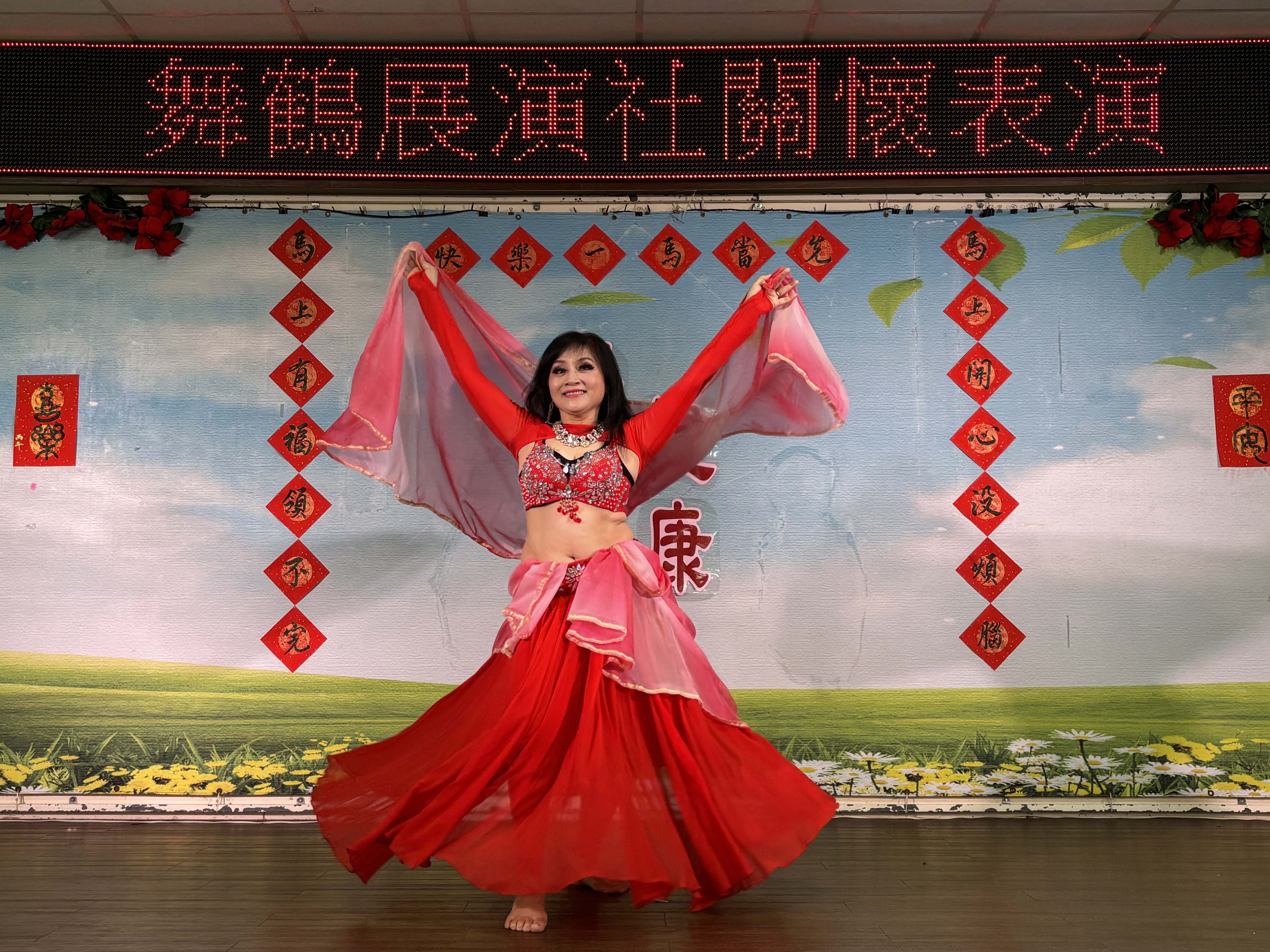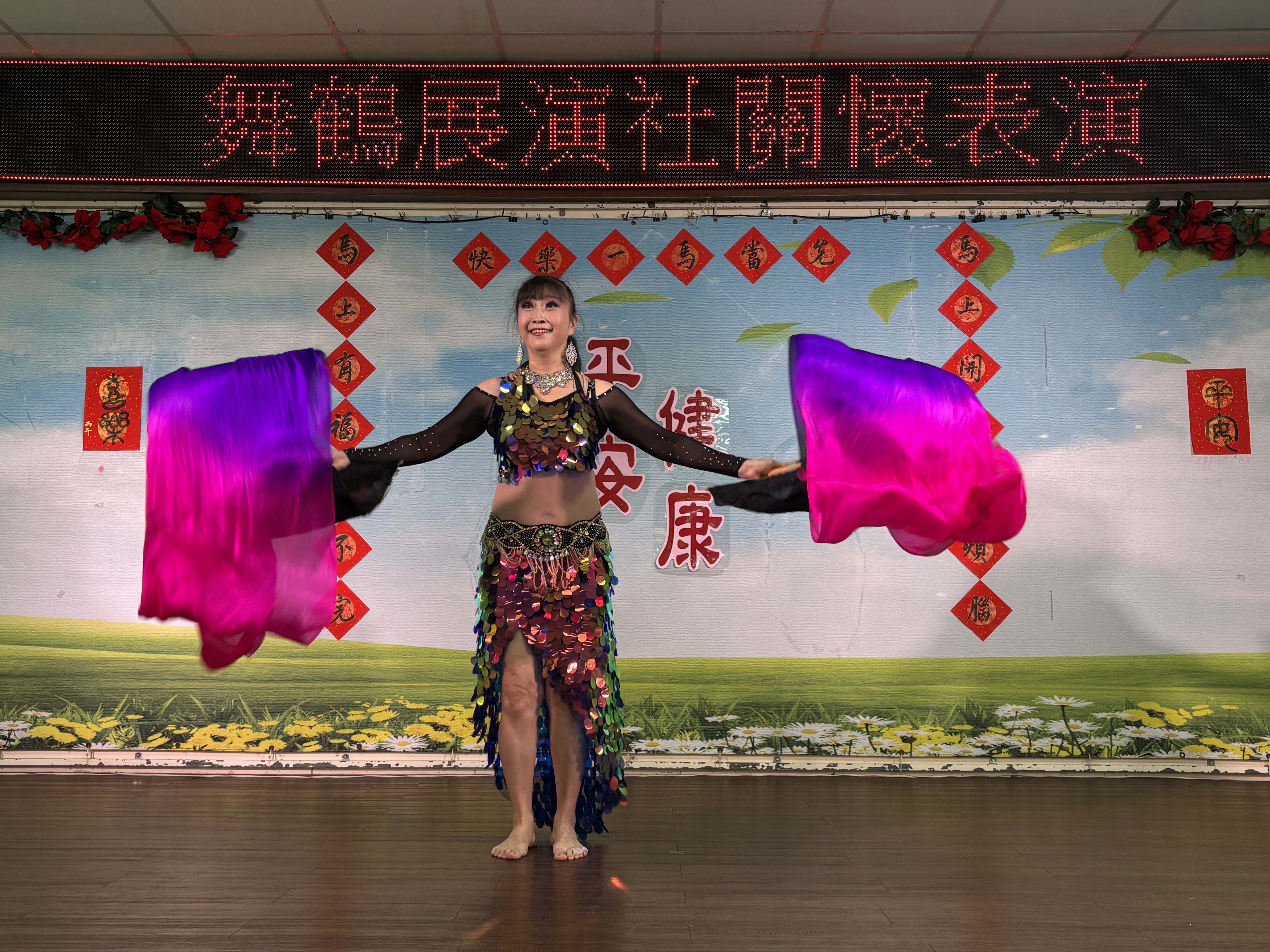 炎熱的午後,「安三人組」優雅的夏威夷舞演出,瞬間帶來清涼,麗雯老師節奏感十足的印度舞及肚皮舞,不斷地旋轉讓長輩看得目不轉睛,貞順老師美麗優雅的飄扇舞及紗巾舞,讓長輩都給予熱烈掌聲。