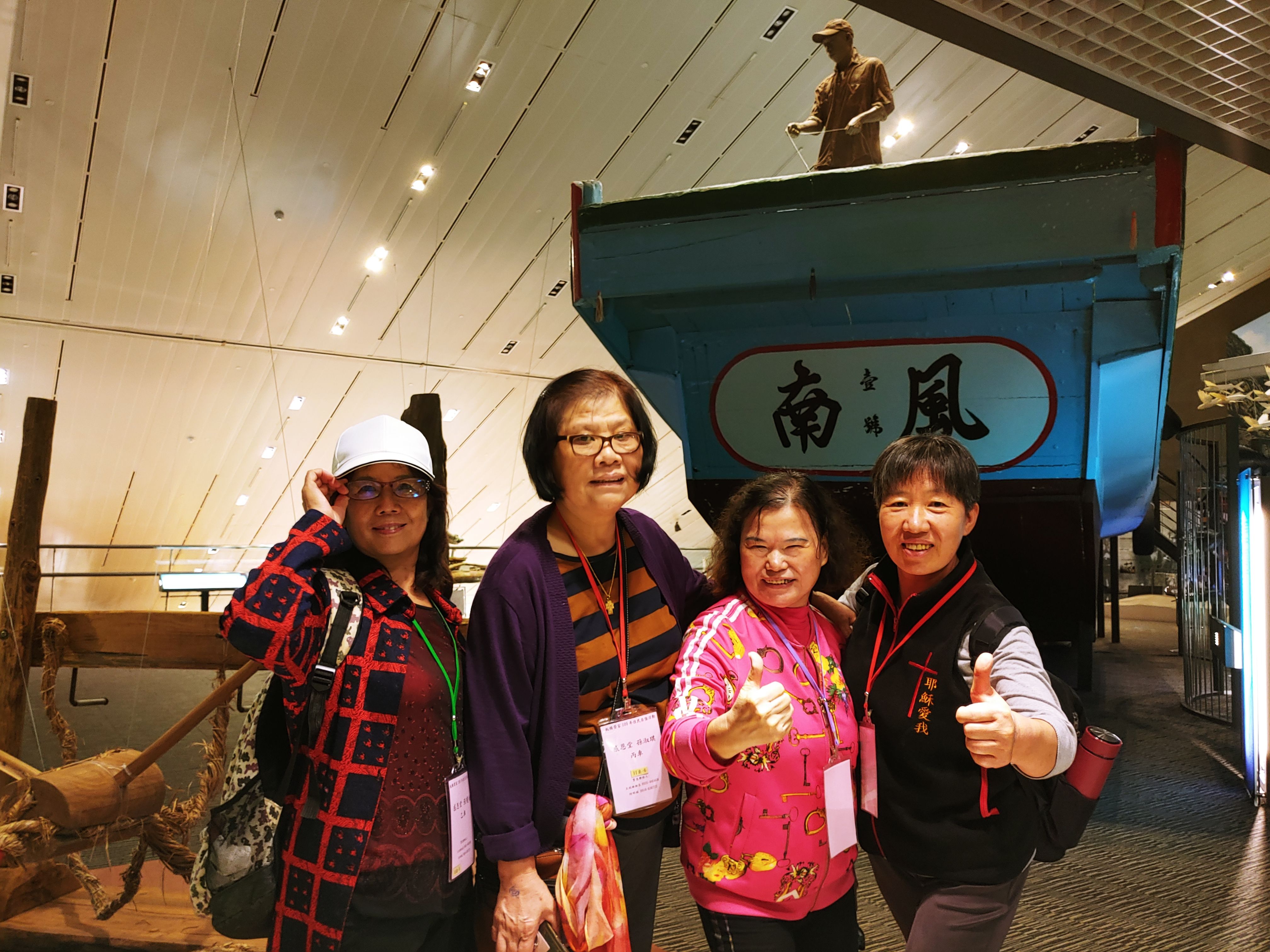 下午來到獲得國內外多項建築大獎的蘭陽博物館,長輩們看著展區呈現宜蘭大地特有的「山、平原、海」地理環境與人文軌跡,都很認真看解說牌研究了起來,並欣賞從高處眺望窗外的烏石港景色,長輩們聚在一起互相拍照,互相指點姿勢,希望把美好的風景都紀錄下來。