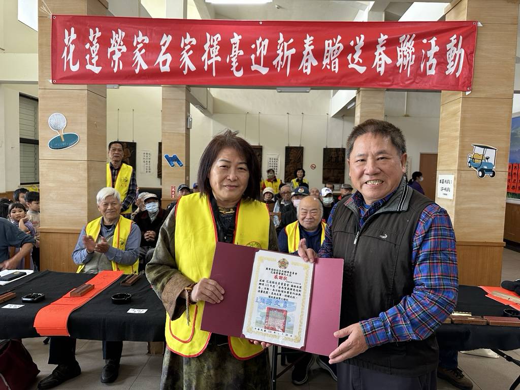 花蓮榮家家主任游文勇表示,春聯不僅是過年期間的重要象徵,更承載著對新年的期盼與祝福。藉由揮毫活動,讓住民重溫傳統年節記憶,感受到榮家對住民身心關懷的用心。同時,他很感謝書法老師們長期支持公益活動,讓書法成為連結人心、傳遞溫暖的重要媒介。