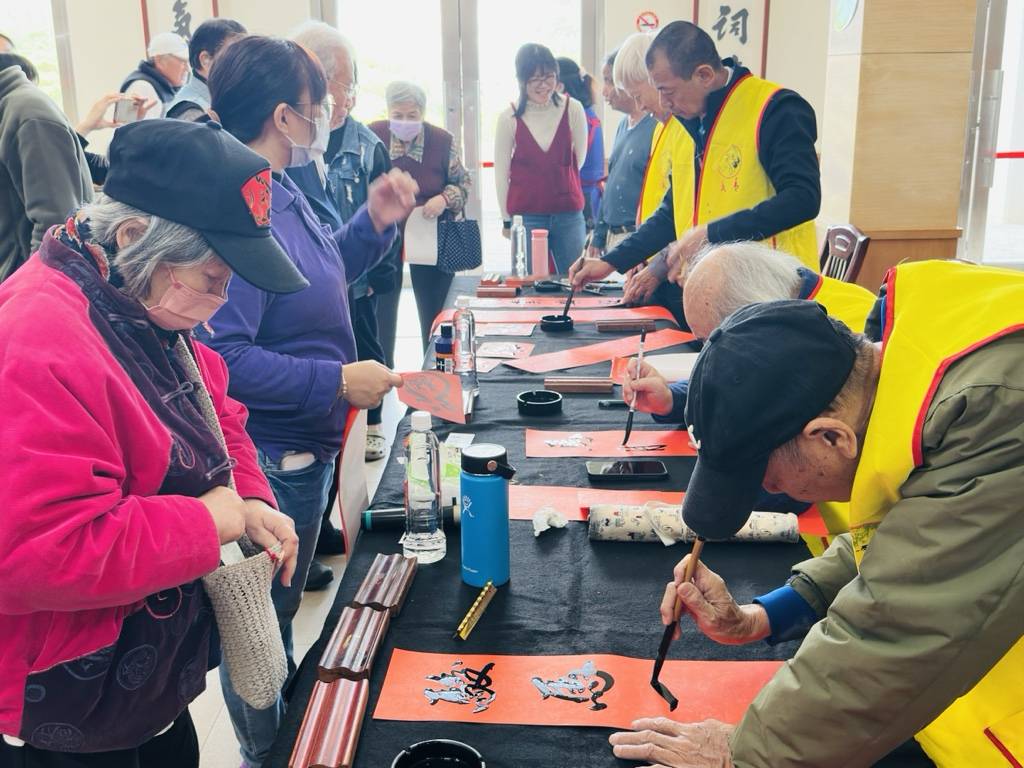 書法老師們個個揮灑自如、筆勢或遒勁或秀麗,隸書、楷書、行書各具風格,一幅幅象徵吉祥如意的春聯陸續完成,吸引住民圍觀欣賞,並踴躍索取春聯。頓時,「福」、「春」、「金馬迎春」、「馬到成功」等祝賀詞語,躍然紙上,住民拿到春聯後表示,在榮家提前感受到過年的氣氛,心情格外愉快。