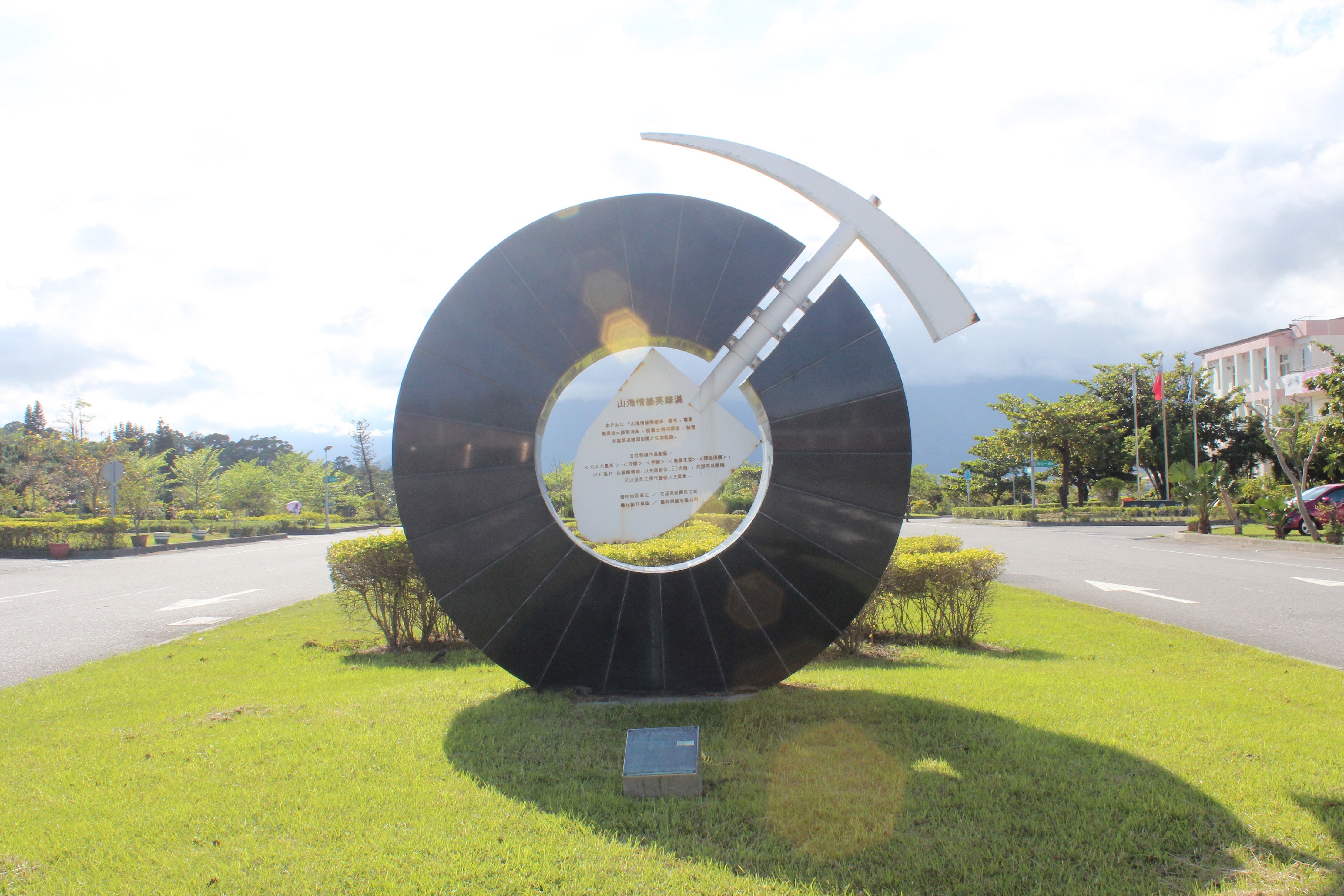 (一)歸回田園,作品說明:轉化可象徵榮民身份與現況的物品造型─圓鍬、十字鎬,以強調藝術作品之「入口意象」標誌性功能。歸回田園,傳統中國意為退除塵世與俗事,與「歸零」意思同。生命歸零,也可能就是生命的究極圓滿。園、圓、緣、零,諧音,意思也頗有相通處。