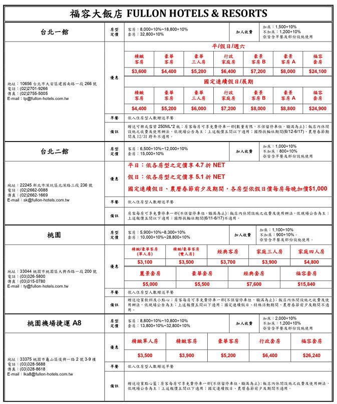 | 官方網址 | https://www.fullon-hotels.com.tw/tp/tw/ (另開視窗) |