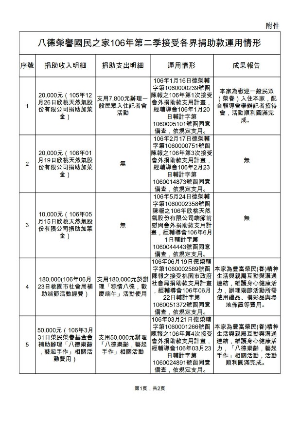 八德榮譽國民之家106年第二季接受各界捐助款運用情形01