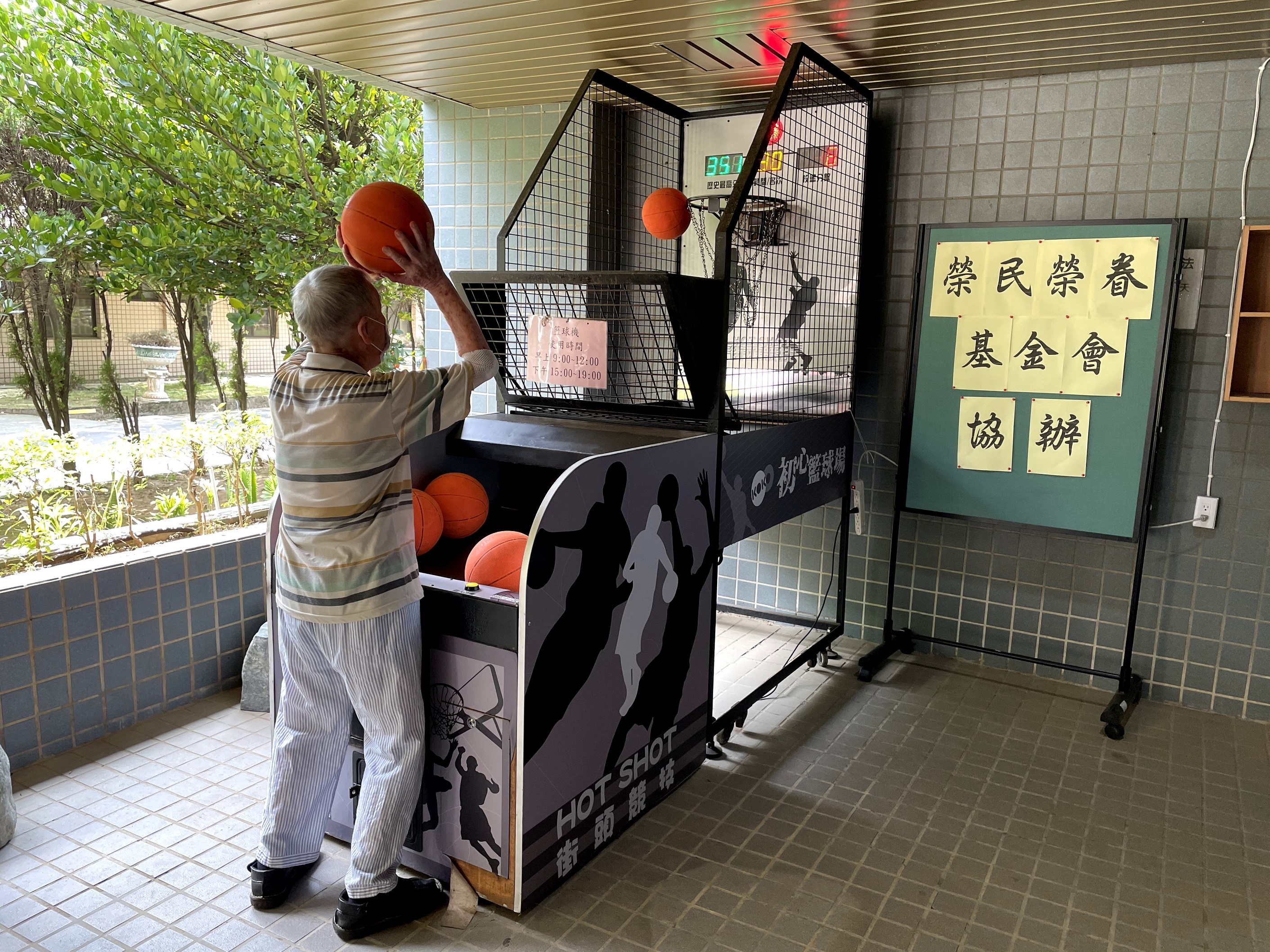 八德榮家在今年年初購置籃球機,希望可為住民帶來多樣化的健身、遊樂器材,李伯伯說他每天都會去挑戰自己的最高分數,希望有一天能贏過最高分,這次投籃比賽分年齡及性別比賽,李伯伯認為自己實力不會比同齡者差,對比賽獲獎信心滿滿。