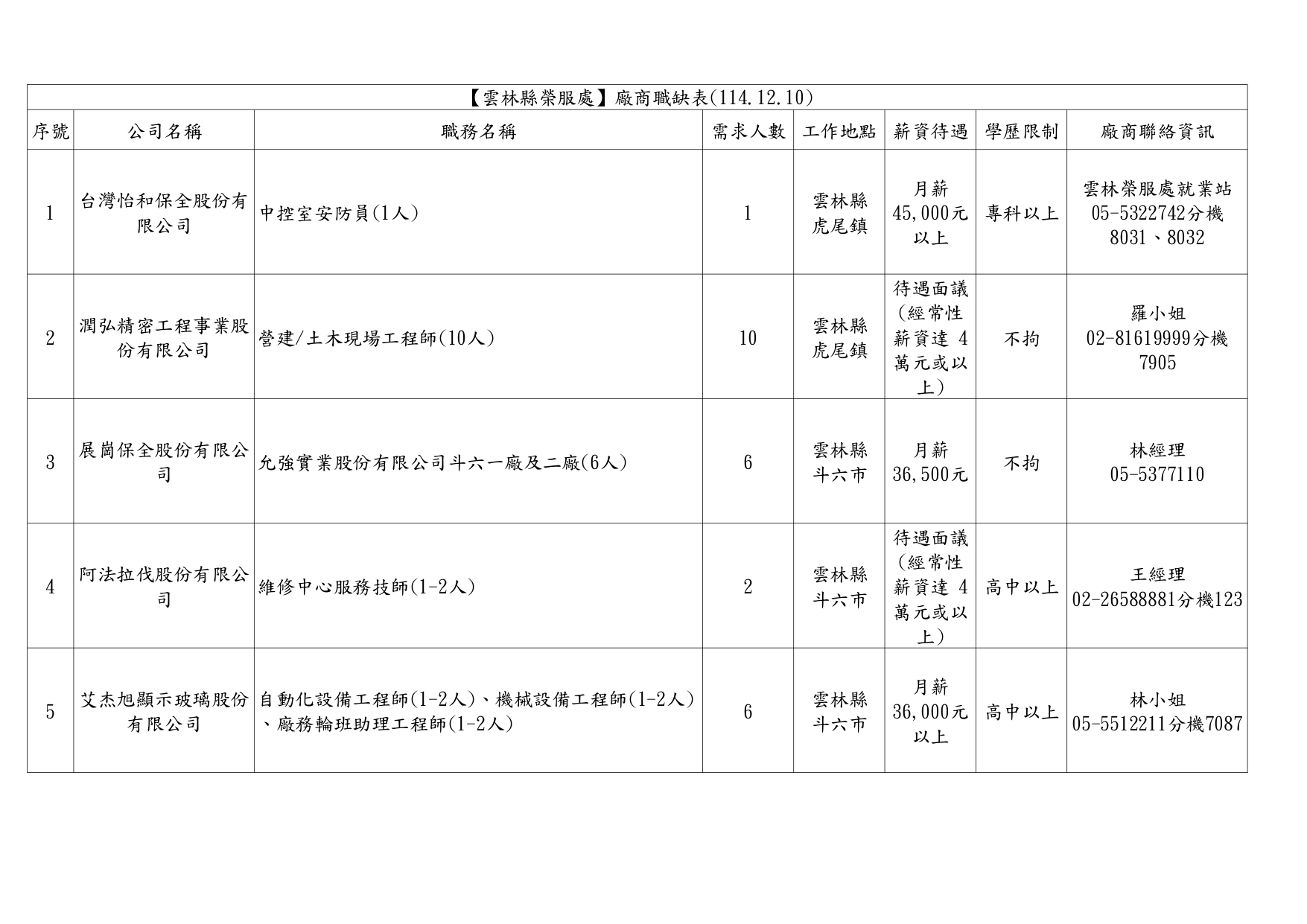 | 【雲林縣榮服處】廠商職缺表(114.12.10)+.pdf | 114-12-10 | 0 |