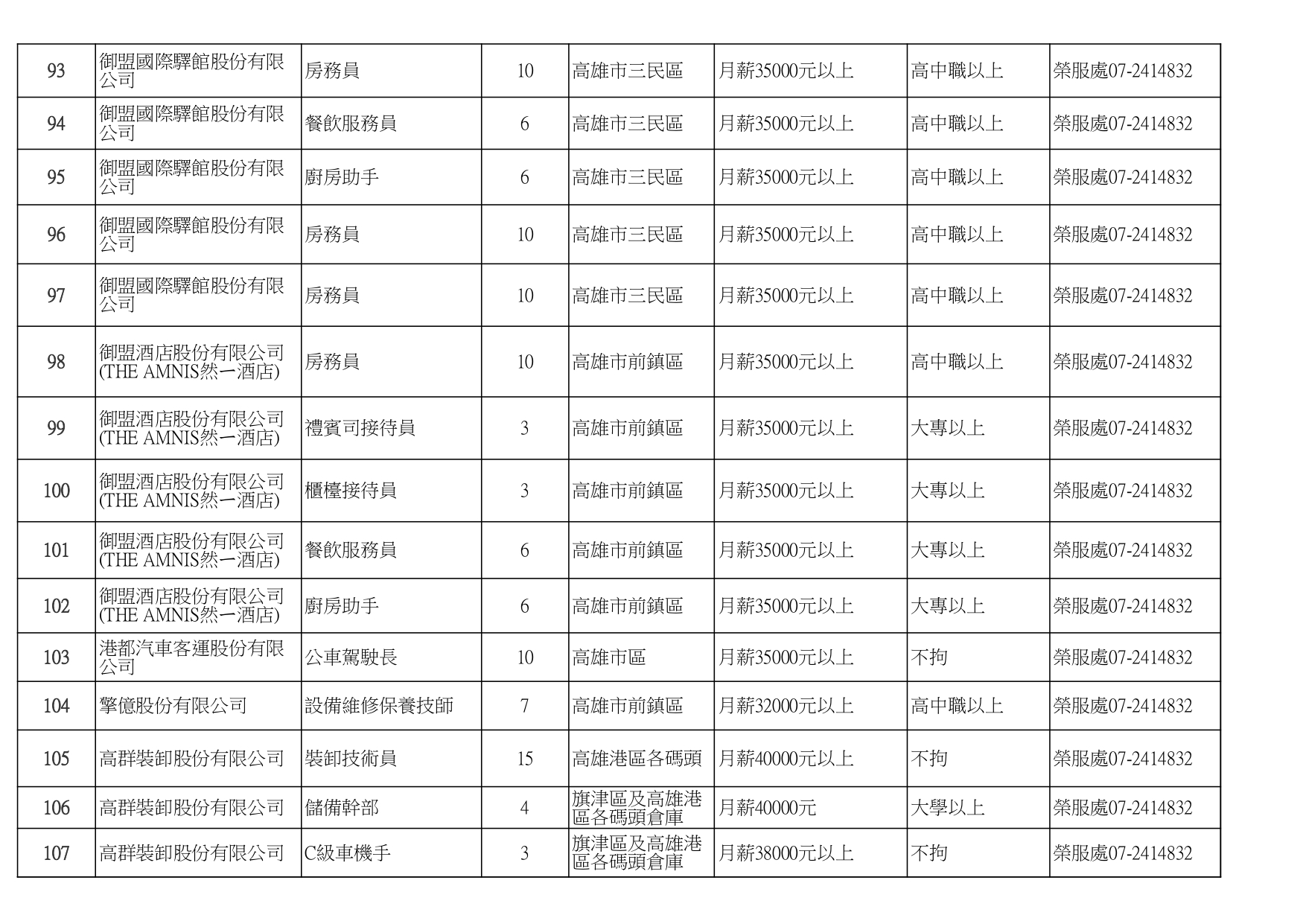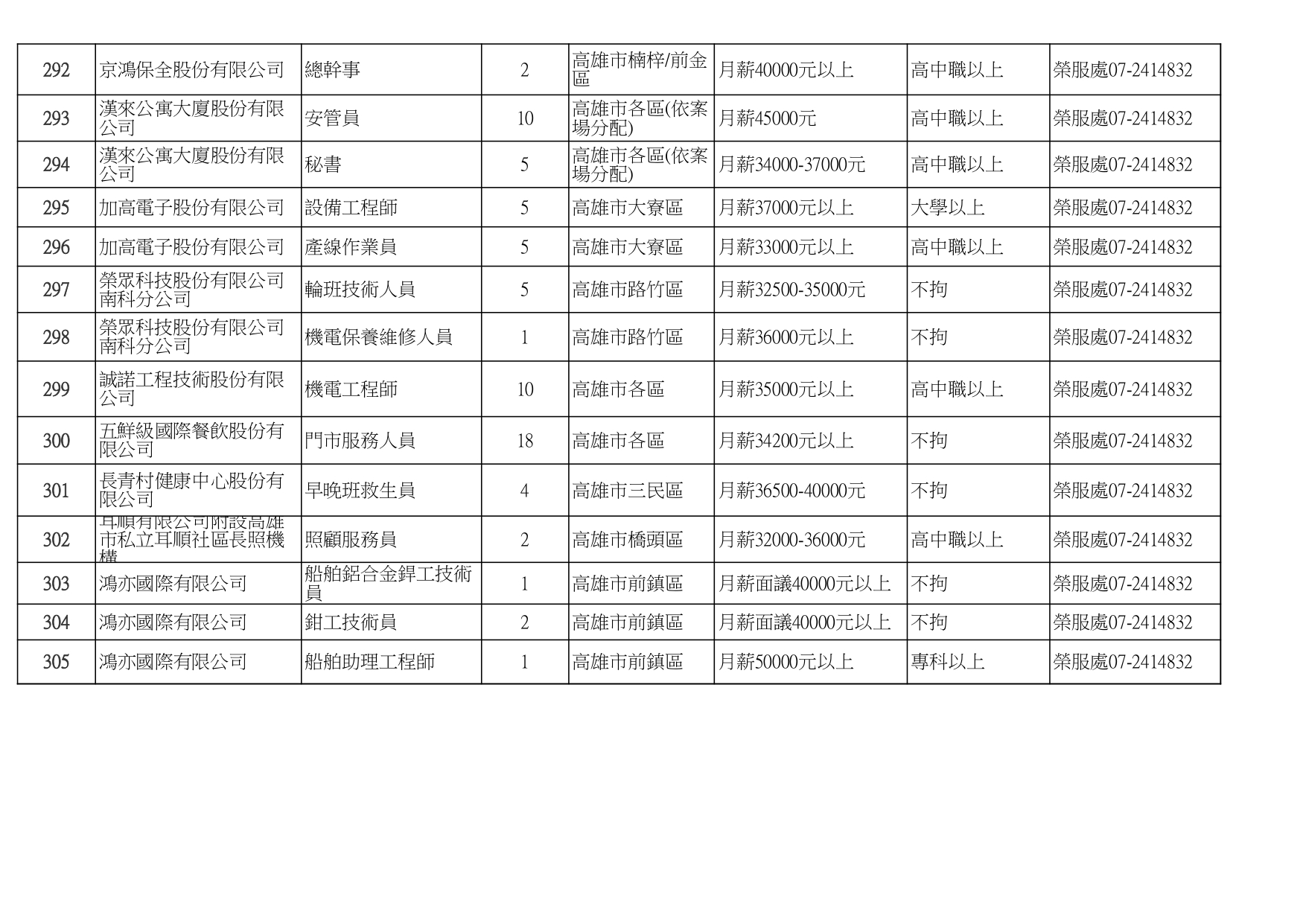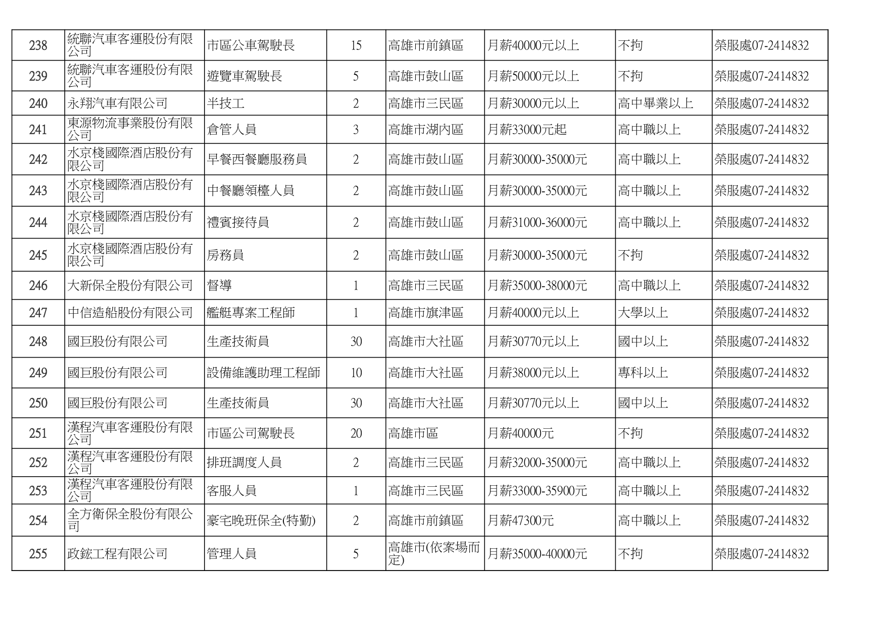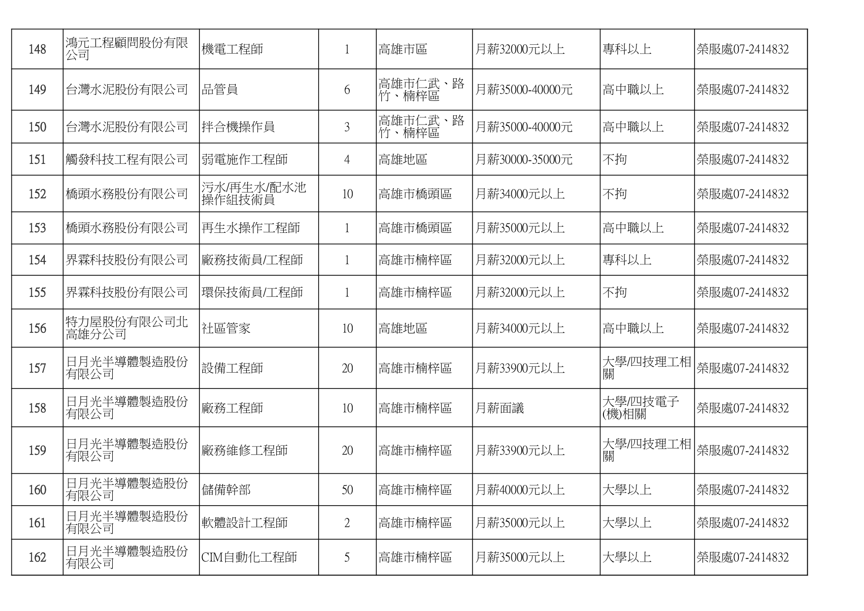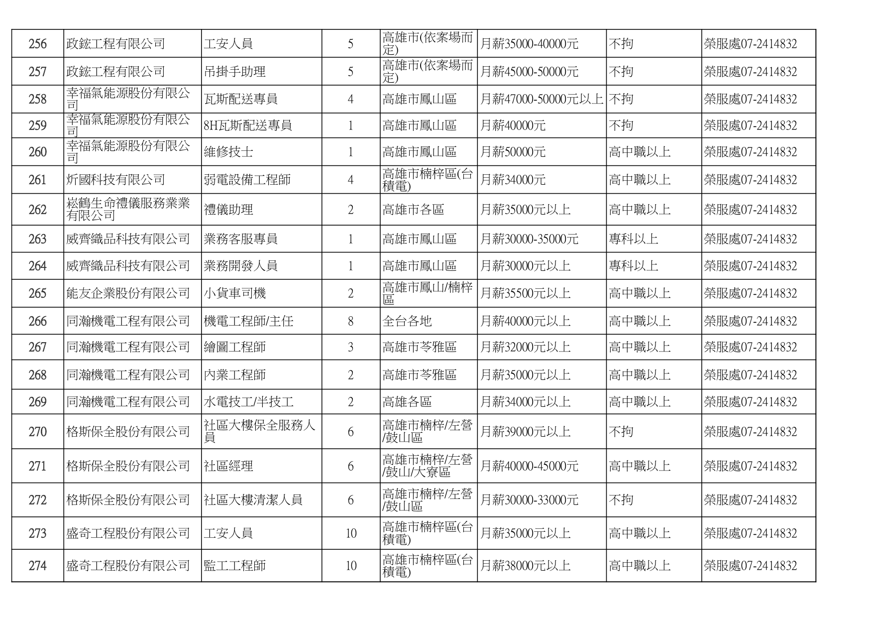 發布日期:114-12-10 資料來源:高雄市榮民服務處 高雄榮服處-廠商職缺列表114.12.10_page-0001有就業需求之退除役官兵,請把握機會! 如有就(轉)業需求,歡迎洽詢本處就業站(07-2414832) 相關照片 高雄榮服處-廠商職缺列表114.12.10_page-0002 高雄榮服處-廠商職缺列表114.12.10_page-0003 高雄榮服處-廠商職缺列表114.12.10_page-0004 高雄榮服處-廠商職缺列表114.12.10_page-0005 高雄榮服處-廠商職缺列表114.12.10_page-0006 高雄榮服處-廠商職缺列表114.12.10_page-0007 高雄榮服處-廠商職缺列表114.12.10_page-0008 高雄榮服處-廠商職缺列表114.12.10_page-0009 高雄榮服處-廠商職缺列表114.12.10_page-0010 高雄榮服處-廠商職缺列表114.12.10_page-0011 高雄榮服處-廠商職缺列表114.12.10_page-0012 高雄榮服處-廠商職缺列表114.12.10_page-0013 高雄榮服處-廠商職缺列表114.12.10_page-0014 高雄榮服處-廠商職缺列表114.12.10_page-0015 高雄榮服處-廠商職缺列表114.12.10_page-0016 高雄榮服處-廠商職缺列表114.12.10_page-0017 高雄榮服處-廠商職缺列表114.12.10_page-0018 高雄榮服處-廠商職缺列表114.12.10_page-0019 高雄榮服處-廠商職缺列表114.12.10_page-0020 高雄榮服處-廠商職缺列表114.12.10_page-0021 附件下載 檔案名稱 更新日期 下載次數 高雄榮服處-廠商職缺列表114.12.10.pdf 114-12-10 0