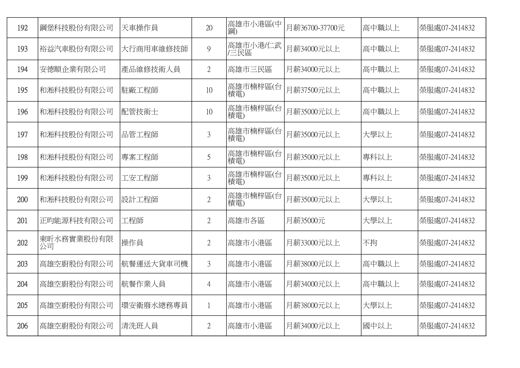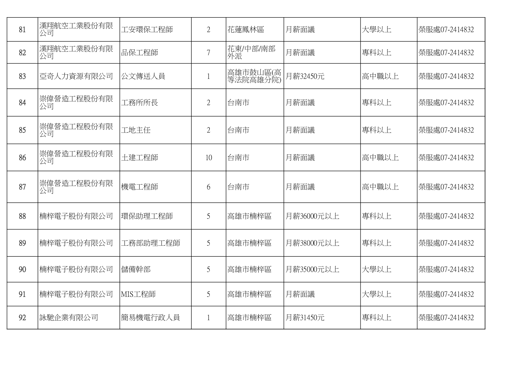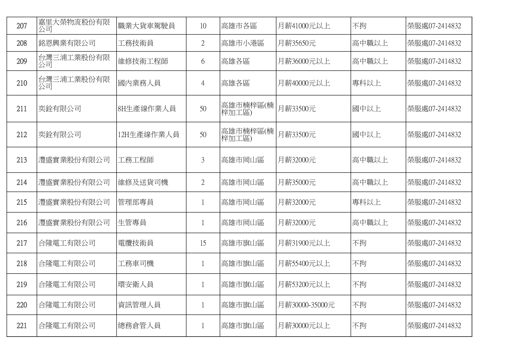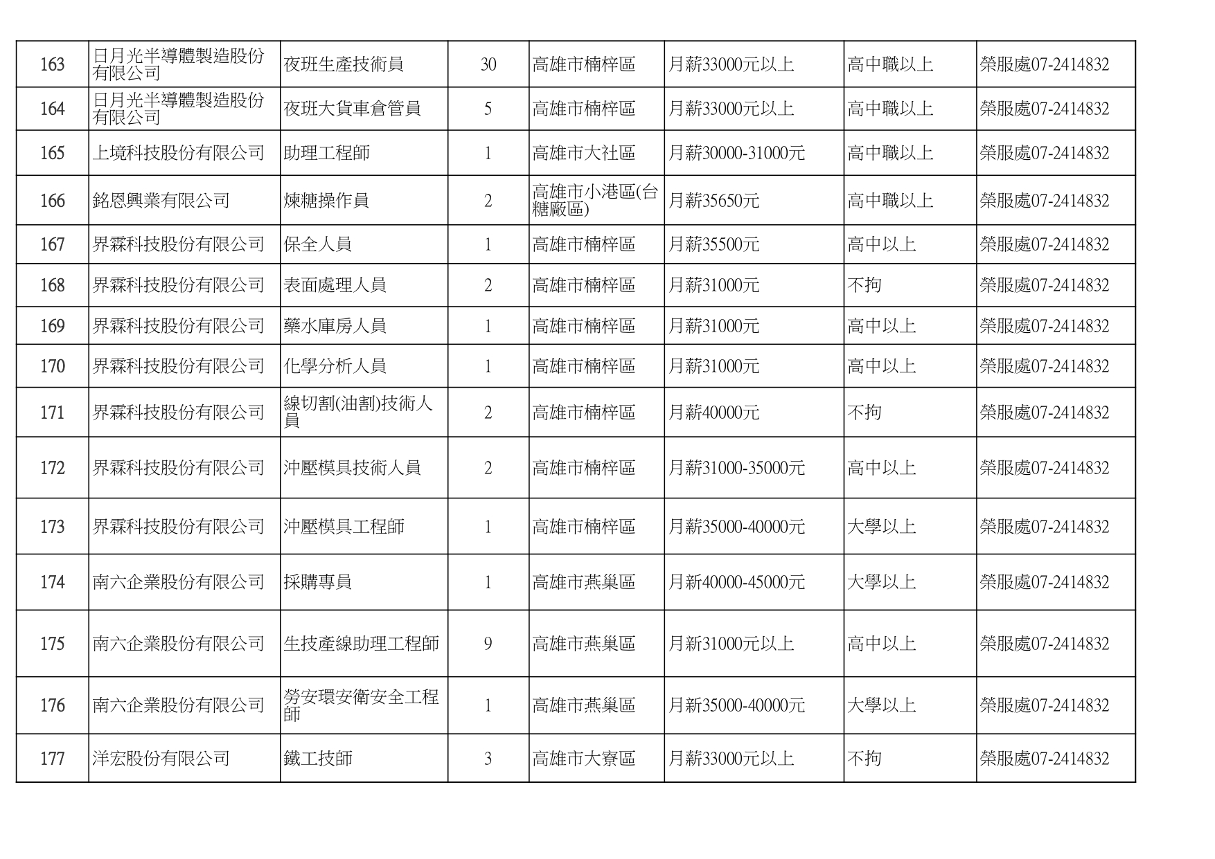 發布日期:114-12-10 資料來源:高雄市榮民服務處 高雄榮服處-廠商職缺列表114.12.10_page-0001有就業需求之退除役官兵,請把握機會! 如有就(轉)業需求,歡迎洽詢本處就業站(07-2414832) 相關照片 高雄榮服處-廠商職缺列表114.12.10_page-0002 高雄榮服處-廠商職缺列表114.12.10_page-0003 高雄榮服處-廠商職缺列表114.12.10_page-0004 高雄榮服處-廠商職缺列表114.12.10_page-0005 高雄榮服處-廠商職缺列表114.12.10_page-0006 高雄榮服處-廠商職缺列表114.12.10_page-0007 高雄榮服處-廠商職缺列表114.12.10_page-0008 高雄榮服處-廠商職缺列表114.12.10_page-0009 高雄榮服處-廠商職缺列表114.12.10_page-0010 高雄榮服處-廠商職缺列表114.12.10_page-0011 高雄榮服處-廠商職缺列表114.12.10_page-0012 高雄榮服處-廠商職缺列表114.12.10_page-0013 高雄榮服處-廠商職缺列表114.12.10_page-0014 高雄榮服處-廠商職缺列表114.12.10_page-0015 高雄榮服處-廠商職缺列表114.12.10_page-0016 高雄榮服處-廠商職缺列表114.12.10_page-0017 高雄榮服處-廠商職缺列表114.12.10_page-0018 高雄榮服處-廠商職缺列表114.12.10_page-0019 高雄榮服處-廠商職缺列表114.12.10_page-0020 高雄榮服處-廠商職缺列表114.12.10_page-0021 附件下載 檔案名稱 更新日期 下載次數 高雄榮服處-廠商職缺列表114.12.10.pdf 114-12-10 0
