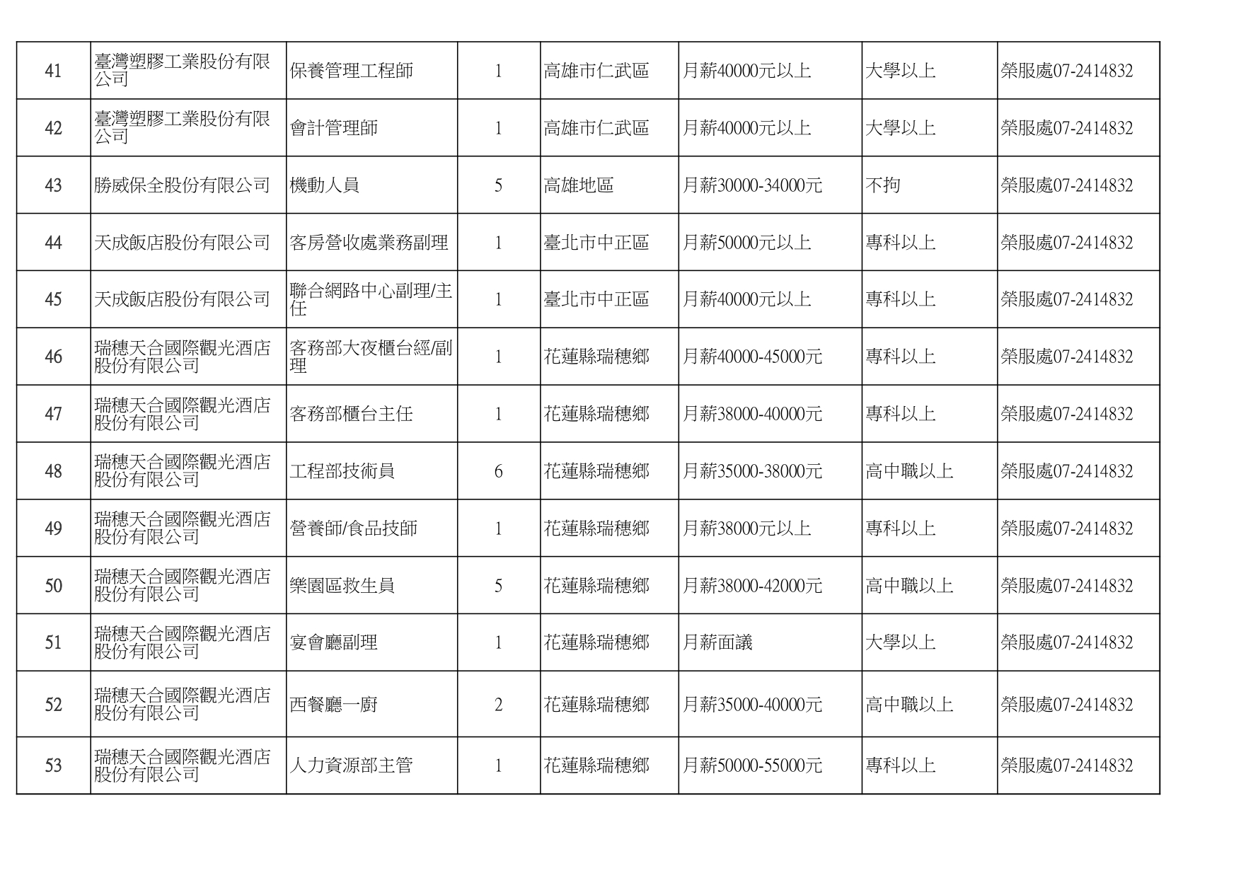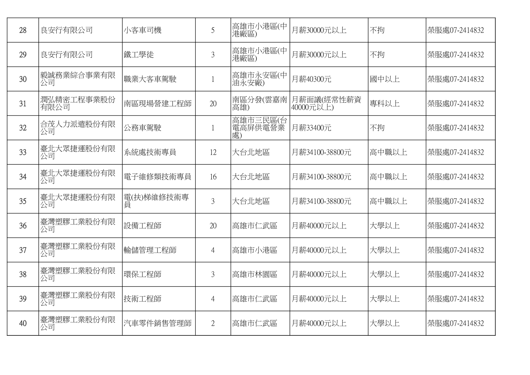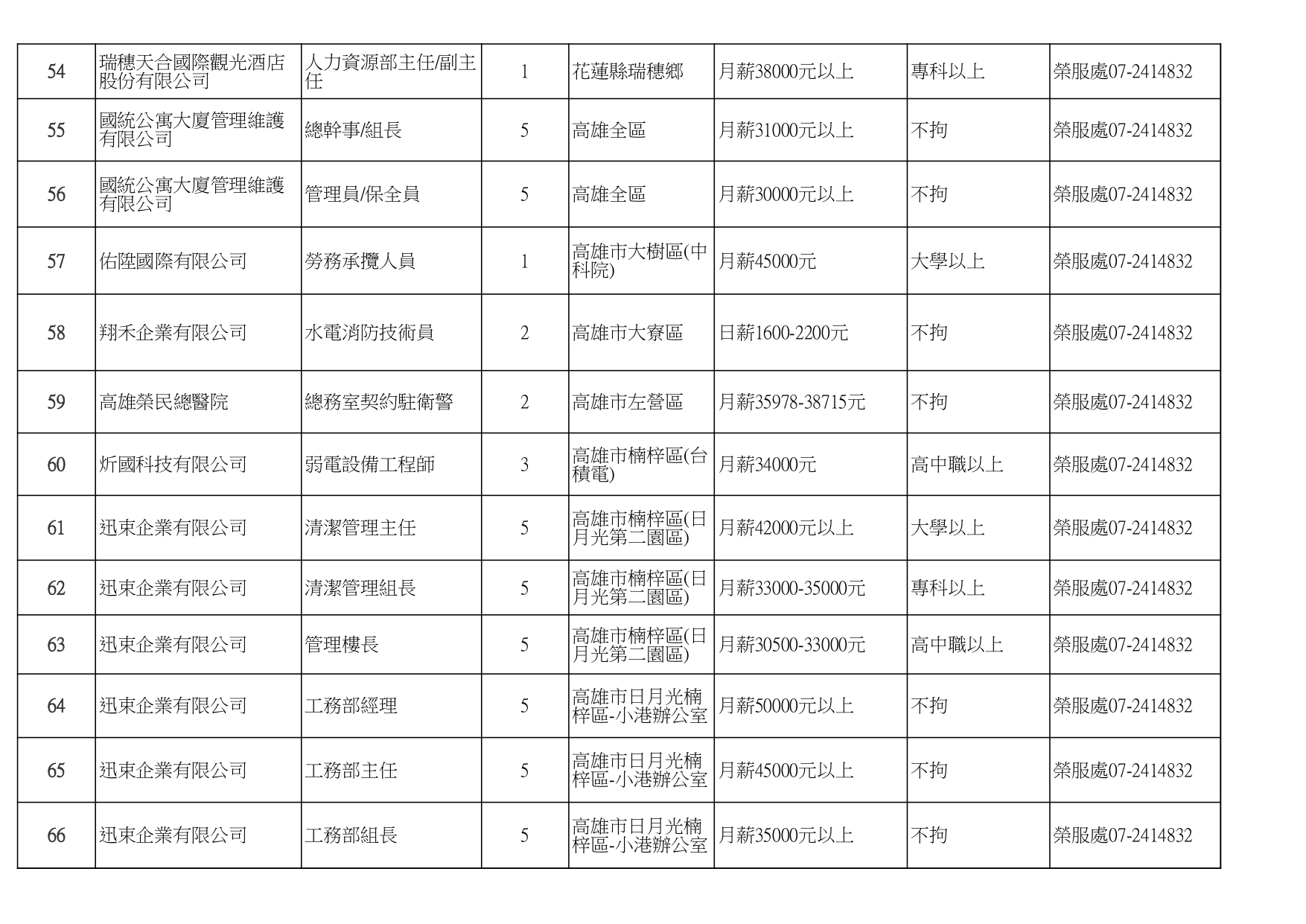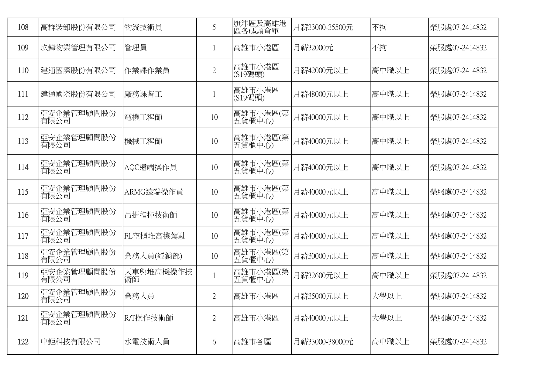 發布日期:114-12-10 資料來源:高雄市榮民服務處 高雄榮服處-廠商職缺列表114.12.10_page-0001有就業需求之退除役官兵,請把握機會! 如有就(轉)業需求,歡迎洽詢本處就業站(07-2414832) 相關照片 高雄榮服處-廠商職缺列表114.12.10_page-0002 高雄榮服處-廠商職缺列表114.12.10_page-0003 高雄榮服處-廠商職缺列表114.12.10_page-0004 高雄榮服處-廠商職缺列表114.12.10_page-0005 高雄榮服處-廠商職缺列表114.12.10_page-0006 高雄榮服處-廠商職缺列表114.12.10_page-0007 高雄榮服處-廠商職缺列表114.12.10_page-0008 高雄榮服處-廠商職缺列表114.12.10_page-0009 高雄榮服處-廠商職缺列表114.12.10_page-0010 高雄榮服處-廠商職缺列表114.12.10_page-0011 高雄榮服處-廠商職缺列表114.12.10_page-0012 高雄榮服處-廠商職缺列表114.12.10_page-0013 高雄榮服處-廠商職缺列表114.12.10_page-0014 高雄榮服處-廠商職缺列表114.12.10_page-0015 高雄榮服處-廠商職缺列表114.12.10_page-0016 高雄榮服處-廠商職缺列表114.12.10_page-0017 高雄榮服處-廠商職缺列表114.12.10_page-0018 高雄榮服處-廠商職缺列表114.12.10_page-0019 高雄榮服處-廠商職缺列表114.12.10_page-0020 高雄榮服處-廠商職缺列表114.12.10_page-0021 附件下載 檔案名稱 更新日期 下載次數 高雄榮服處-廠商職缺列表114.12.10.pdf 114-12-10 0