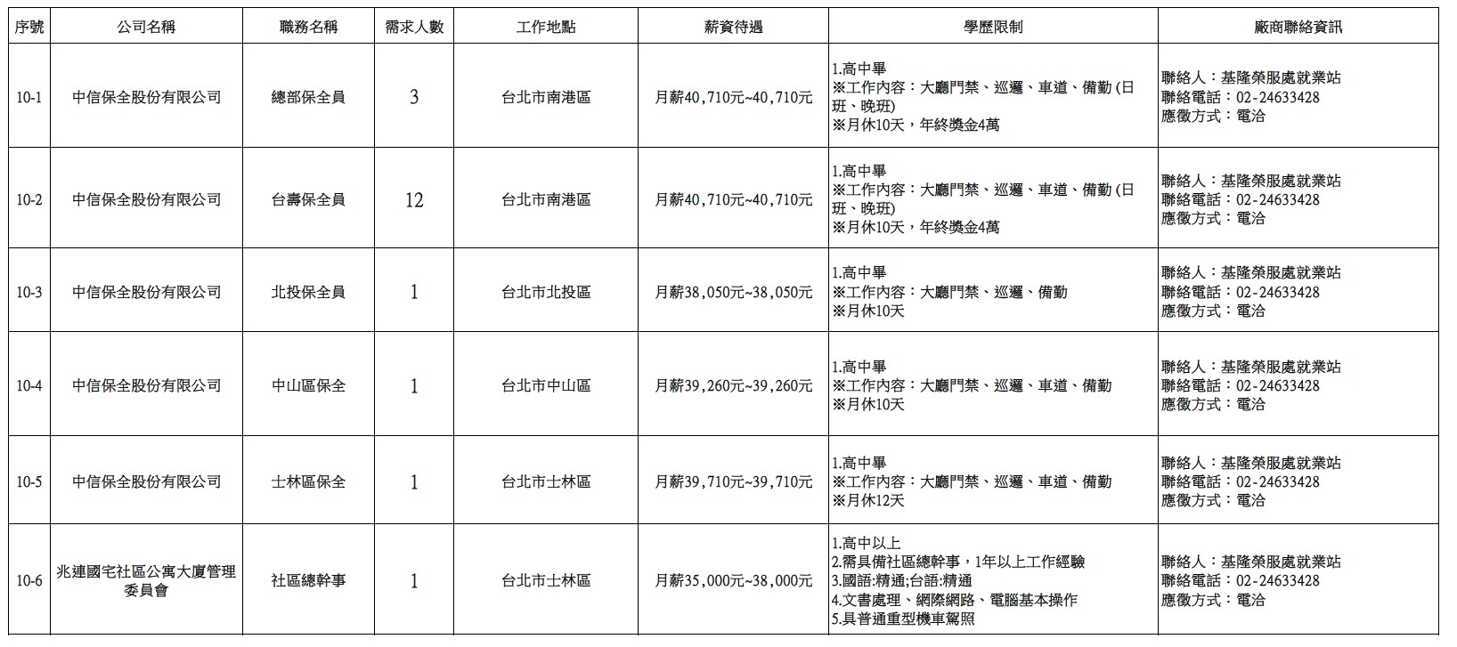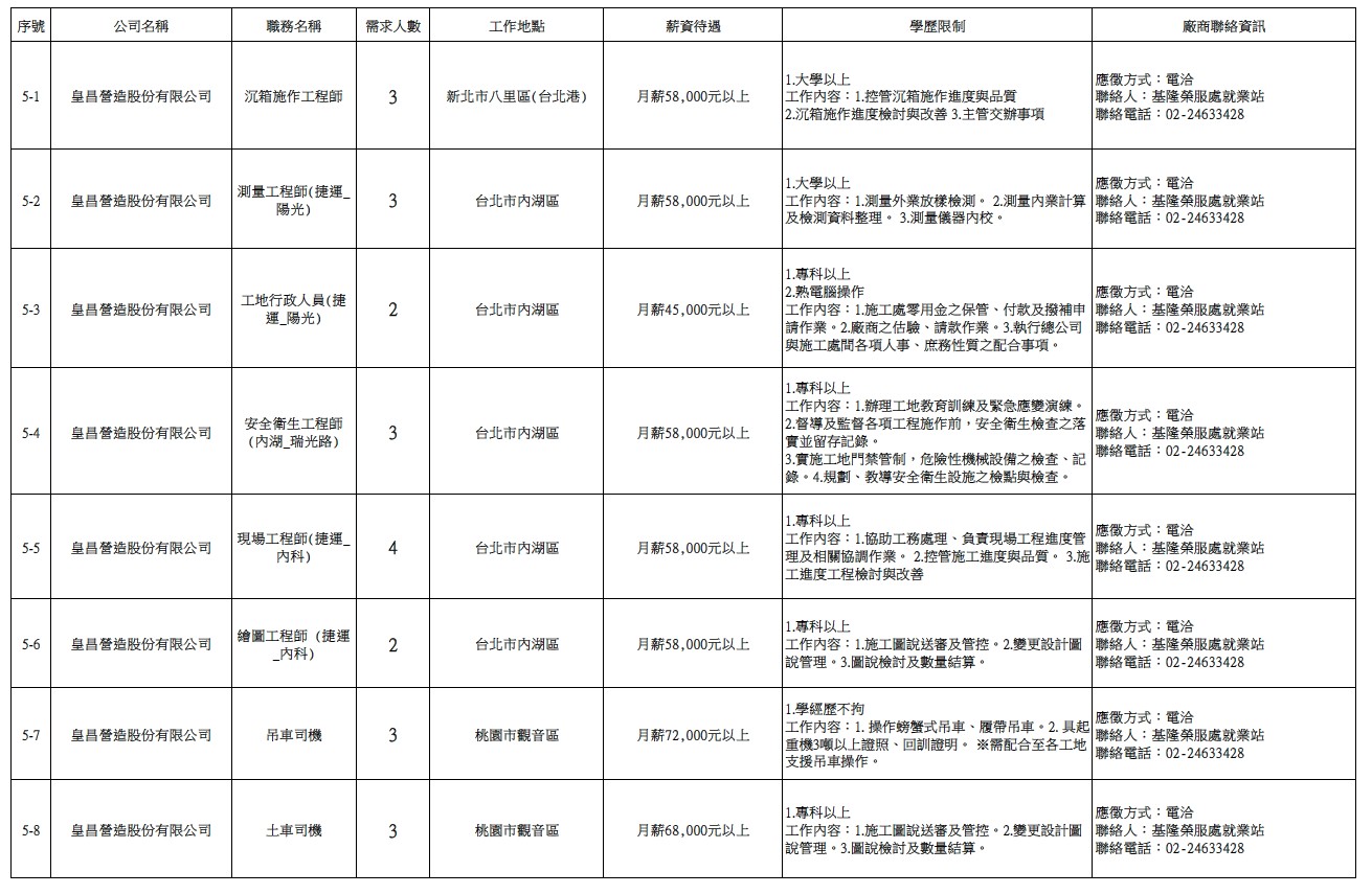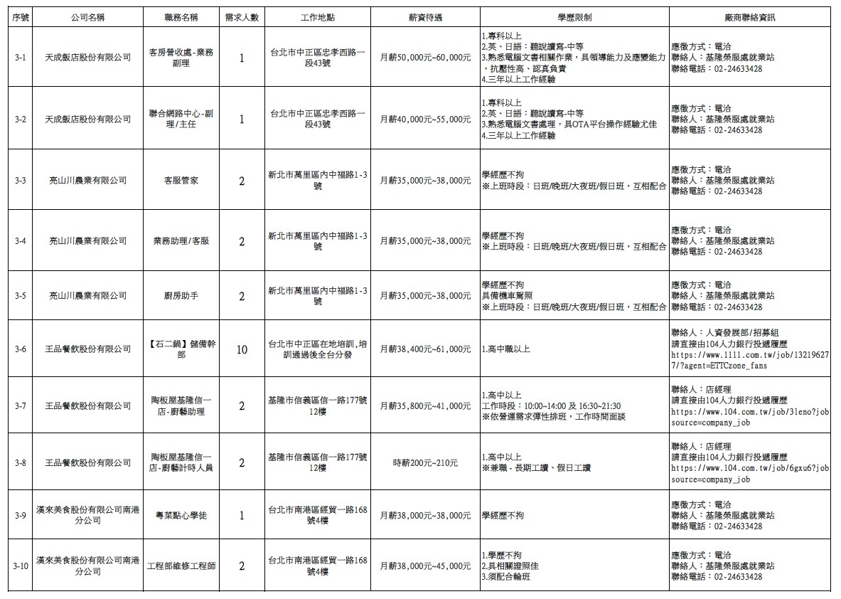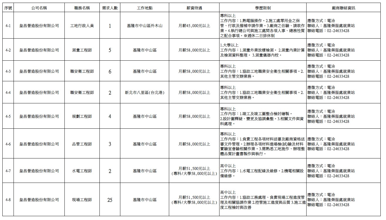 發布日期:115-03-31 資料來源:基隆市榮民服務處 【基隆市榮服處】廠商職缺表(115.03.31)-1 相關照片 【基隆市榮服處】廠商職缺表(115.03.31)-2 【基隆市榮服處】廠商職缺表(115.03.31)-3 【基隆市榮服處】廠商職缺表(115.03.31)-4 【基隆市榮服處】廠商職缺表(115.03.31)-5 【基隆市榮服處】廠商職缺表(115.03.31)-6 【基隆市榮服處】廠商職缺表(115.03.31)-7 【基隆市榮服處】廠商職缺表(115.03.31)-8 【基隆市榮服處】廠商職缺表(115.03.31)-9 【基隆市榮服處】廠商職缺表(115.03.31)-10 附件下載 檔案名稱 更新日期 下載次數 【基隆市榮服處】廠商職缺表(115.03.31).pdf 115-03-31 2