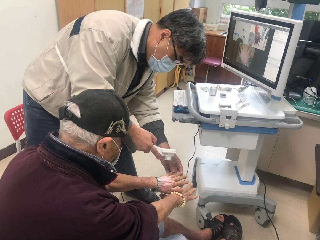 板橋榮家為因應多元需求全年度開放門診,提供內住榮民、員工、社區民眾、學校師生等..看診,以使社區醫療資源共享,因而獲得高齡友善健康照顧機構認證。 輔導會為關懷多元對象城鄉差距,促進社會資源公平使用,並提升榮總、榮院、榮家「三級金字塔醫療照護計畫2.0」, 特別引進超音波及五官鏡等設備進駐板橋榮家進行遠距醫療會診,以擴大照護品質,力求服務切合住民(民眾)需求。 日前台北榮總醫企部主任李偉強等一行人,親赴板橋榮家,指導遠距醫療行動推車進行之醫療評估,並協助視訊設備操作等教學訓練,而五官鏡的適時介入診查,使得雙方醫事人員能透過鏡頭觀察病患描述病情的表情,不僅可以清楚聽到病患的病況描述也可以視察皮膚是否有斑疹等症狀,以便作精準的診治。 板橋榮家張長林主任表示,感謝台北榮總防疫期間多方的指導協助及長期以來的醫療支援,目前透過視訊軟體與台北榮總會診皮膚科及耳鼻喉科,克服了地理及時間的限制,榮家長輩在家即可獲得醫療服務,不需舟車勞頓到醫院看診,日後將持續與台北榮總合作,以提供長輩優質的醫療照護及在地的照顧服務。