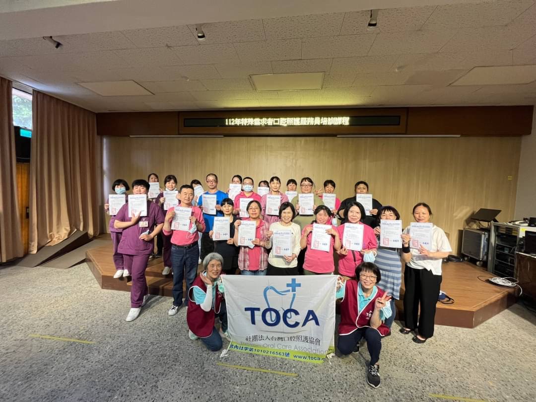 板橋榮家口腔照護列車啟程,健康從齒開始。 板橋榮家長期以來都很重視住民的口腔清潔及衛生,為提供更全面的照護服務,展開口腔照護示範中心計劃,對於照服員和護理師進行相關訓練。這項新舉措旨在改善長期照護機構中失能、失智住民的口腔健康狀況,提升住民的生活及照護品質,並將學習到的經驗分享與傳承,讓台灣機構的長輩晚年仍能80歲保有20顆牙齒,盡情吃喝玩樂頤養天年。 長期照護機構中的失能、失智住民,常常面臨口腔健康問題,包括蛀牙、牙周疾病和口臭等。這些問題不僅對他們的咀嚼功能和營養攝取造成困擾,還可能引發其他健康問題。照服員和護理師是長期照護機構中與住民日常照顧密切的重要角色,因此提供他們口腔照護訓練,與台灣口腔照護協會TOCA合作,以專業的團隊指導口腔照護的知識與技能,包括口腔健康的基礎知識、口腔疾病的識別和預防、潔牙技巧等內容,以確保他們能夠給予高質量的口腔照護服務,減少口腔相關問題的發生,並且協會為板橋榮家失能、失智的住民進行口腔義診,醫師們甚至跪於地板上,協助使用輪椅的住民進行潔牙治療,住民皆豎起大拇指說有TOCA真好,對於協會有滿滿的感謝。 板橋榮家陳桂美主任表示,TOCA其創立理念是教育、平等、利他,以愛為出發點,而照服員和護理師是長期照護機構中扮演著重要的角色,提供口腔照護訓練使其具備相關的知識與技能,並且希望透過與協會專業團隊的合作,使板橋榮家照護列車啟程,健康從「齒」開始。