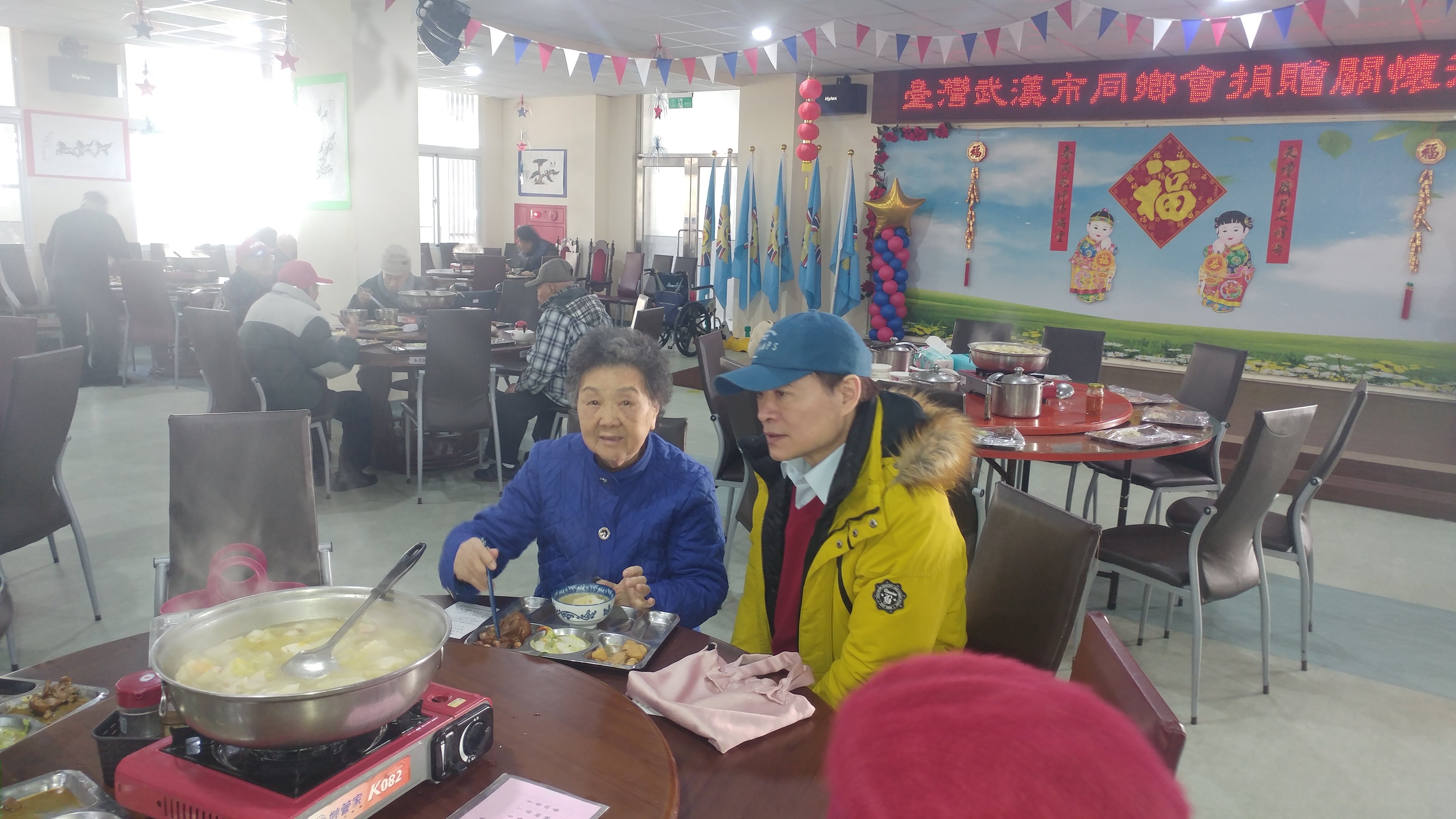 臺灣武漢市同鄉會在農曆春節前,特別選在2月12日來關懷榮民長輩,祝福他們新春快樂,還準備了芋頭酥禮盒讓長輩春節摸彩、新鮮的芋頭讓長輩增加食材,現場跟同鄉的長輩相見歡,大家都激動得不斷詢問家鄉市跟長輩的生活近況,最後開心留下合影,也到每桌跟長輩關懷問候。 相關照片