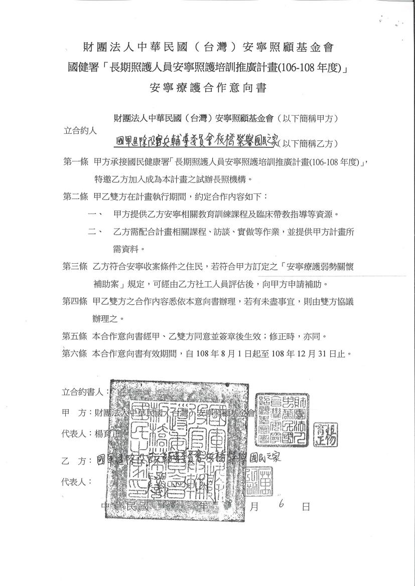 與財團法人台灣安寧照顧基金會-安寧療護合作意向書