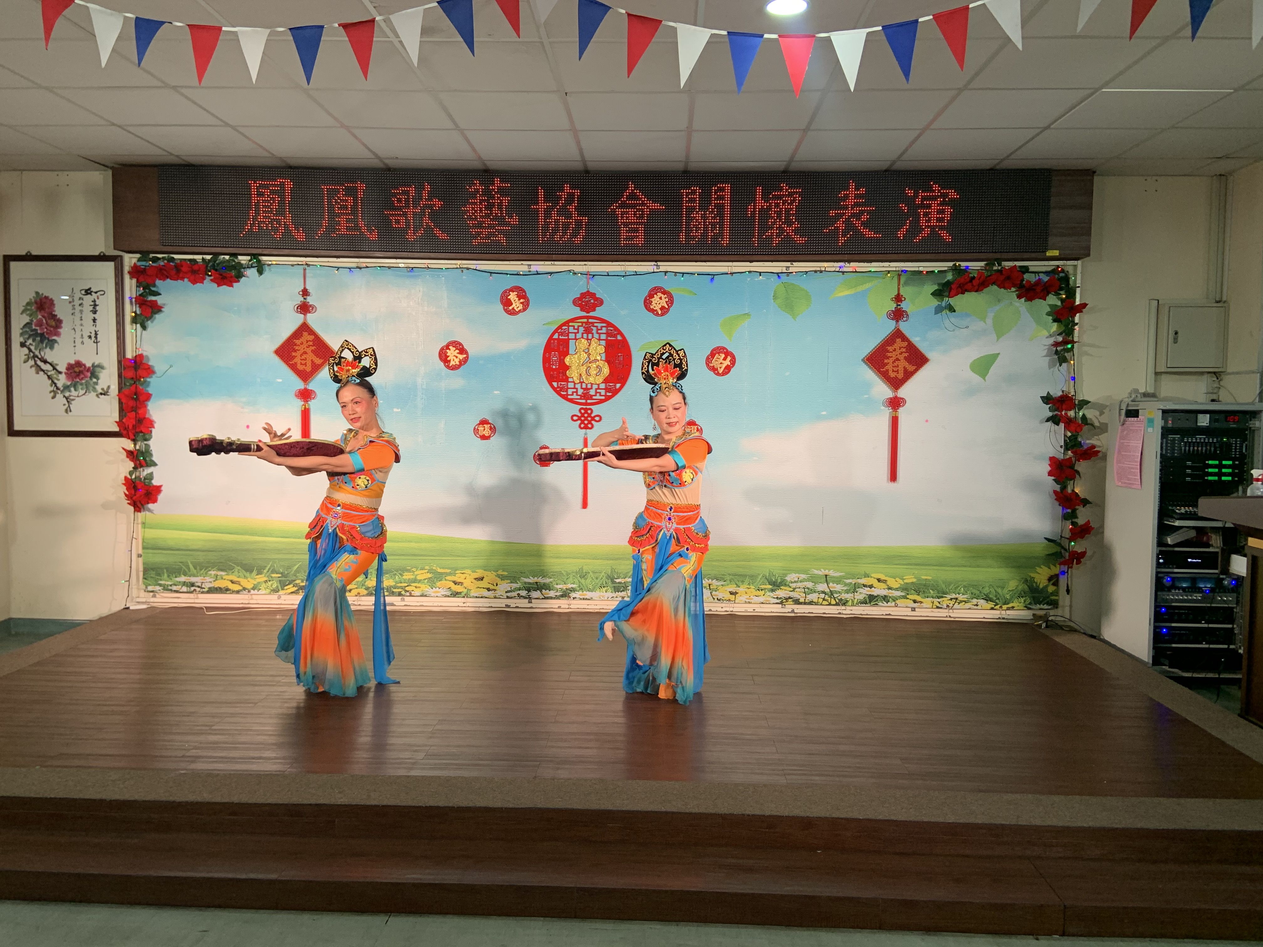 今天開場的敦煌古典琵琶舞第一次來到榮家演出,優雅舞姿吸引長輩目光,理事長鳳姐今天更邀請榮家之前在榮家歌唱比賽的第一名長輩上台一起合唱,張阿姨穿著旗袍演唱拿手歌曲<一曲紅塵>,獲得大家熱烈掌聲,宋伯伯臨時被邀請一起上台,合唱<男人心女人情>,更顯出演唱功力,鳳姐也希望每次都能邀約長輩們一起上台表演,更達到一同歡樂的氣氛。接著,魅力舞群帶來充滿年味的<民俗燈籠舞>,讓長輩仍感受農曆春節的歡慶,今天更有莉莉、國英、詠湄及翠娥等歌手,分別演唱<千言萬語、夢裡相思、星夜的離別、一縷相思情>等歌曲,讓長輩們都沉醉在美妙的旋律裡,壓軸則由鳳姐帶來<愛我的人和我愛的人、笑談人生>,這兩首歌曲表達了對協會對長輩們的愛,更希望長輩們能像笑談人生歌詞一樣從容自在,並在榮家好好頤養天年。