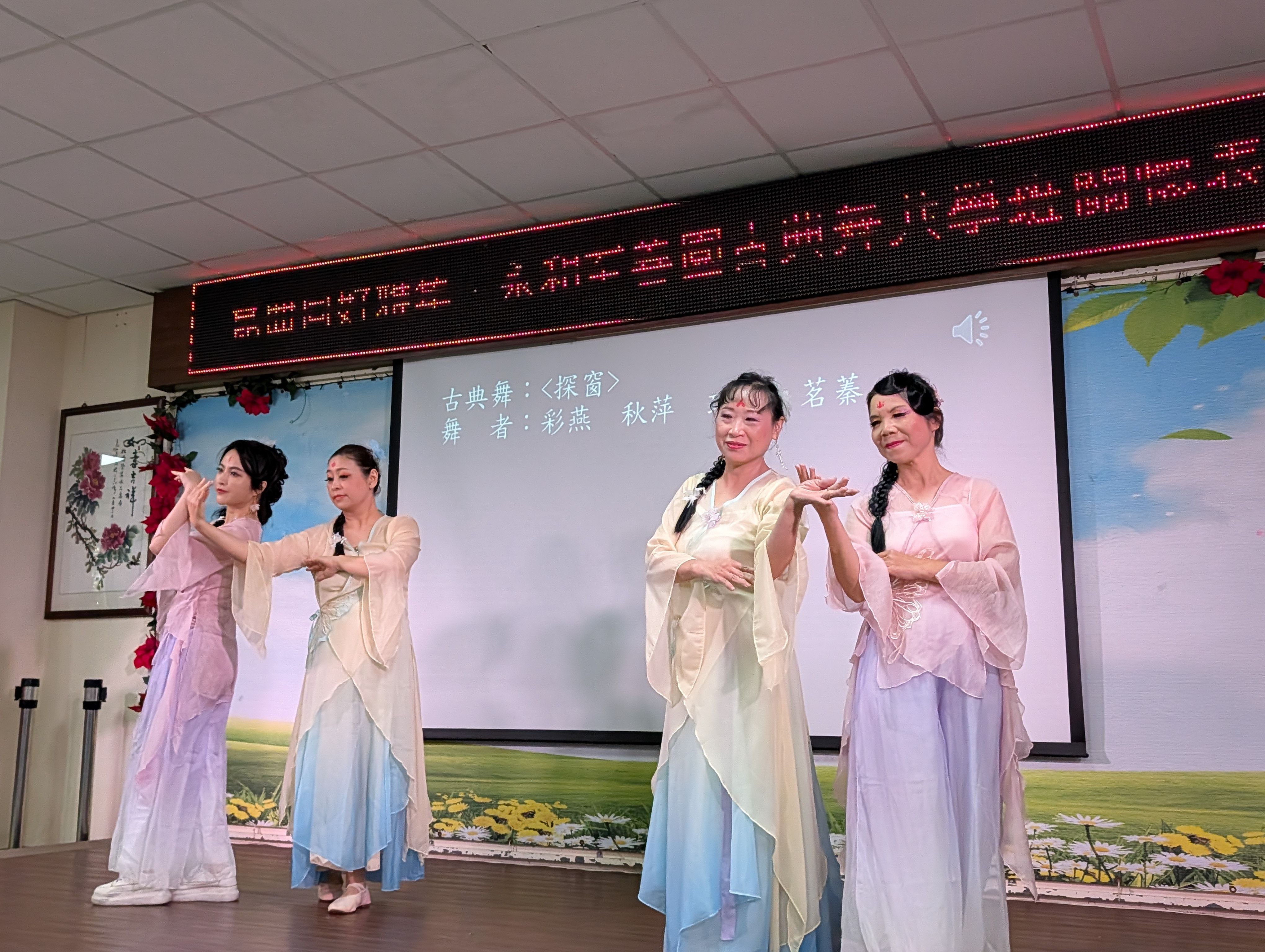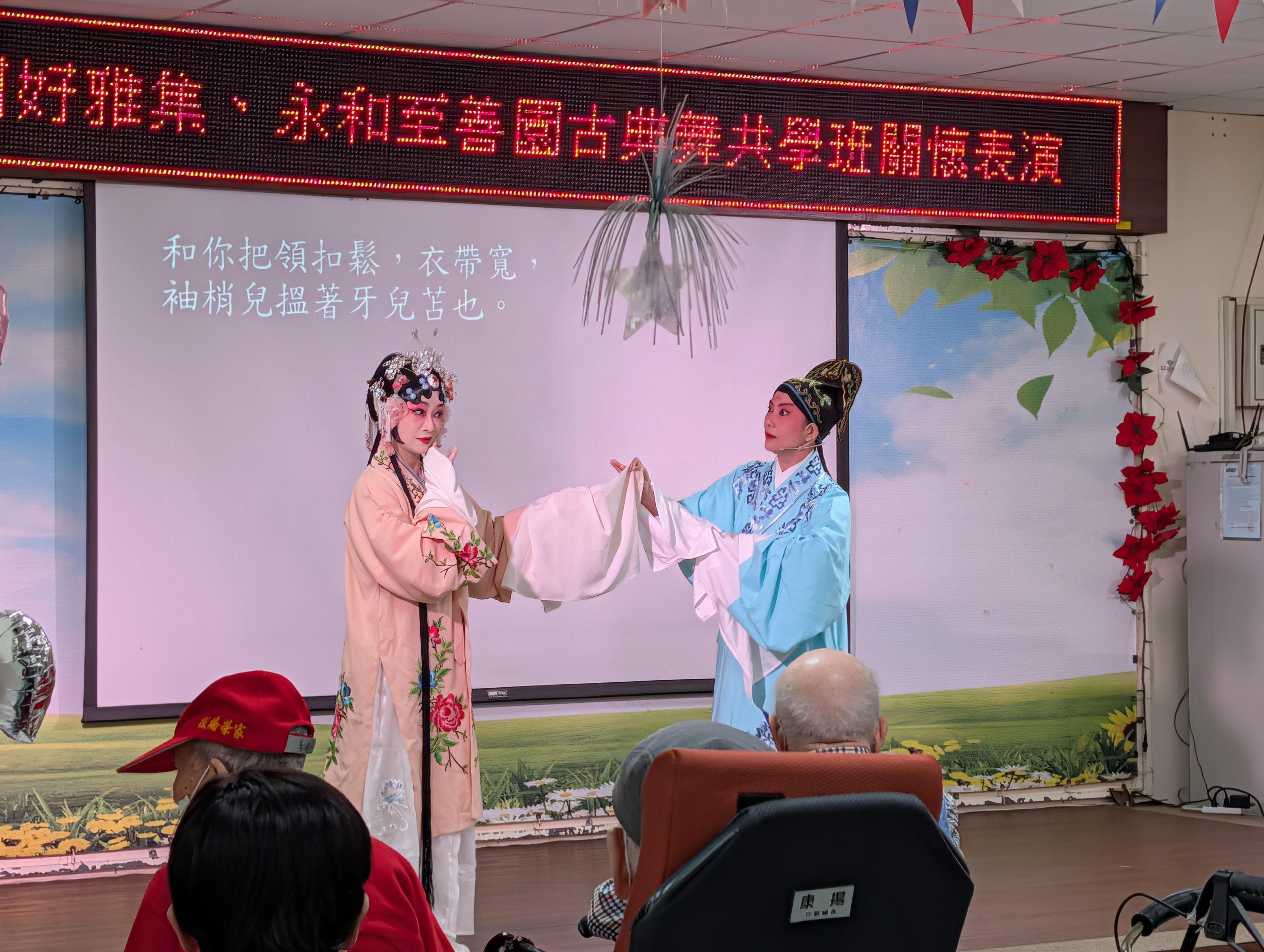 由崑曲同好雅集與永和至善園古典舞共學班共同組成的表演團隊,來到板橋榮家舉行一場充滿溫度的文化饗宴,透過崑曲與古典舞進行創新融合,詮釋經典名作「牡丹亭」中的核心選段「遊園驚夢」,為長輩們帶來煥然一新的藝術體驗。