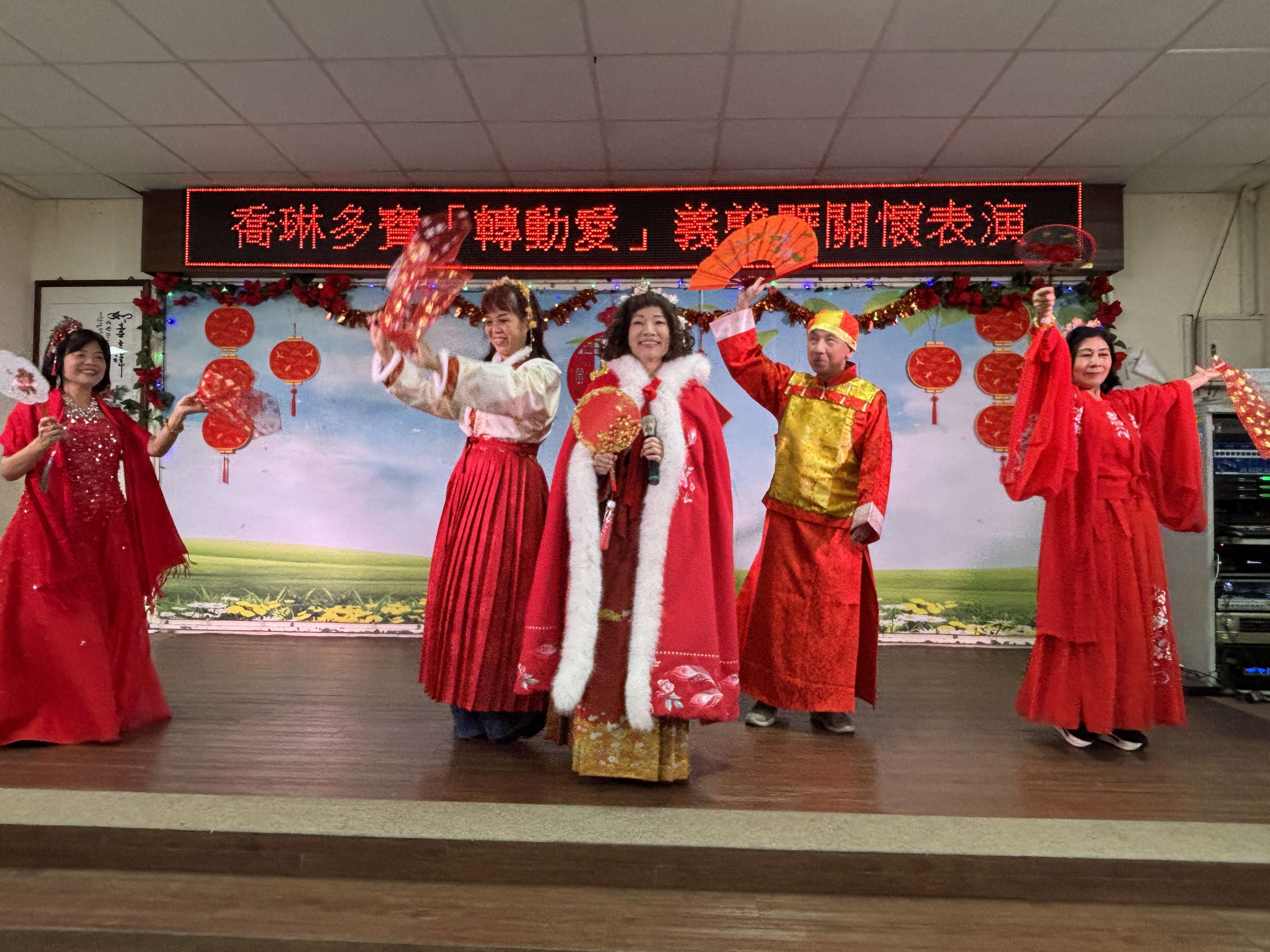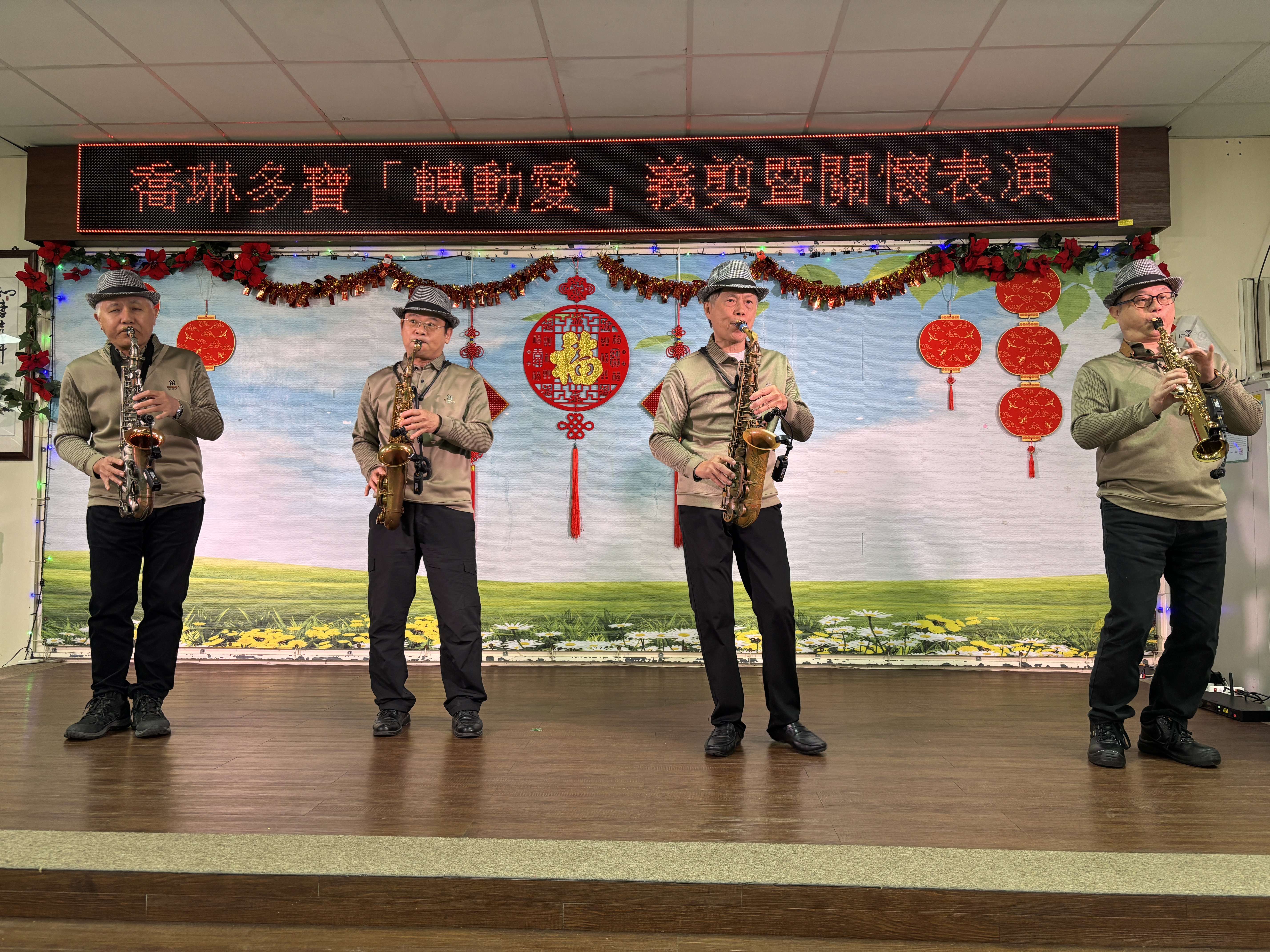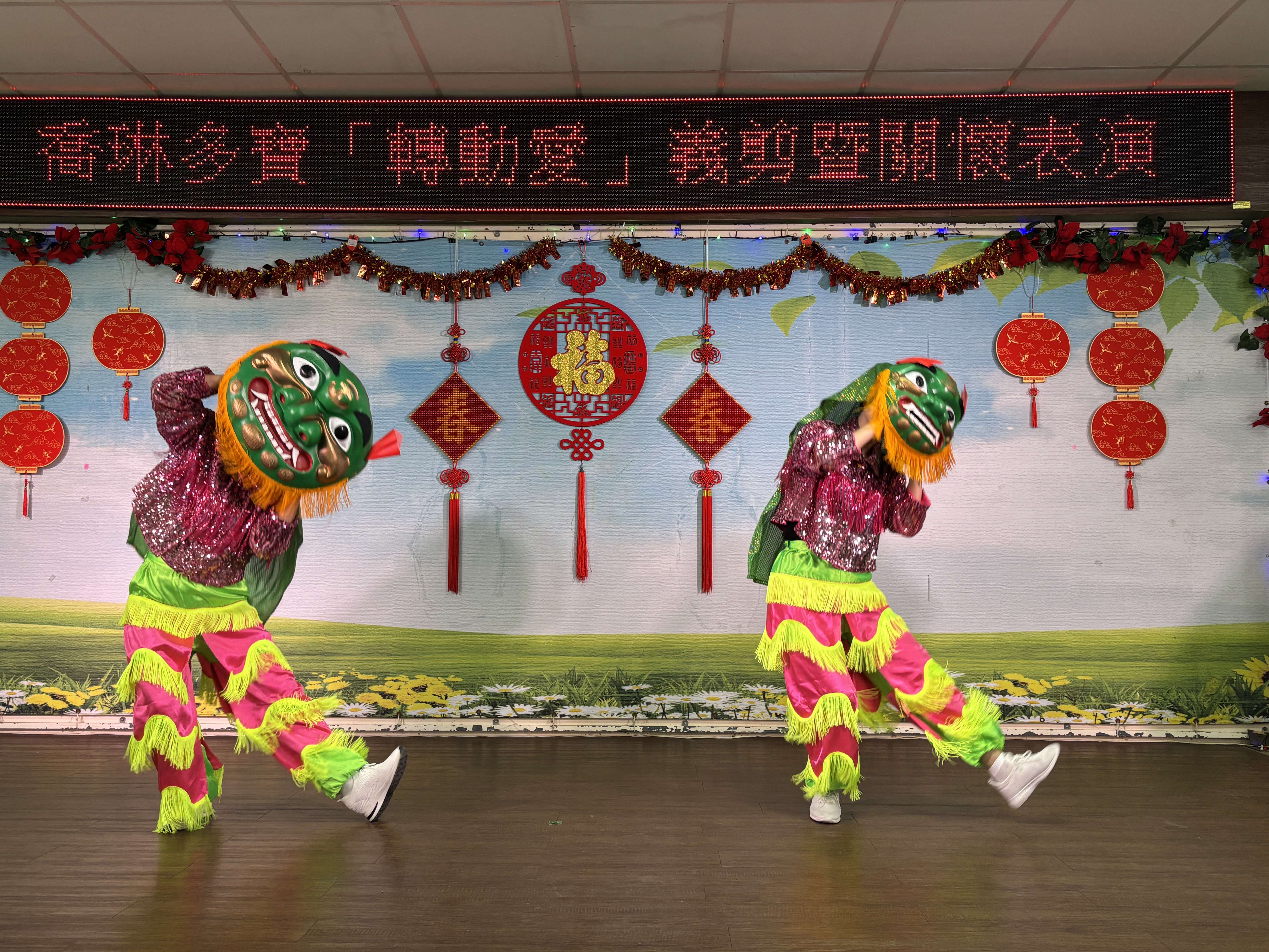 緊接著是一系列熱鬧非凡的賀歲演出,曲目充滿濃厚年味與歡樂,龍海薩克斯風團隊帶來「廟會、迎春花」;興仁、欣娟、維利與銀花輪番上陣,帶來「賀新年、待嫁女兒心、瀟灑走一回」等老歌,動人旋律帶領長輩感受年節歡慶氛圍。芳馨舞蹈團應景的「恭喜恭喜」與「弄獅」表演,更讓現場喜氣洋洋;阿伊達團隊帶來「給我一個吻」與「熱情的沙漠」與長輩互動,讓現場無比熱情。