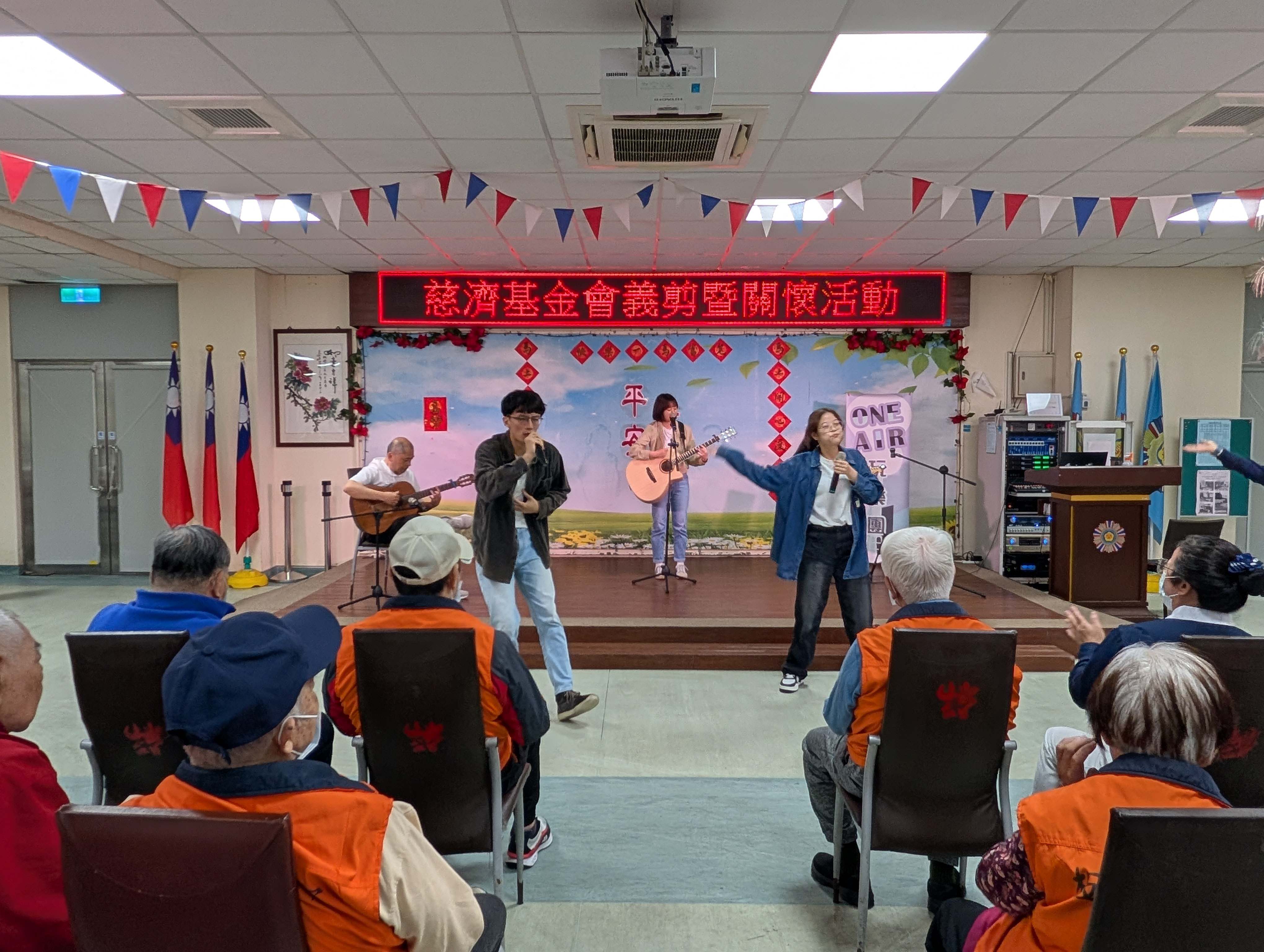 活動一開始,義剪志工與剪指甲志工精確分工,採取拿號碼叫號引導制,並落實器械消毒,讓長輩都能煥然一新。隨著「證嚴上人說故事:佛系的貓咪」影片播放,現場長輩在靜謐中領略佛教真諦。隨後,錦瑩師姊與孟珠師姊透過「茉莉花、甜蜜蜜」歌曲帶領長輩一起動起來,秀珠老師則以充滿活力的「動健康-活力操」帶動現場氣氛,現場長輩們雖年事已高,仍跟著節奏舒展筋骨,場面熱絡。年青人組成的ONEAIR 團隊帶來的懷舊金曲演出,透「一支小雨傘」、「往事只能回味」》及「流水年華」等經典旋律,讓年輕世代的活力與長輩的回憶交織一起,大家一起哼唱,彷彿回到那段青蔥歲月。