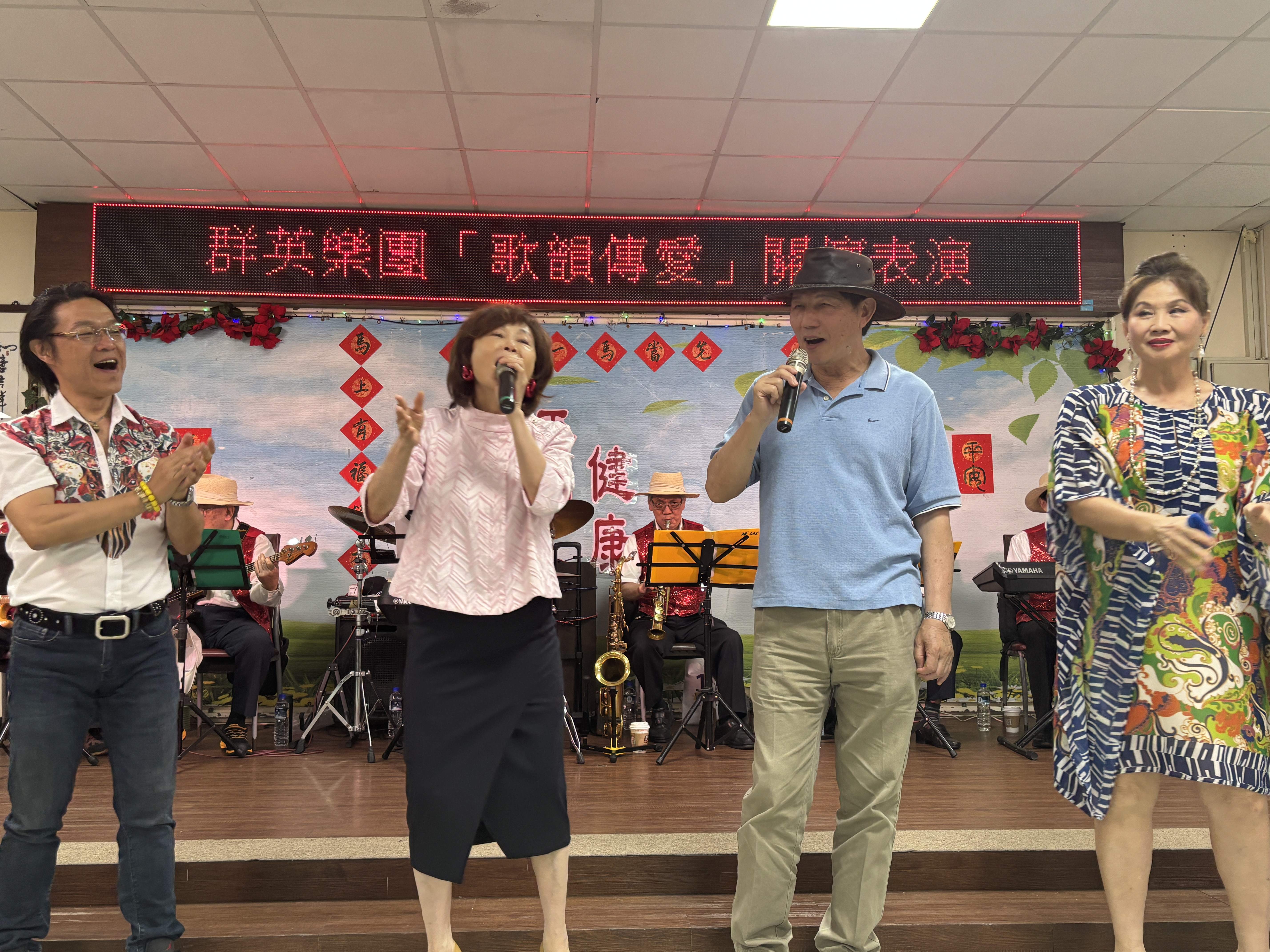 當樂團老師們奏起動人的旋律,現場氛圍瞬間充滿開心歡樂,主持人勳歌幽默話語串起整場演出,現場氛圍瞬間充滿開心歡樂,范范以一曲「返來阮身邊」拉開序幕,深情的歌聲直抵長輩心田;雅文帶來輕快的「十八姑娘」,台下的伯伯與阿姨們不由自主地跟著節奏拍手輕哼,勳歌演唱「三月裡的小雨」,猶如劉文正來到現場;熱情活潑的小白更現場唱出長輩點的「情人的黃襯衫」,與正綺演唱的「搖搖搖」,讓現場瞬間熱鬧非凡,淑紅演唱「踩在夕陽裡」,回味蕭麗珠經典歌曲,讓長輩們都沉醉在音樂裡。樂團成員們不僅僅是在表演,更不時與台下長輩互動親切對視,這份「以樂會友」的真誠,不再只是表演,而是一場溫度的傳遞。