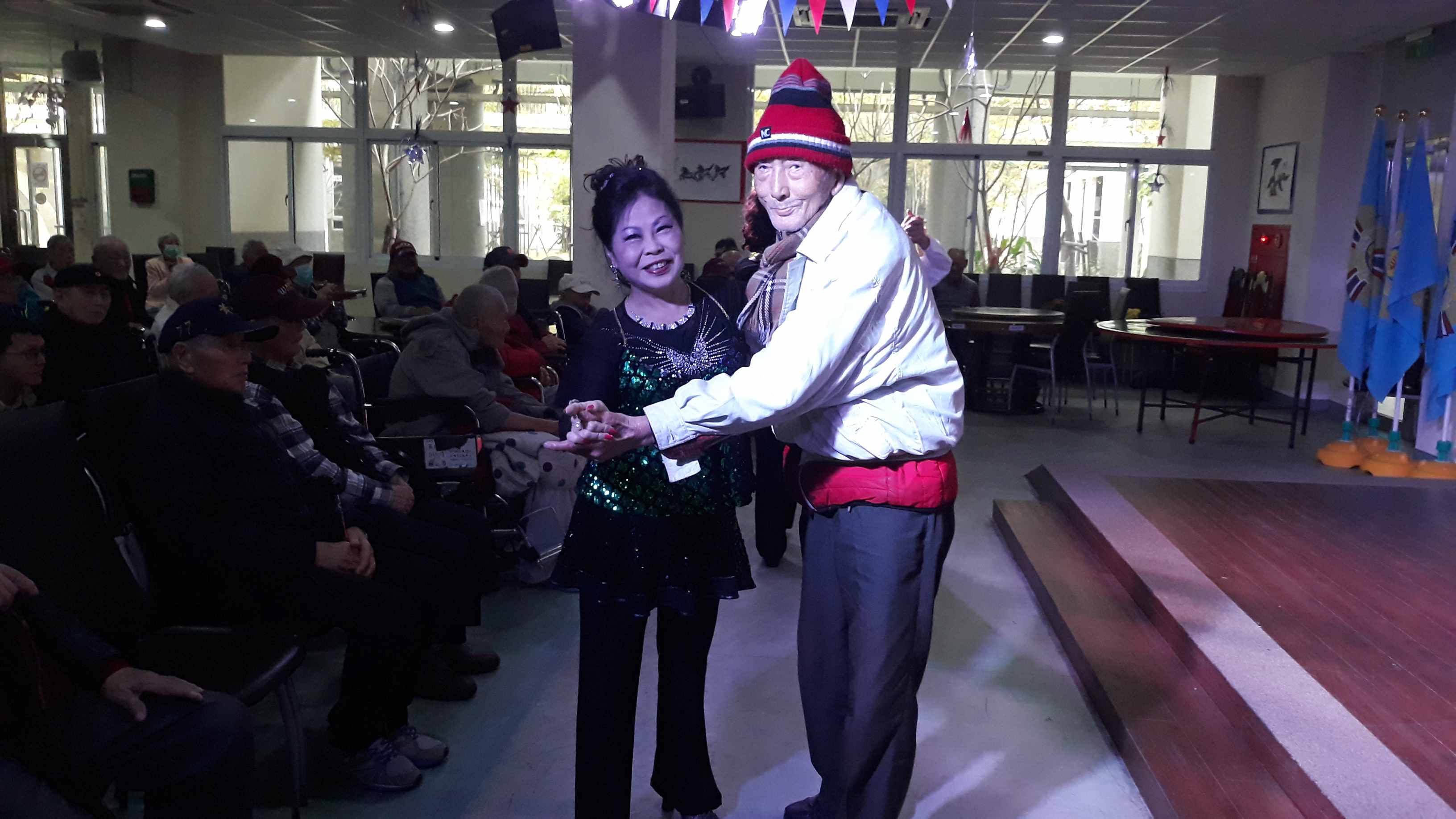 慈馨協會一行人搭著遊覽車來到榮家,半個多小時就做好表演準備,可見每位表演者都經驗老到。首先,由慈馨舞群帶來金環慶太平,傳統繽紛舞衣拿著金環舞蹈,讓長輩感受到節慶氣氛,歌唱者帶來<到底愛我不愛、回鄉的我、梅蘭梅蘭我愛你>等多首歌曲,長輩們一首首都跟著哼唱,理事長雲嬌也是小調歌后,帶來長輩們熟知的<江南好、知道不知道>,慈馨舞團更是帶來不同風格的舞蹈,有台味十足的<水水水>動感舞蹈,還有<何日君再來>的民族舞,最後更有南洋風情的<紗麗蘭蒂>,讓長輩們說從頭到尾的表演都好看,也希望慈馨協會能常常再到榮家表演。