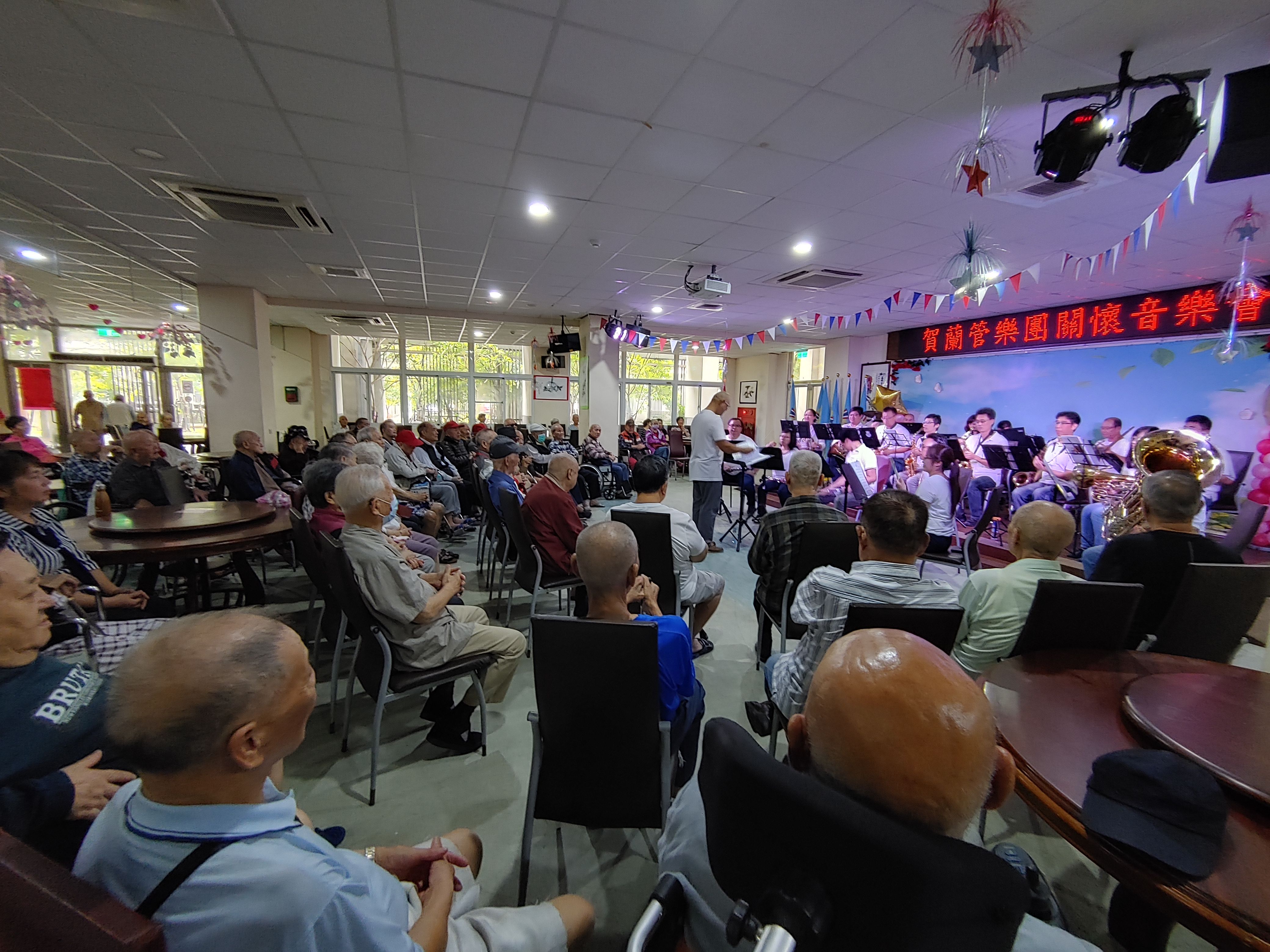 賀蘭管樂團106年成立,至今一直致力於公益表演,在重陽節前夕,特別號召全省的團員來到榮家辦理重陽音樂會,希望讓長輩透過音樂饗宴度過佳節。