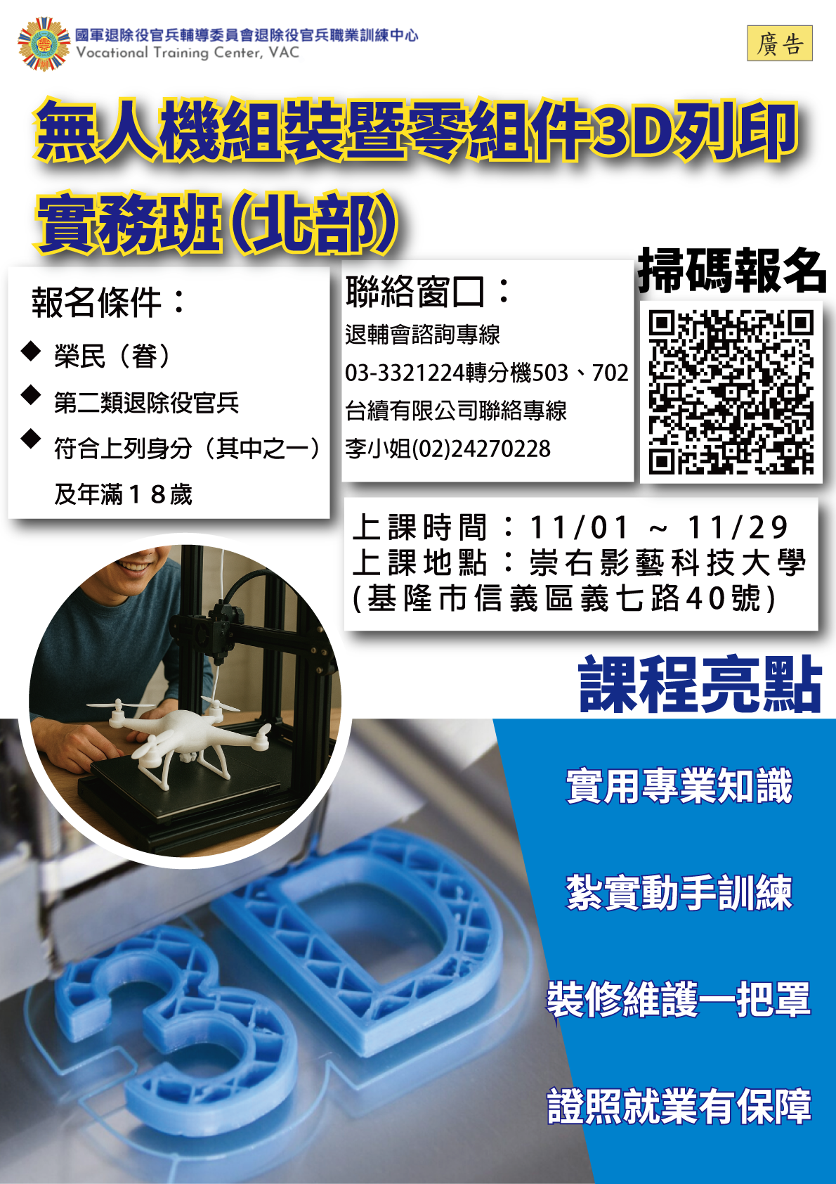 114-36-無人機組裝暨零組件3D列印實務班(北部)