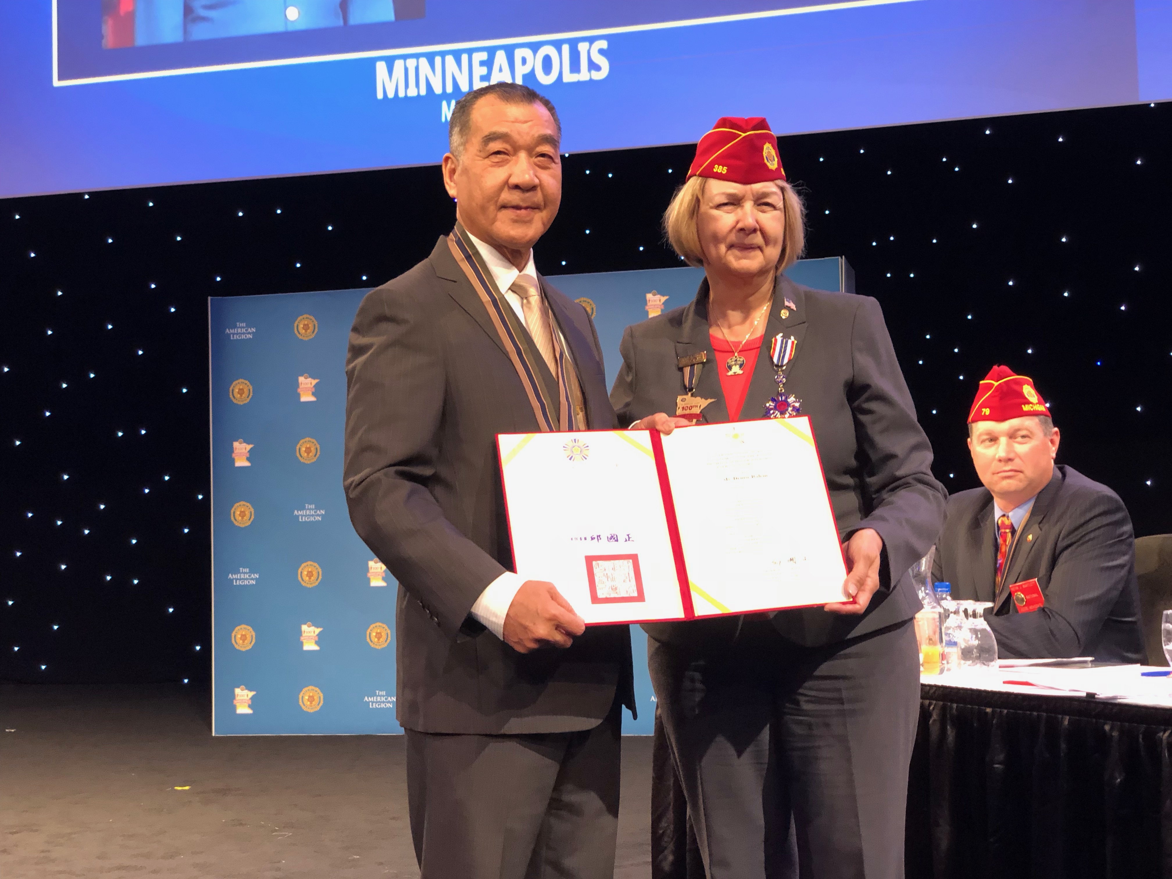 Minister Chiu present American Leigon National Commander Mrs. Rohan, the medal of honor of VAC, Firs