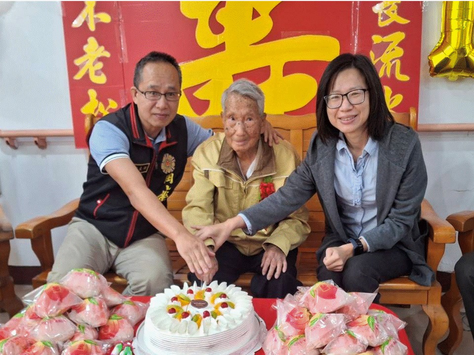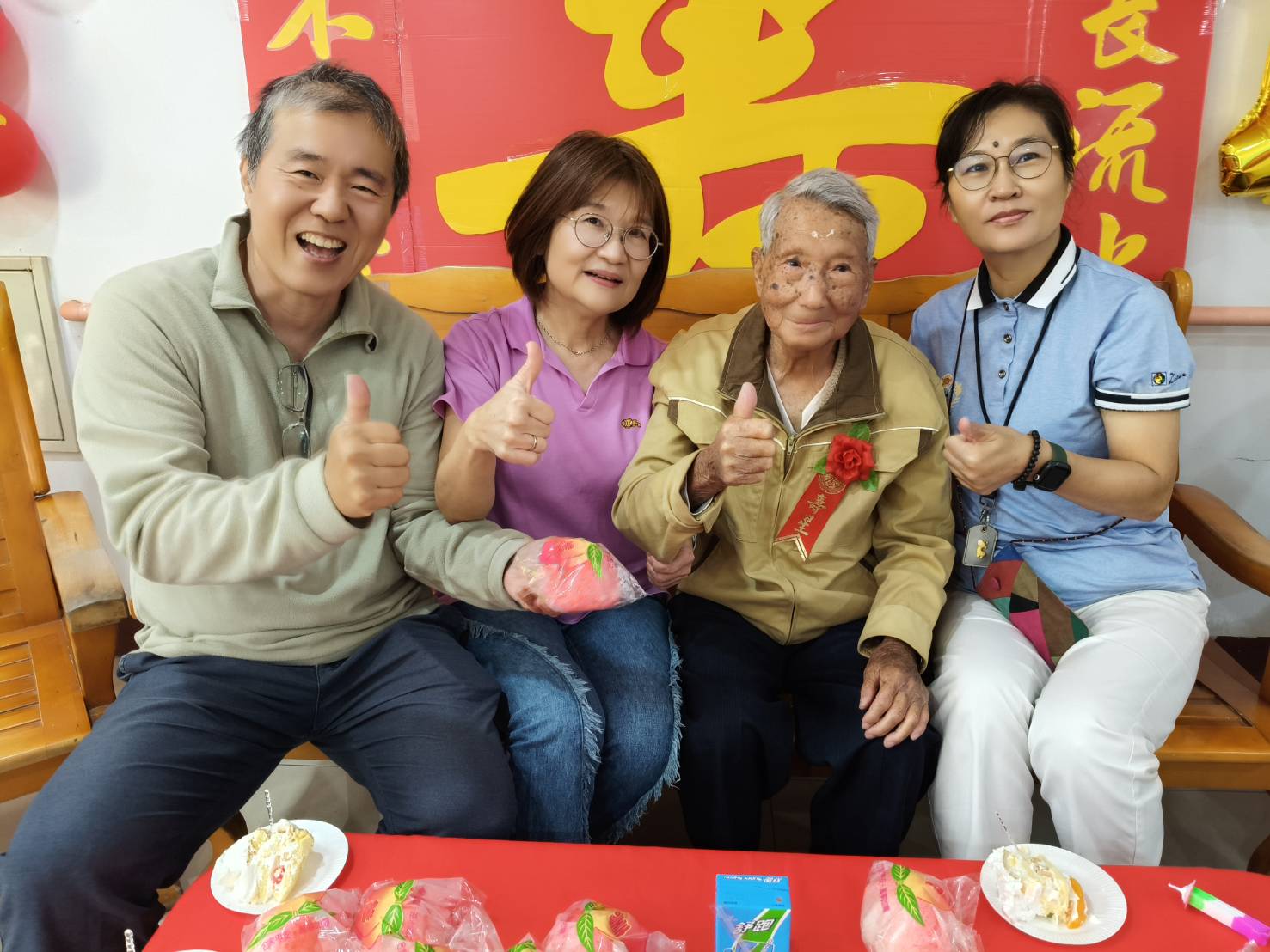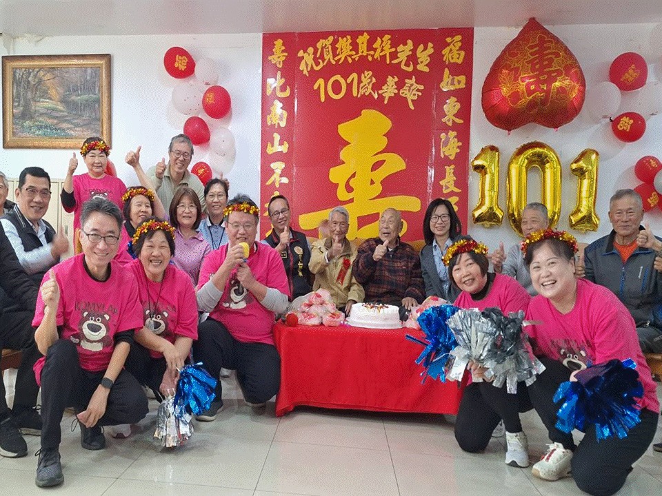 育興堂樊其梓爺爺百歲晉一壽辰活動,除了播放家人的祝福影片外,現場也為樊爺爺切起蛋糕、齊唱生日快樂歌,最後以照服同仁為樊爺爺帶來動感十足的舞蹈做為活動高潮~祝福樊爺爺福如東海、壽比南山~