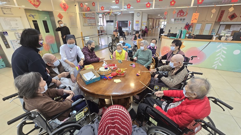 新竹榮家今晨迎來一場溫馨感人的主題活動——「彼此相愛」,由天主教新竹耶穌聖心堂宗教志工帶領長輩們,以音樂、遊戲和故事,共度一段充滿愛與關懷的上午時光。活動在輕柔的開場祈禱中揭開序幕,志工們熱情介紹主題,並帶領大家做暖身操,隨著節奏伸展四肢,笑聲與活力充滿會場。 隨後,全體長輩參與趣味互動遊戲「你我串起一串心」。大家運用筷子與手環彼此傳遞,協力完成任務,過程中不僅鍛鍊了靈活度,也增進了團隊合作與情感連結。隨著遊戲的進行,歡笑聲此起彼落,現場氣氛溫馨又熱鬧。 接著,志工以故事《天堂的饗宴》帶領長輩體會彼此相愛的意義,並分享經句「我給你們一條新命令:你們該彼此相愛,如同我愛了你們,你們也該照樣彼此相愛」。大家細細品味,在愛中彼此扶持、感受平安與喜悅。 活動高潮是「交響樂大合奏」,長輩們分組拿起鈴鼓與響板,跟隨指揮節奏演奏,並一同高唱〈我是主羊〉。音樂的律動與合唱的力量讓每位長輩都沉浸在快樂與溫暖的氛圍中,現場洋溢著團結與愛的感覺。 最後,在歌唱〈讓我們彼此相愛〉與祝福祈禱中活動圓滿落幕,志工們送上小禮物並與長輩擊掌道別。這場「彼此相愛」活動,不僅增進了長輩之間的互動,也讓大家在音樂、遊戲與分享中重新感受愛的力量,收穫滿滿的溫暖與幸福。 相關照片