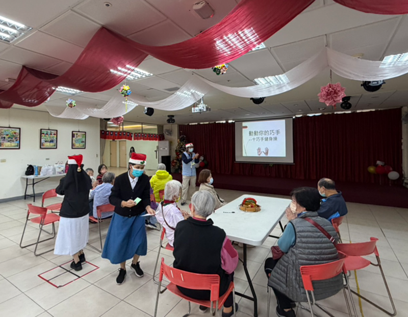 十二月的榮家洋溢著濃厚的聖誕氛圍! 新竹榮家今晨再度迎來天主教新竹耶穌聖心堂的志工們,以「天主在天受光榮,主愛的人在世享平安」為主題,為長輩們帶來一場充滿溫馨與祝福的聖誕心靈饗宴。 活動在莊嚴的祈禱中展開。為了讓長輩們保持活力,志工們領大家齊喊「要健康唷!」並示範十巧手,在數數聲中一起活動筋骨。接著,大家聆聽聖誕的故事,並溫柔吟唱經典**〈聖誕鈴聲〉**,重溫節日的喜悅。 活動高潮是溫馨的「傳聖嬰」儀式,長輩們在悠揚的**〈平安夜〉**歌聲中傳遞聖嬰,感受被愛與守護的溫暖。神父與修女也親自為每位長輩送上祝福,最後在感恩的祈禱與禮物分送中圓滿落幕。 活動不僅帶來聖誕的歡樂,更傳遞了心靈的平安與希望。感謝所有志工的無私付出,讓愛的光輝照亮每一位長輩的心房!