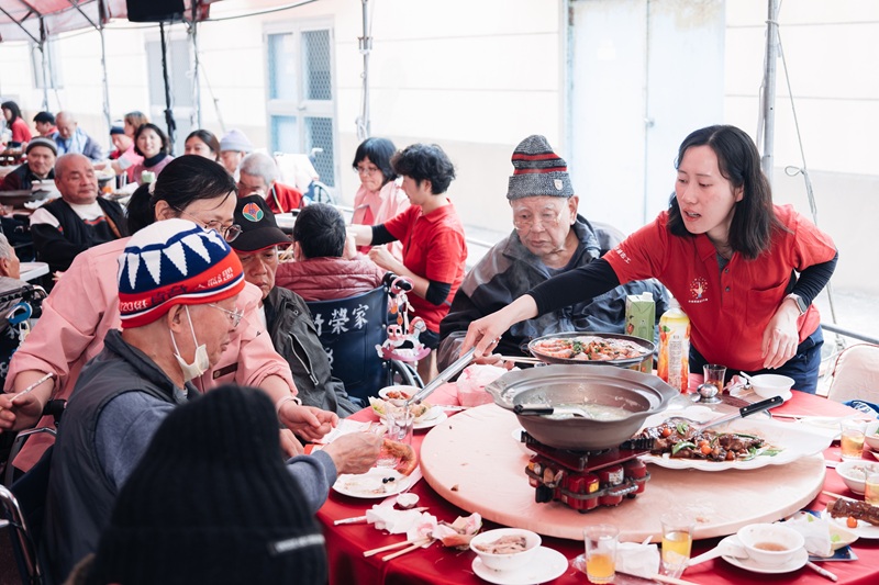 台積電慈善基金會與新竹榮家攜手合作十七載,今(5)日基金會辦理歲末暖心圍爐活動,席開72桌。董事長張淑芬率領130多位志工到榮家與長輩同樂,維繫雙方長年的情誼,共同歡喜迎接馬年。現場安排四位百歲住民代表榮家與張董事長互贈禮物,長輩們回贈親手製作,貼有過往與基金會互動照片的感念卡片,紀錄雙方緊密交心的溫馨歲月。張董事長也在席間與長輩們互動,並合唱《月亮代表我的心》,熟悉的旋律帶動全場歡樂的氣氛。 榮家主任白恩惠表示,感謝張董事長帶領台積電慈善基金會秉持「選定主題、長期投入」的宗旨,與榮家已經建立十七年的堅貞情誼,這份守護從資源挹注到情感支持,與榮家儼然成為一個溫暖的大家庭。這份深厚的情緣溯至民國 99 年,雙方從父親節活動首次建立互信基礎,並開啟志工們穩定陪伴榮家長輩的漫長旅程,而在後續服務過程中聽聞部分長輩因體況,在春節期間只能坐在輪椅上食用個別餐,為了讓他們感受節慶團圓氛圍,基金會將「歲末聯歡圍爐」列為年度重點盛事,讓平時較少參與大型活動的長輩也能與大夥同桌,享受餐敘的快樂,然而因疫情斷鏈,感謝張董事長今年再度讓長輩享受歡樂的圍爐。 董事長張淑芬表達對長輩們長年的掛念,看到大家在疫情過後依然精神奕奕地聚在一起圍爐,對這份重逢感到欣慰與踏實,表示只要看到長輩們好,志工的心情也會跟著好,「你們的心情會反映到我們的心情上,謝謝你們讓我們開心。」她更許下每年相見的約定,鼓勵長輩要為了彼此照顧好身體,將這份愉快的笑容長長久久地維持下去。 新竹榮家表示,即便過去幾年活動因疫情中斷,基金會與榮家的情感連結終未曾間斷。志工夥伴持續辦理「傳承藝術」活動,透過傾聽長輩故事協助製作生命繪本,並陪伴長輩參加銀髮健康俱樂部運動。每逢佳節,基金會亦固定提供年菜為長輩加菜,台積電12廠志工每年冬季都會送來親手採摘的關西柑橘。 102 歲的吉英奶奶滿心歡喜地說著感謝,在老伴過世後的艱難時期,除了榮家提供的專業照護與生活支持,張董事長與志工們長期的精神陪伴,更是支持她走過低潮的重要力量。 台積電慈善基金會為了讓長輩感受圍爐熱絡氛圍,用心安排志工與長輩共同完成馬年紙雕 DIY,現場並有樂團演奏懷舊樂曲、魔術秀、賓果遊戲及設計八道闖關遊戲。針對不同健康需求,現場備有碎食組及一般組菜單,以及防風薑茶,並由志工在旁協助用餐,確保長輩都能在細緻的呵護下享用團圓佳餚。這場圍爐不僅是一頓年飯,更象徵基金會與榮家緊密連結的情誼,將綿延不絕持續進行。