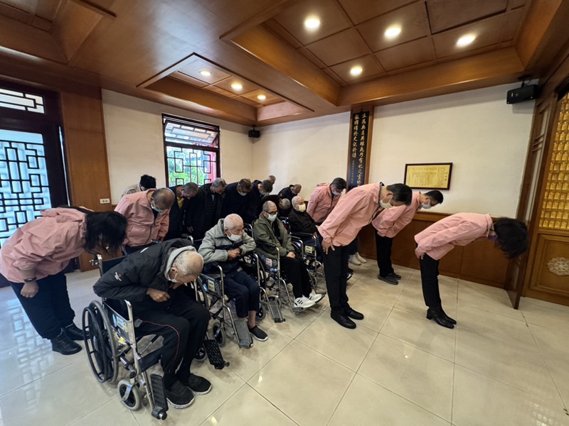 新春前夕新竹榮家舉行春節祭祀典禮。家主任白恩惠率各級幹部、同仁及住民代表,齊聚榮靈祠,以鮮花素果禮敬榮民先輩。典禮過程莊嚴肅穆,追思榮民先輩對國家的勳勞,並祈求開春全體住民與工作人員保有龍馬精神、福壽康寧。 新竹榮家榮靈祠內奉厝五千多位單身榮民先輩的英靈。對許多住民而言,這些先輩同袍,是曾經患難與共的父兄與摯友。白恩惠主任表示,榮家始終秉持慎終追遠的精神,透過春節祭祀,除了感念榮民先輩們對國家的奉獻,更希望藉此傳承榮民精神。 春節祭祀現場,氣氛溫馨而動人,許多高齡長輩雖行動不便,仍堅持在工作人員的悉心攙扶或推行輪椅下,親自步入祠內致意,展現出同袍間深厚的情誼與對先人的追思。為表敬意,春節期間新竹榮家榮靈祠祠將持續開放,方便住民長輩及遺眷友人隨時前往追思,圓滿長輩們靈性上的寄託。