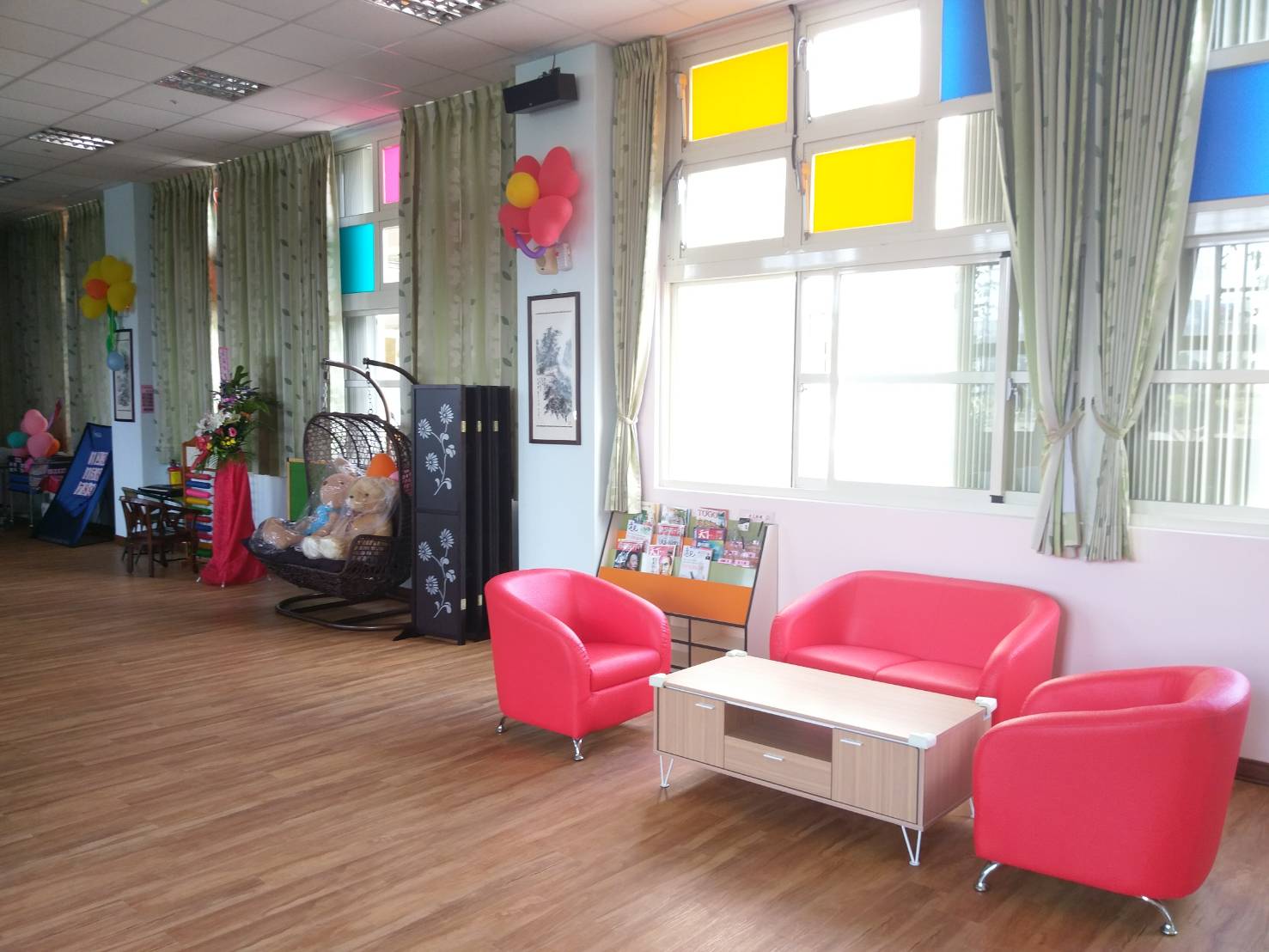 本中心位於保健大樓1樓,佔地約250平方公尺,設有多功能活動休憩區、廚房、辦公室、廁所、庫房及置物室。