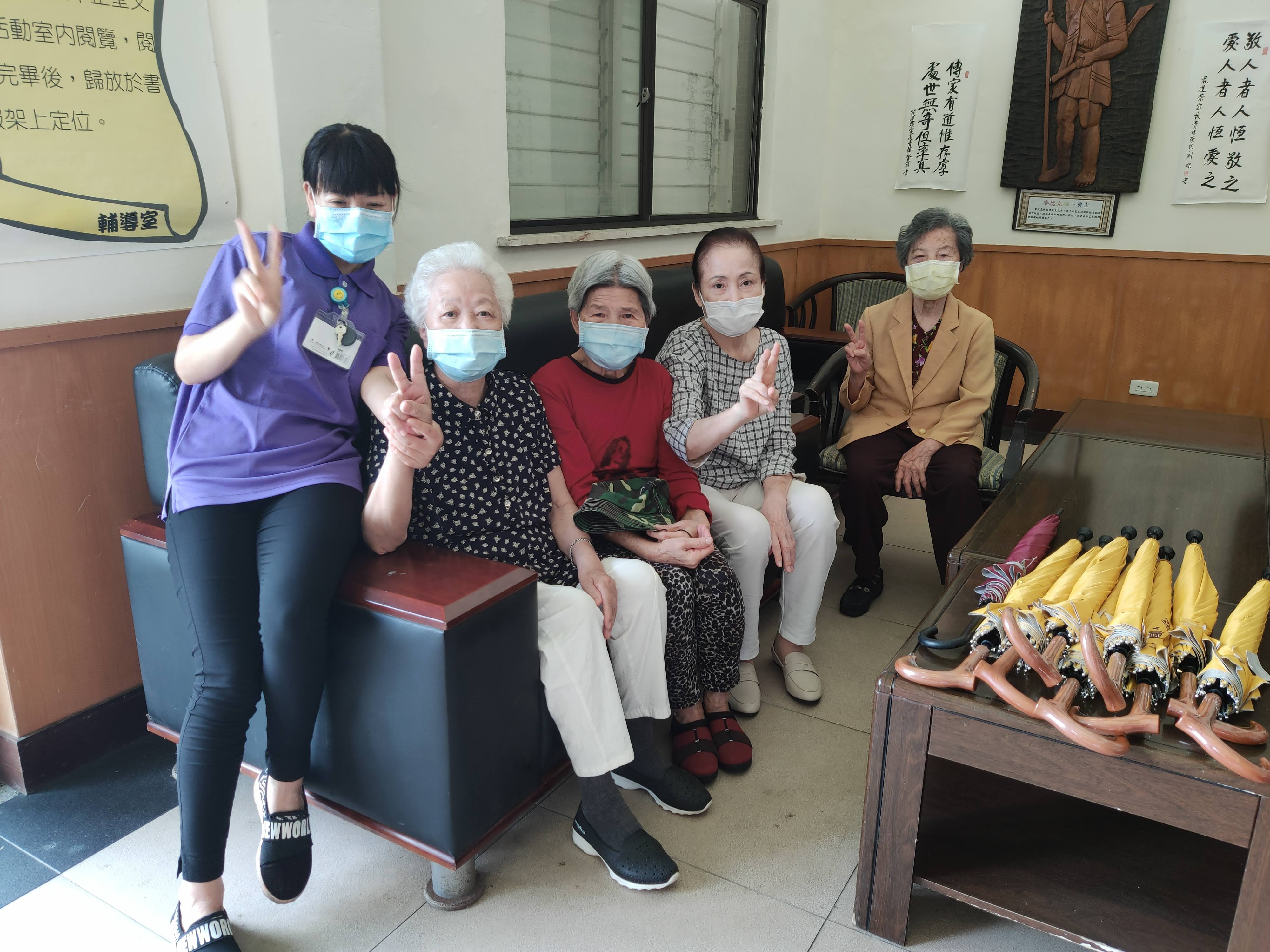 五月~春去夏來的梅雨季節,歷經多日綿綿細雨的下雨天。終於在這晴天白雲好天氣之時,山青日照中心來一場說走就走的「週邊社區探險記」! 一早老大人們人手一支萬用「拐杖傘」既可安全行走,也同時兼具了「遮陽傘」功能,遮去了炎熱的陽光日照。沿途行走時可悠哉欣賞榮家優美的綠化環境,中途走累了則在中正堂書報區作短暫休息;隨後抵達了榮家福利處的「社區百貨部」,熱心服務的櫃台同仁為日照中心老大人們做了簡短介紹:「百貨部在每星期一、三、五早上08:30-10:30皆有提供便民的購物服務唷!」 而當中參觀購物的周O茶美女表示:「這裡的商品價格有比較便宜唷!」另朱O苟帥哥也一口氣購買了4包「高鈣餅乾條」並表示這餅乾跟年輕時候吃的味道一樣,臉部表情瞬間感動了起來 !回程中發現百年老樹「鳳凰木」下有「鞦韆」,陳O光帥哥與王OO環美女隨即輪流乘坐並回憶起童年快樂的時光! 家中每一位有著豐富人生經歷的老大人皆是我們的可愛的寶 ,對於有失智、失能的長者,引導他們走進社區接受外在環境的刺激都是可以延緩老年退化的速度! 防疫期間請務必提醒家中長者要記得勤洗手、多補充水份,出入人口密集處請佩戴口罩,山青日照中心關心您的健康!