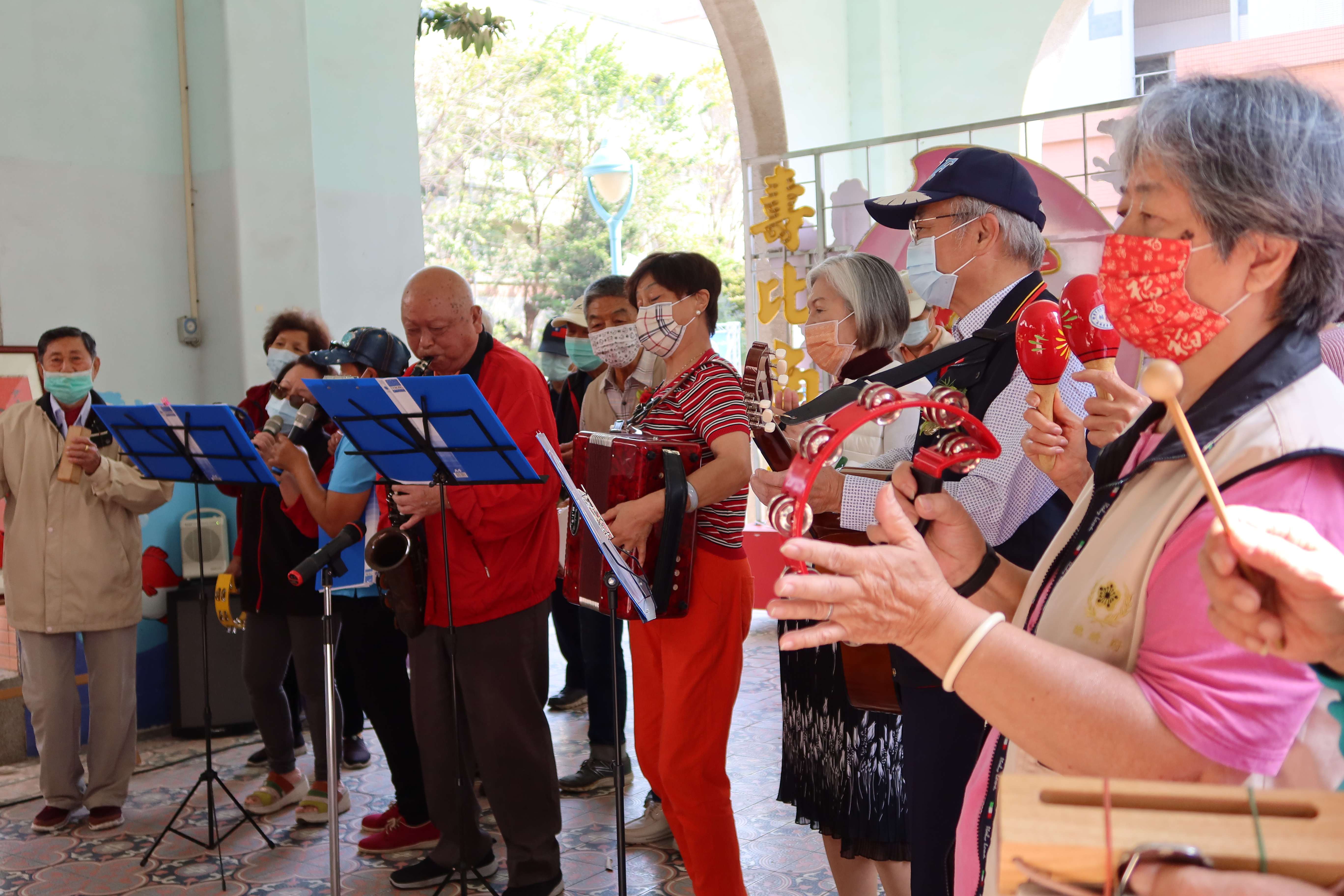 高雄榮家3月份再增添一位百歲人瑞, 3月25日榮家特別於戶外舉辦「百歲人瑞壽誕暨3月壽星慶生茶會」並邀請尹爺爺的家人擔任嘉賓,遠嫁英國的三女兒也來到會場獻上滿滿的祝福,讓尹爺爺開心不已! 尹克俊爺爺為人謙和,湖南橫山縣人,民國48年退伍至學校任教,進住榮家夫妻房第10年。日常生活簡單,有散步好習慣,雖年邁仍每天推著輪椅散步,對榮家生活滿意,知足常樂是尹伯伯養生之道。 高雄榮家王繼開主任代表總統及行政院長致贈百歲人瑞壽屏,親手為尹爺爺戴上輔導會大鵬主委致贈的金鎖片,更書寫千壽字帖祝賀,祝福尹爺爺福祿千壽!女兒們也準備了兩盆蘭花送給尹爺爺及尹奶奶,祝福倆老攜手相伴、福澤綿長。更為尹爺爺預備一大束玫瑰花送尹奶奶,謝謝老婆一甲子來的照顧。全家人開心合影見證尹爺爺百歲大壽! 榮家「唯我獨尊家族舞團」以《Bahama Mama》團體舞蹈,熱鬧開場。接著"夢響佳打擊樂團"連續演奏《甜蜜蜜》及《幾度花落時》,讓台下長輩直喊:安可。打擊樂團再來一首《祝你幸福》,祝福壽星們永遠幸福,精彩表演讓慶生茶會高潮迭起!尹爺爺的女兒大讚:榮家長輩們真是多才多藝、好有活力。住民長輩們也輪番上台演唱《戀曲1980》、《思慕的人》、《魂縈舊夢》、《煙花三月》等多首動聽歌曲,獲得台下熱烈掌聲。81歲尹奶奶也開心的與王主任及呂組長壓軸獻唱經典歌曲《天上人間》,表示夫妻倆在高雄榮家的生活,就像歌詞曲裡所說的「天上人間」般美好。 王主任表示高雄榮家是個大家庭,希望家裡的每位長輩都能天天生活愉快,榮家會持續秉持著「高齡照護人人好、友善生活健健老」的服務理念,營造高齡友善的頤養環境,讓長輩們能夠在榮家這個大家庭住的安心,過的開心。尤其看到住民長輩們各個充滿活力又多才多藝,感到十分歡喜,也祝福所有壽星長輩們福如東海、壽比南山,天天開心!
