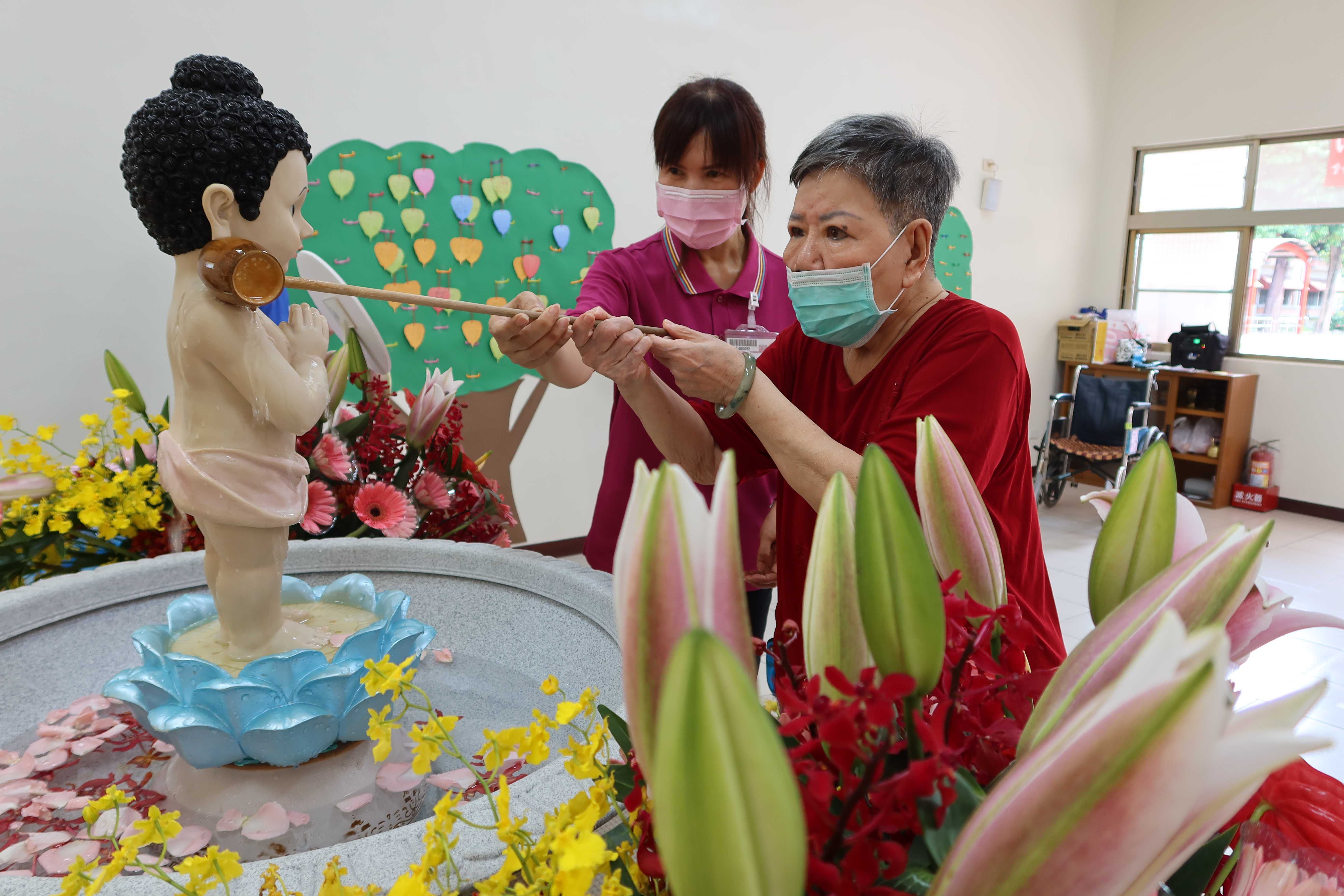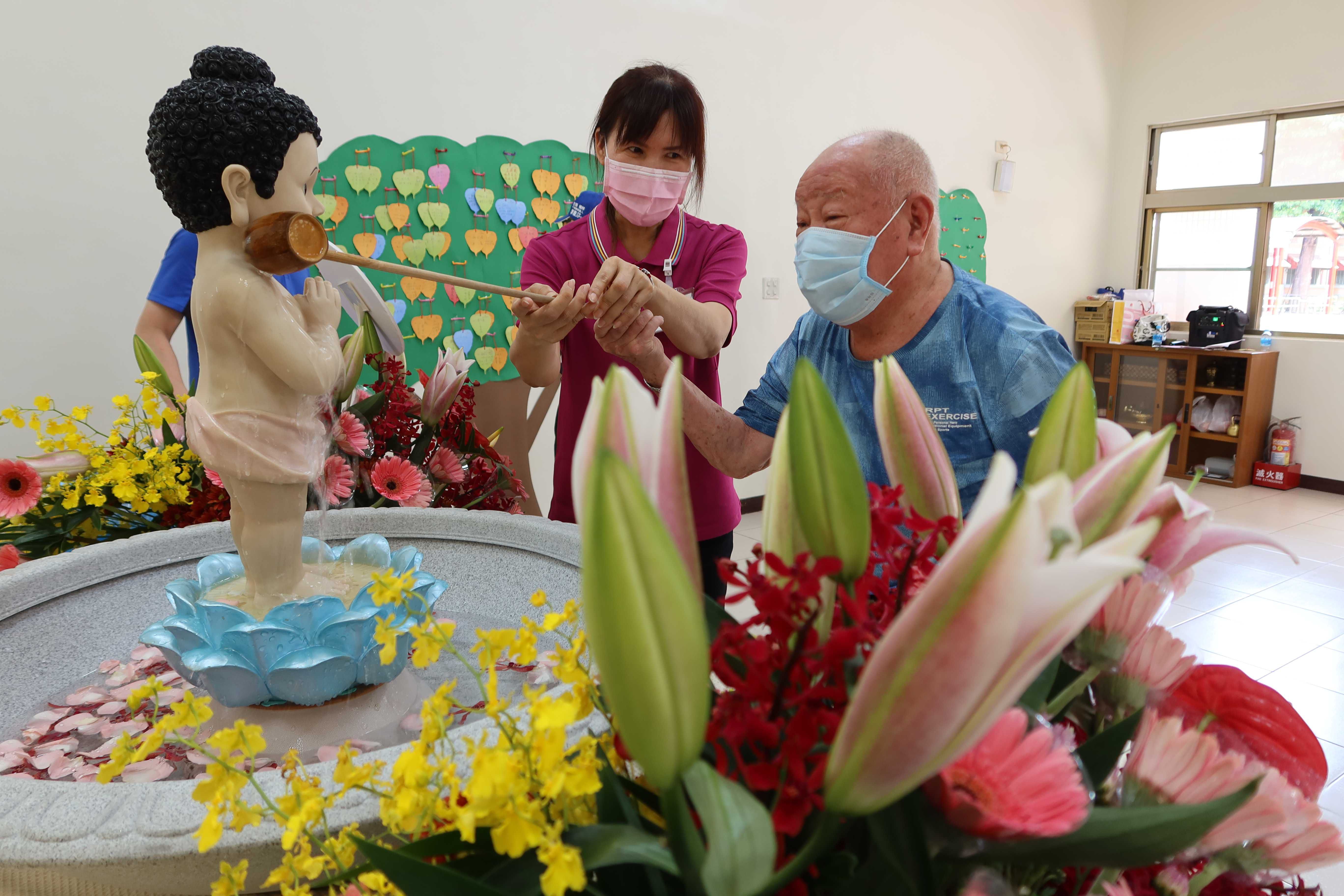 浴佛祈福兼顧防疫 榮家長輩心生歡喜