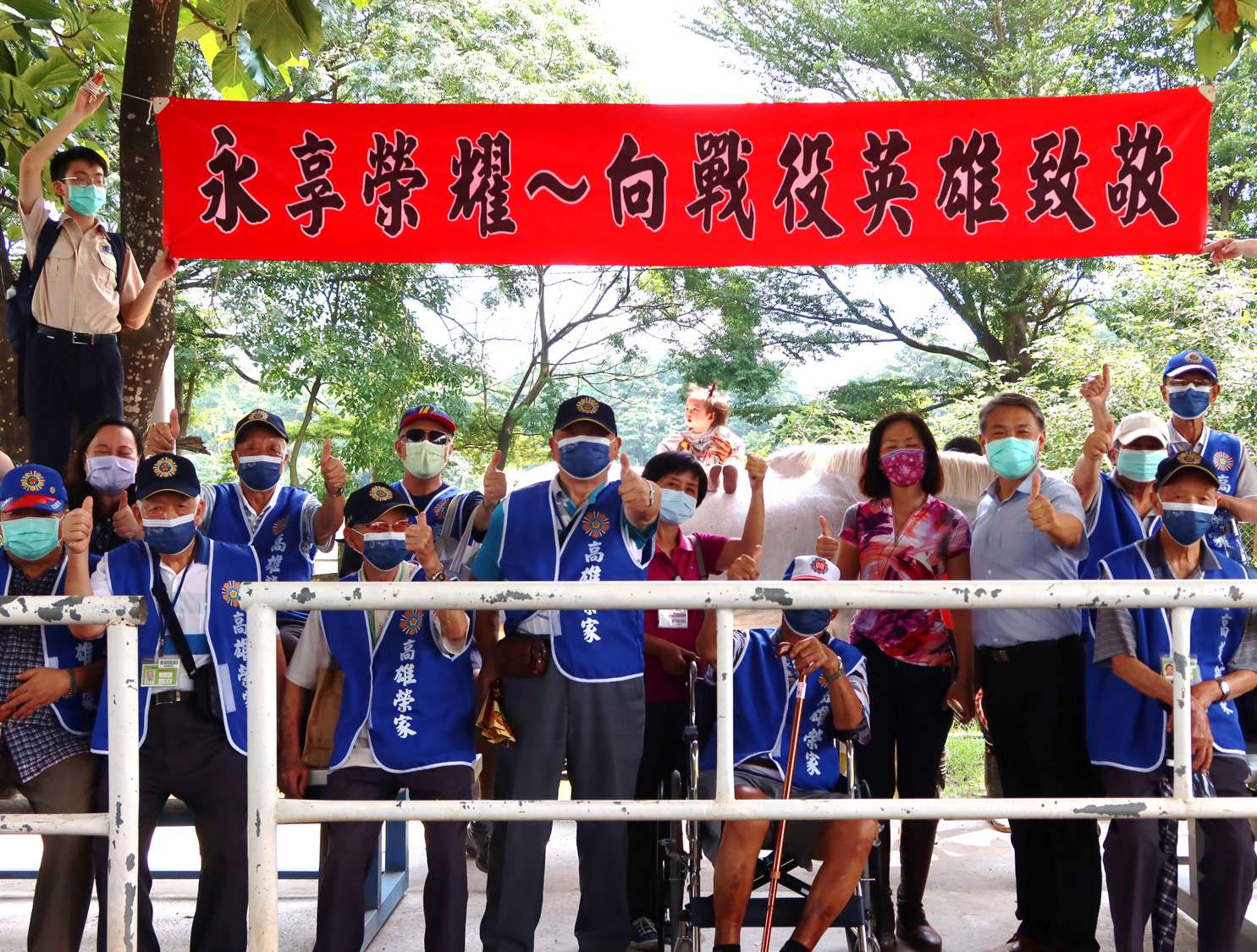 曾為保衛國家參與重要戰役及退役後投身奉獻國家重大建設的老兵,就是偉大的榮譽國民!感念榮民們一生報效國家、犧牲奉獻,我們今日才能享有自由民主、安和樂利的生活。高雄榮家為表達對參戰英雄長輩們的尊崇與敬意,特別於本日上午舉辦「永享榮耀—向戰役英雄致敬」的紀念活動。典禮開始由王繼開主任逐一向英雄老兵敬禮,為長輩戴上光榮花圈及敬贈感謝狀、紀念品。這次表揚活動的英雄有參與八二三戰役及七七抗戰的榮民長輩們,在最敬禮的悠揚樂聲中,受獎的榮民伯伯們激動揮舞著國旗向熱愛的國家致敬,在場的榮家服務同仁們也向榮民英雄前輩們致上最敬禮!隆重典禮結束後,由王主任親自陪同參與七七抗戰的榮民代表高鳳貴伯伯、八二三炮戰的沈志隆伯伯以及百歲人瑞邱誠一爺爺等一行人前往橋頭馬術中心,共同體驗與馬兒互動的樂趣。 榮民伯伯們對馬兒有股說不出的革命情感,因為在戰場上是要展現馬革裹屍、視死如歸的大無畏精神、勇往直前、一馬當先,方能馬到成功、旗開得勝。此次特別感謝橋頭馬術中心的李宜珍董事長,精心安排並親自接待榮家的英雄長輩們體驗餵馬及牽騎的樂趣。曾參與八二三炮戰的沈志隆伯伯在馬場騎師的護衛下騎著溫馴馬兒Milk,慢慢圍繞著馬棚廣場走一圈,沈伯伯開心的說:感謝國家對榮民的關懷照顧,讓他能在榮家安養晚年享受尊榮,也特別謝謝李董事長的慈善愛心,大方的讓榮民長輩們體驗騎乘樂趣。明倫堂房長張大哥特別高舉榮家特製的榮譽褒揚旗,展現馬上英姿照相留念,然後器宇軒昂地騎馬繞場、贏得在場英雄長輩不少掌聲鼓勵! 同時還有十幾位榮民長輩們親往巴洛克特色的馬廄,體驗餵食馬兒吃甘蔗的樂趣。原來馬兒很有靈性,餵食這匹馬的隔壁那間尚未吃到甘蔗的馬兒,還會等不及的抬腳踢門片提醒呢!平時喜歡吃花生的百歲人瑞邱誠一爺爺拿甘蔗餵馬兒吃得津津有味,牙口勇健的他也跟著咬了口甘蔗,豎起大拇指稱讚馬兒果然聰明識貨。93歲坐輪椅的劉金發爺爺也開心的拿著甘蔗餵馬,還可愛提醒馬兒慢慢吃、甘蔗都還有。高齡97歲高鳳貴爺爺去年曾率先上馬體驗,他說馬背上的視野不同、人要挺直腰桿,就是遇到困難也要勇敢面對,展現堅忍不拔的精神,所以他今年雖然行動力退化,仍要來馬場看看這群馬兒,問候老朋友。 高雄榮家在疫情趨緩防疫不鬆懈的前提下,感謝橋頭馬術中心李董事長的大愛與敬老關懷,讓曾參與戰役的英雄長輩們到馬場參觀,親身體驗與駿馬的零距離互動,回憶軍旅的榮耀時光,以實際行動表達對榮民英雄長輩的崇高敬意! 相關照片