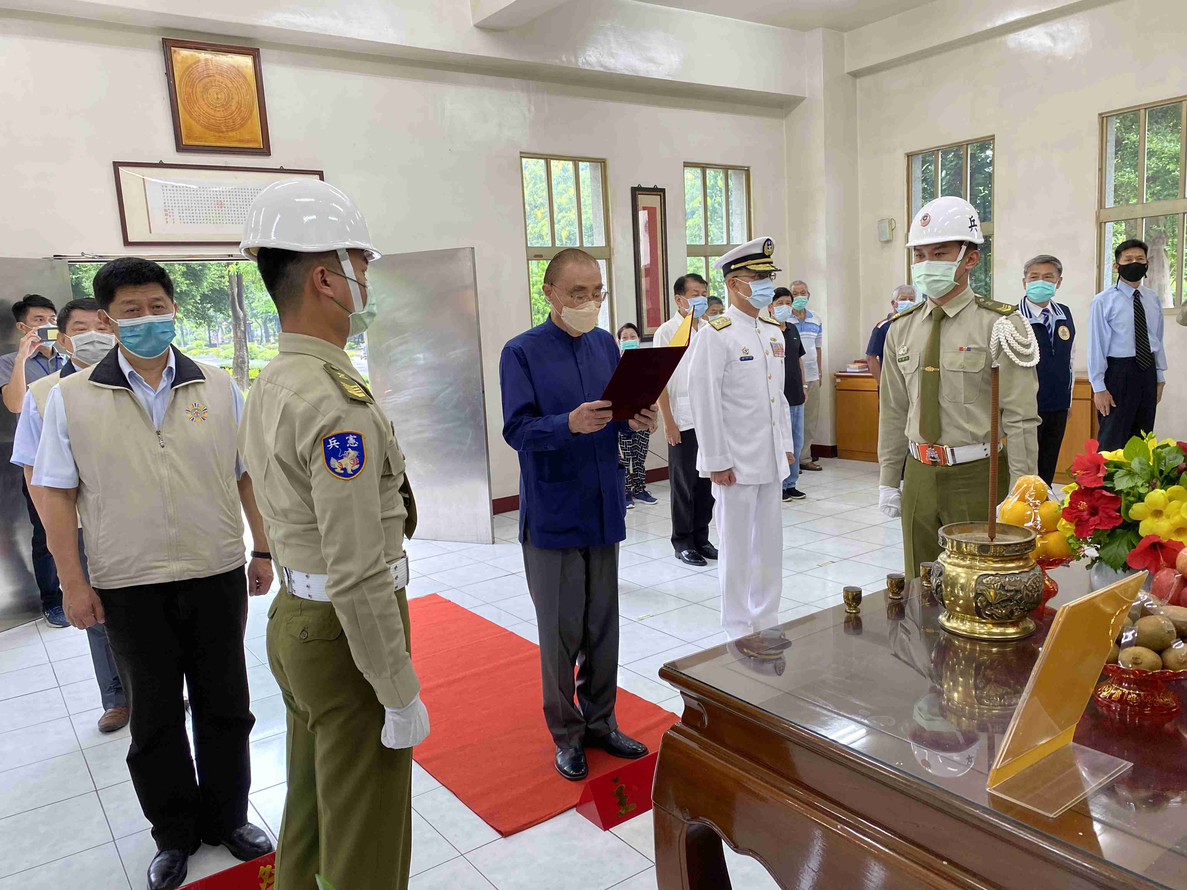 國軍退除役官兵輔導委員會主任委員上將軍馮世寬感念歷年亡故榮民生前至死不渝,終身為國家的自由民主與經濟繁榮犧牲奉獻,據以奠定國家永續發展的基礎,實在功不可沒。特於今日上午親臨高雄榮家,率領輔導會陳副主委及一級主管、會屬機構首長、事業機構代表與地區軍方將領,於榮家榮靈祠隆重主持祭悼歷年亡故榮民暨頒布「任務終止令」典禮,榮家住民由房戶長代表與會,儀程莊嚴肅穆。 馮主委表示:我們榮民前輩都是國軍的英勇將士,每當國家危難存亡之際,無不前仆後繼、壯烈犧牲,以保衛國家社稷。輔導會為尊崇緬懷榮民前輩半生戎馬,各榮家均設有榮靈祠供奉亡故單身榮民前輩牌位。回顧八年對日抗戰勝利,使國家躋列世界強國之林;又隨先總統 蔣公來台,不畏犧牲,保衛台澎金馬的安全;金門八二三戰役更奠定國家得以永續發展,創建自由民主之基礎。卸甲榮民更是艱苦卓絕、篳路藍縷,開墾山林,開拓東西、南、北橫貫公路、貢獻國家十大建設,開創亞洲四小龍之首的經濟奇蹟。這種堅苦卓絕、竭智盡忠的精神,將永垂青史為全民景仰。故此,特以輔導會主委上將軍之名,奉天諡旨宣告「任務終止令」,祈願亡故榮民英靈不滅、精神永息!場面莊嚴隆重,溫馨感人,典禮圓滿順利。 最後大鵬主委向在場住民長輩代表及與祭貴賓說明,祭祀之禮是中華文化的傳統與精髓,禮是國之重器,不分宗教門派,都是慎終追遠,包容乃大。今天在大家的見證下,共同緬懷我們榮民前輩為國犧牲奉獻的精神,讓後起者能飲水思源、見賢思齊,這就是今天祭祀的目的。