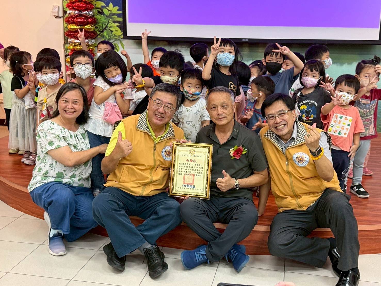 為慶祝輔導會創會71周年暨第47屆榮民節,高雄榮家特別結合慶生活動,邀請10月份壽星長輩及榮家教保中心幼兒們同歡共樂。榮家同時頒發「榮民楷模」表揚,由熱心服務的張清榮房長榮獲殊榮。張大哥青澀年代服務於海軍陸戰隊,當年曾是陸戰隊最精壯年輕有為的營長。話說郭主任當時剛從軍校畢業,就在張營長的麾下擔任中尉排長一職。三年多前能再度於榮家相遇且共同服務長輩,象徵薪火相傳的榮民精神。現場洋溢著溫馨歡樂、愛與感恩的幸福氛圍,充分展現榮家溫馨如親一家人、致敬榮民前輩的敦厚情誼。 慶生茶會由全體照顧服務員齊聚舞台,溫馨合唱《生日快樂》歌,為壽星長輩們獻上滿滿祝福開場。由郭豫臨家主任與蔡旭煌副主任陪同高齡98歲壽星代表—溫文儒雅的李作義伯伯,歡喜許下生日願望,李伯伯康健有力地搧熄蠟燭、開心切幸福圓滿蛋糕與大家分享。家主任還抽出兩位幸運壽星贈送禮品,與副主任逐一為壽星長輩遞送生日禮金紅包,壽星長輩紛紛合影留念,紀錄在榮家生活的美好片段;為歡慶榮民節,榮家也特別贈予家區長輩們有美好寓意的「壽桃」,不僅表達誠摯謝意,也祝福長輩們健康長壽呷百二。 餘興活動精采多元,首先是教保中心的小朋友們帶來《竹兜歡樂跳》與《愛你呦》兩首充滿童趣的律動舞蹈。只見兩歲多的稚嫩小娃兒蹦蹦跳跳,讓在場的爺爺奶奶們笑聲不斷,孩子們為長輩遞送蛋糕、長輩們倍感溫馨。榮家「唯我獨尊」樂齡社團活力演出,在節奏分明的廣場舞旋律中,長輩們大方展現平日練習成果,舞步整齊俐落,完全不輸年輕人,現場掌聲與喝采不絕於耳。90歲非洲鼓團長仲媽媽與潘阿姨合唱懷舊台語歌曲〈思慕的人〉,情感豐沛、歌聲動人,讓台上台下同聲唱和;茶會壓軸由輔導組呂組長帶領照服員夥伴同聲獻唱經典民歌《木棉道》,帶動活動高潮、為慶生會譜上溫馨句點。 郭主任表示適逢輔導會創會71周年暨第47屆榮民節,慶生會特別安排在光輝十月的最後一天舉辦別具意義。榮家向來秉持「長輩健康是我們成就,長輩幸福是我們快樂」的信念,以細心、愛心、耐心與同理心照顧每位長輩,並透過多元文康活動豐富長輩生活,延緩失能、促進活躍老化。此次活動不僅帶給壽星長輩歡笑與感動,更凝聚榮家向心力,展現對榮民前輩最誠摯的敬意與祝福。