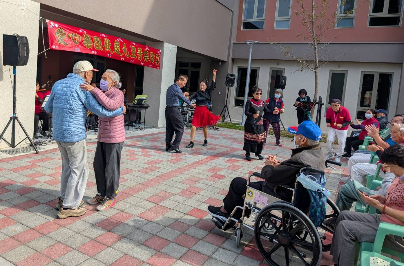 民國115年的第一天清晨微有涼意,當家區響起愛國歌曲,高雄榮家長輩們以滿滿的熱情、即使行動不便也要坐輪椅、騎著電動車,呼朋引伴共同參與元旦升旗典禮。在郭豫臨家主任的帶領下,長輩們及職員工精神抖擻、同心齊唱國歌。看著青天白日滿地紅的國旗在藍天白雲冉冉升起,元月份要歡慶百歲誕辰的單身榮民馮爺爺感性的說道:「還好當初決定入住榮家,今天才能和大家一起唱國歌、向國旗敬禮,用具體行動向這片土地表達認同與敬意,真是幸福又快樂啊! 」 在歡趣共好的滿滿幸福氛圍下,郭主任頒發115年房戶長當選證書,期待新任房戶長們擔任榮家與住民長輩間的溝通橋樑,協助榮家推動各項照顧服務工作。同時致贈感謝狀及養生祝福禮品予卸任的房戶長們,感謝過去一年來對榮家各項工作的支持,特別是施工期間對長輩們日常生活造成影響,房戶長們也協助婉釋說明。就是這種「相互關懷、彼此包容、共融共好」的精神,讓榮家就是我家、我們都愛高雄榮家的理念落實在每位住民的生活中。 接續由榮獲衛福部國健署2025阿公阿嬤活力Show全國競賽新秀組金牌的「榮光快樂非洲鼓隊」登場,在氣勢磅礡的鼓聲中,只見長輩們熱情洋溢、鼓動歡笑;中華國際全方位照護學會的體適能老師們更引領榮家長輩們「向前衝」及「騎馬舞」等活力奔放的律動,象徵祝福榮家長輩們馬到成功!全場笑開懷、優雅動人,看不出近90歲的仲媽媽熱情表示:「要活就要動,就跟著老師們動一動、身體自然就暖和了」,長輩們的熱情活力成為榮家最美妙的風光。榮家也特別安排長輩們參觀預計1月下旬啟用的失智專區「尋夢園」,剛落成的建築物,優美寬敞的環境與空間規劃,讓長輩開玩笑地問主任是否能就近優先搬進去住啊?每年都來榮家公益演出的「愛心樂團」,更在元旦帶來精彩的現場演出。音韻悠揚、聲情並茂,無論是小喇叭、薩克斯風還是難得聽到的葫蘆絲演奏,每首曲目都讓在場聆聽的長輩,陶醉不已、忍不住翩然起舞。 家主任表示讓長輩們安居樂活、健康平安是榮家一直以來的服務宗旨,這次元旦升旗營造健康歡樂,透過非洲鼓隊及體適能老師的帶領,鼓勵長輩們輕鬆動一動。結合愛心樂團現場演奏經典動聽的歌曲,在動靜之間的安排都有助於長輩們身心舒暢。期盼榮家的住民長輩及工作人員,在新的一年裡都能闔家安泰、歡樂健康!