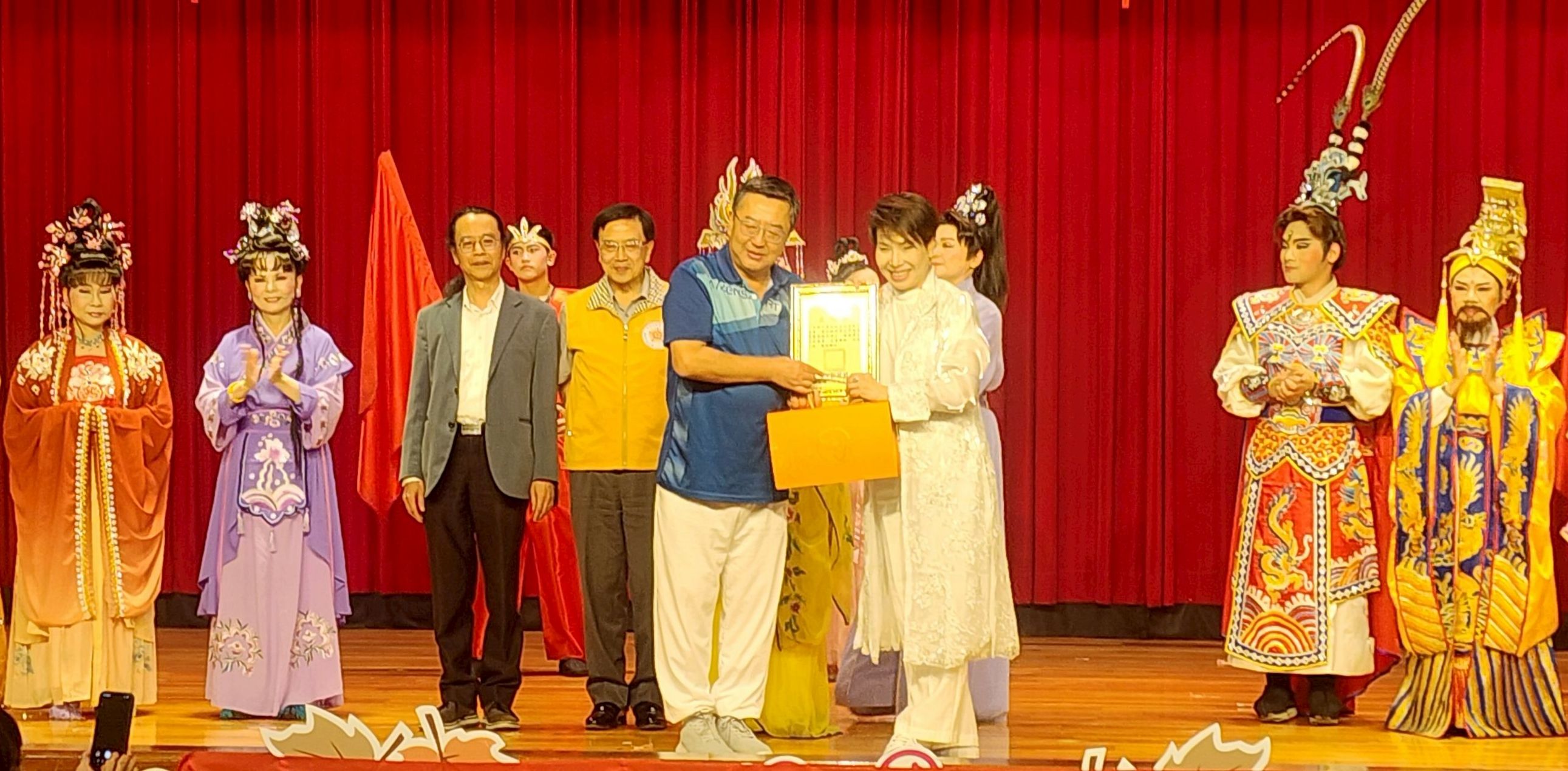 美好的週日下午在高雄榮譽國民之家中正堂,有場特別的《七仙女祝壽會董永~歌仔戲》熱鬧登場! 一直挖空心思為長輩舉辦各種活動的高雄榮家郭豫臨家主任表示:為迎接3月8日國際婦女節及為三月份壽星慶生,特別邀請「高雄市傳統戲曲推廣教育協會」理事長陳昭錦老師與「昭錦歌仔戲坊」聯合登台義演,榮家長輩、眷屬及鄰近社區居民,紛紛攜老扶幼一起來榮家歡喜看戲,大家不僅重溫廟埕前、戲棚腳的美好時光,更將劇院級演出帶進榮家。 高雄榮家郭主任說:這麼有意義的日子,很榮幸邀請榮獲【教育部】社會教育〜個人貢獻獎的陳昭錦老師,將傳統歌仔戲融合新式表演型態,特別編導大家熟悉又創新的【七仙女祝壽會董永】,藉由王母娘娘祝壽戲碼,為榮家3月份壽星長輩慶生。榮家還精心準備壽桃分發給觀眾沾沾喜氣,現場歡聲雷動熱鬧非凡。榮家山東籍的仲媽媽,恰逢90歲生日,她許下願望就是期盼自己有一天也能夠粉墨登場。在昭錦老師的巧思安排下,也特別於戲劇中扮演尊貴的【瑤池金母】。雖是初次登台,仲媽媽毫不怯場,聲音清亮富有感情,作工扮相俱佳,贏得現場來賓如雷的掌聲。榮家長輩薛媽媽開心地說:今年的婦女節活動真的很特別,不僅有精彩的歌仔戲演出,還有貼心的慶生活動,為我們帶來溫馨歡樂的周末時光。 昭錦老師表示:「高雄市傳統戲曲推廣教育協會」的成立宗旨是為了弘揚戲曲文化及推廣、教育,歌仔戲是台灣本土所發展的地方戲曲,以其獨特自然的通俗表現風格及演員的詮釋,扣動觀眾的心弦。百餘年來台灣歌仔戲保存台語之美,除教導大眾忠孝節義之外,對鄉土傳奇與風土人情也諸多入戲,是最能代表台灣人文特色的民間藝術。 此次為榮家長輩量身演出的【七仙女祝壽會董永】贏得滿堂喝采,協會老中青三代的學員們,從元月份大東文化藝術中心義演後,在短短的兩個月內,馬不停蹄的再次排練本場大戲。學員們粉墨登場,由學到演、不僅享受舞台,也很開心能為榮家長輩們帶來歡樂,從看戲、學戲到演戲,確實領略歌仔戲藝術之美。3月8日的榮家中正堂舞台也猶如廟口戲台,重現野台戲榮景,更讓青銀世代融合、一同體認台灣土生土長的「歌仔戲」表演藝術之美。期許未來將傳統藝術融合新世代文化,接軌現代觀眾喜好,讓更多人了解、欣賞,進而參與傳統戲曲藝術。也讓藝術走入生活,豐富榮家長輩們的精神生活,共同營造溫馨祥和的頤養環境!