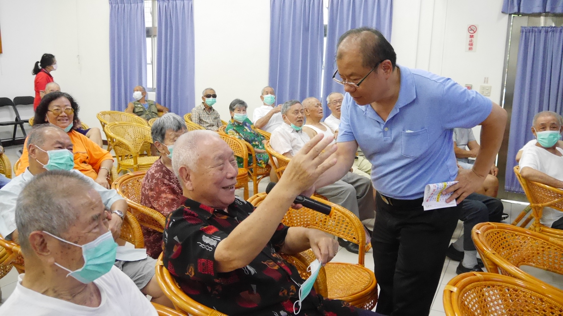 樂透歌友會在劉清田會長的帶領下,數名歌唱好手懷著傳遞愛與關懷的熱情,於7月25日再次來到本家辦理豐富如嘉年華會的音樂饗宴,長輩也早早的來到會場等候欣賞精彩的表演節目。 本次的節目係以民謠歌曲為主題,在幽默風趣的劉清田老師主持下拉開序幕,由英俊瀟灑的藤宏發老師以一曲「阿蘭娜」帶動了整場氣氛,接著由國小老師退休也在各歌唱比賽屢獲冠軍的陳惠實老師演唱「長城謠」,優美的聲線讓長輩們聽得如痴如醉;緊接著由外型亮麗的許寶琴老師、帥氣的余宗儒老師、歌聲動人的雙胞胎姊妹黃莉莉、黃玲玲老師以及美麗大方的郭德馨老師演唱一首首膾炙人口的民謠歌曲,勾起了長輩們年少回憶,也喚醒了長輩們的歌唱魂,一起開口大聲的高唱。 除了歌唱的表演外,施乾元老師也帶來精彩的魔術表演,更讓長輩們嘖嘖稱奇。而劉會長在各表演項目間,不時的穿插腦筋急轉彎與長輩互動,甚至搭配現行最夯的世界杯足球話題,讓長輩們一起動動腦,現場的長輩們爭先舉手回答,答對的長輩都獲得了小禮物,也有部分的長輩獲得了大樂透一張,現場氣氛高潮不斷、熱鬧又歡樂。 樂透歌友會藉著音樂與活動設計散播歡樂散播愛,為住民長輩帶來輕鬆活潑又快樂的午後時光,長輩們敏捷的反應與熱情的回應,也讓參與的老師們開心不已,在活動尾聲,劉老師也與長輩們相約,下個月再來探望長輩,帶給榮家長輩更多更好玩的活動與表演。