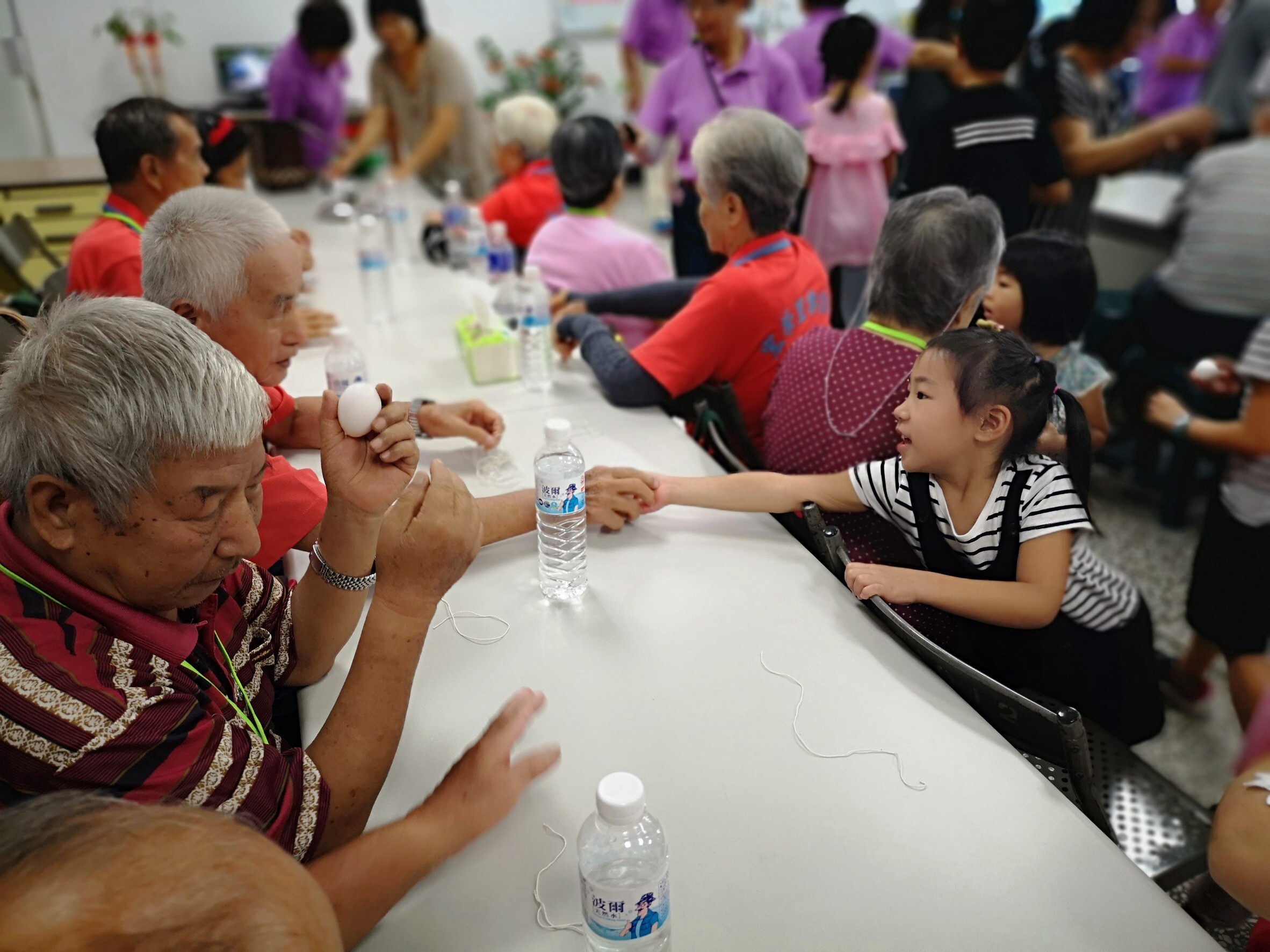 高雄榮家與新宏榮社區發展協會、宏榮里辦公處合作,在高雄市政府社會局長青中心指導下成立「新宏榮社區照顧關懷據點~寶貝學堂」,107年8月6日舉辦據點週年慶暨父親節慶祝活動,活動熱鬧溫馨又有趣,讓社區長輩十分感動。本次活動內容相當豐富且深獲長輩讚賞,除有熱心公益的黃淑卿老師帶領學生志工與長輩製作彩繪蛋、陶笛演奏,更有許多志工們主動貢獻拿手菜幫長輩加菜,高雄榮家也特別贈送每位長輩高級水梨,以「爸爸有『梨』、好事成雙」祝福社區長輩父親節快樂。 「新宏榮社區照顧關懷據點~寶貝學堂」在106年8月成立,由新宏榮社區發展協會與高雄榮譽國民之家共同合作推行。在地方仕紳及公私部門合作下,提供楠梓區宏榮里長輩關懷訪視、電話問安、健康促進及共餐服務,一年來服務社區長輩超過4,000人次。高雄榮家更基於資源共享的理念,開放榮家設施設備,只要榮家辦理大小型活動,一定邀請宏榮里長輩一同參加,社區長輩們只要聽到高雄榮家舉辦活動,都立馬與志工相約前來「逗」熱鬧。 高雄榮家林火土家主任表示,「新宏榮社區照顧關懷據點」是由高雄榮家、社會局長青中心、新宏榮社區發展協會、宏榮里辦公處以及志工伙伴共同努力的成果,也是宏榮里社區長輩第二個溫暖的家,更是高雄榮家推動社區外展服務的據點,未來高雄榮家會持續挹注資源一同關懷社區長輩,希望據點能永續經營,與榮家一起照顧社區中的老寶貝。 相關照片