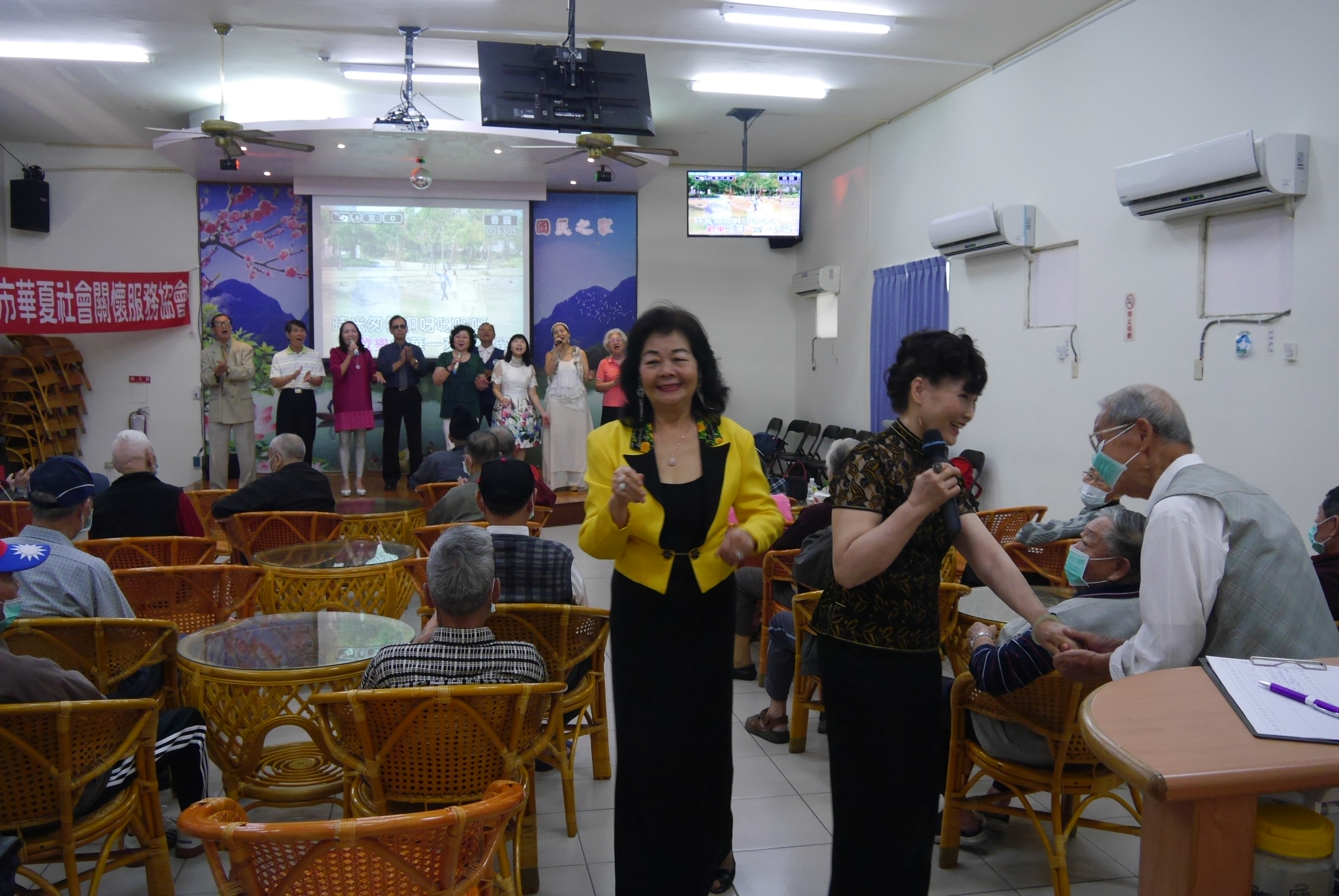 高雄市華夏社會關懷服務協會於108年4月3日上午9時由理事長周新民老師領軍再次蒞臨本家進行關懷表演。表演內容除了國(臺)語老歌演唱、雙人合唱、還有伴舞,內容多元豐富,相當精彩,長輩們早早的來到會場滿心期待聆聽精彩的歌曲演出。 活動開場首先由周新民老師及鄒新蓮老師合唱一首《搖船曲》揭開序幕,長輩們配合著樂曲,一起合唱並搖擺手勢,仿若在搖船般的動作,讓現場充滿歡樂氣氛。緊接著,由團員們依序上台獻唱一連串動聽的歌曲《小放牛》、《港都夜雨》、《一簾幽夢》、《星心相印》、《閃亮的日子》、《我能離開你》、《銀花飛》、《送君》等等曲目,無論是懷念國(臺)老歌金曲、小調或民歌,在老師們完美詮釋下,每一首歌曲都讓長輩們聽得如癡如醉,陶醉在美聲中,打著節拍跟著哼哼唱唱。另外,在歌唱老師優美的歌聲中,更有雙人舞者在歌聲中翩然起舞,長輩們看見表演者曼妙的舞姿丰采,紛紛開心的鼓掌叫好。 節目在所有團員們一齊合唱《歡樂年華》的歌聲中進入尾聲,在開心愉悅的歌曲旋律中,團員們紛紛來到臺下,一一與長輩握手,將滿滿的祝福送給長輩,期盼長輩們都能平安喜樂、身心安康,並相約下次相會,共享幸福的歡樂時光。
