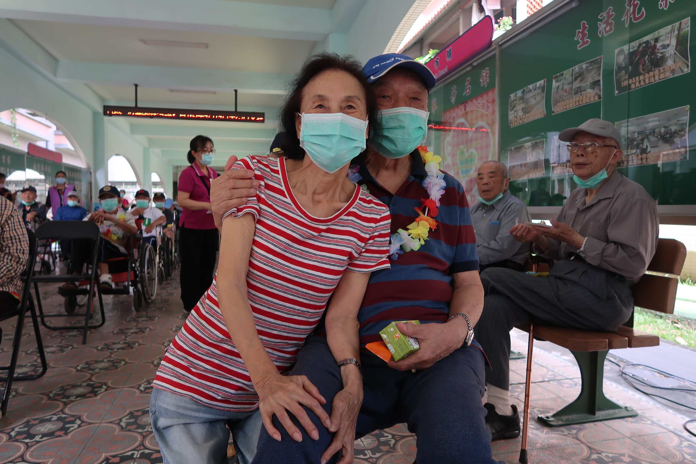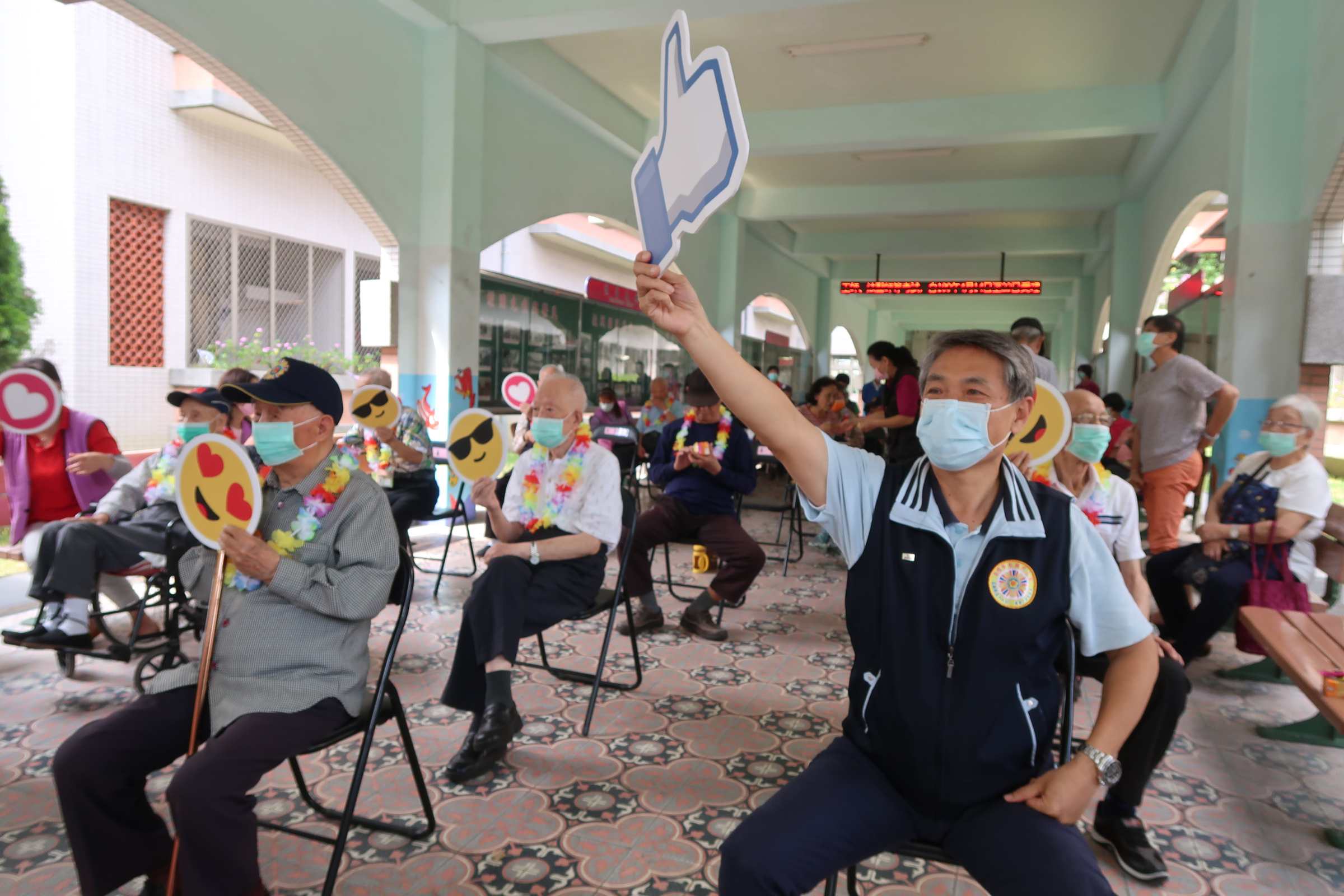 4月30日高雄榮家於文化走廊舉辦「4月份壽星慶生茶會」,現場除了壽星長輩外,聚集一群平時就愛唱歌的住民長輩們獻唱祝福,照服員也拿出好歌藝大車拚,壽星長輩們拿著手上的笑臉、愛心圖卡跟著家主任一起隨著音樂節奏揮舞,現場氣氛熱鬧又開心!