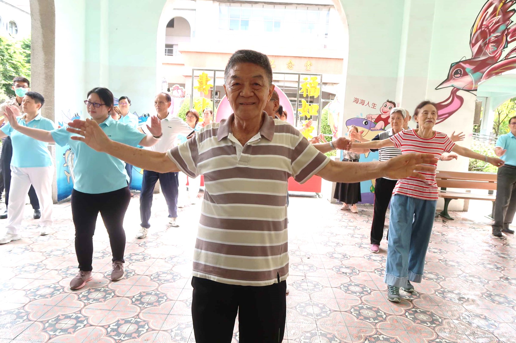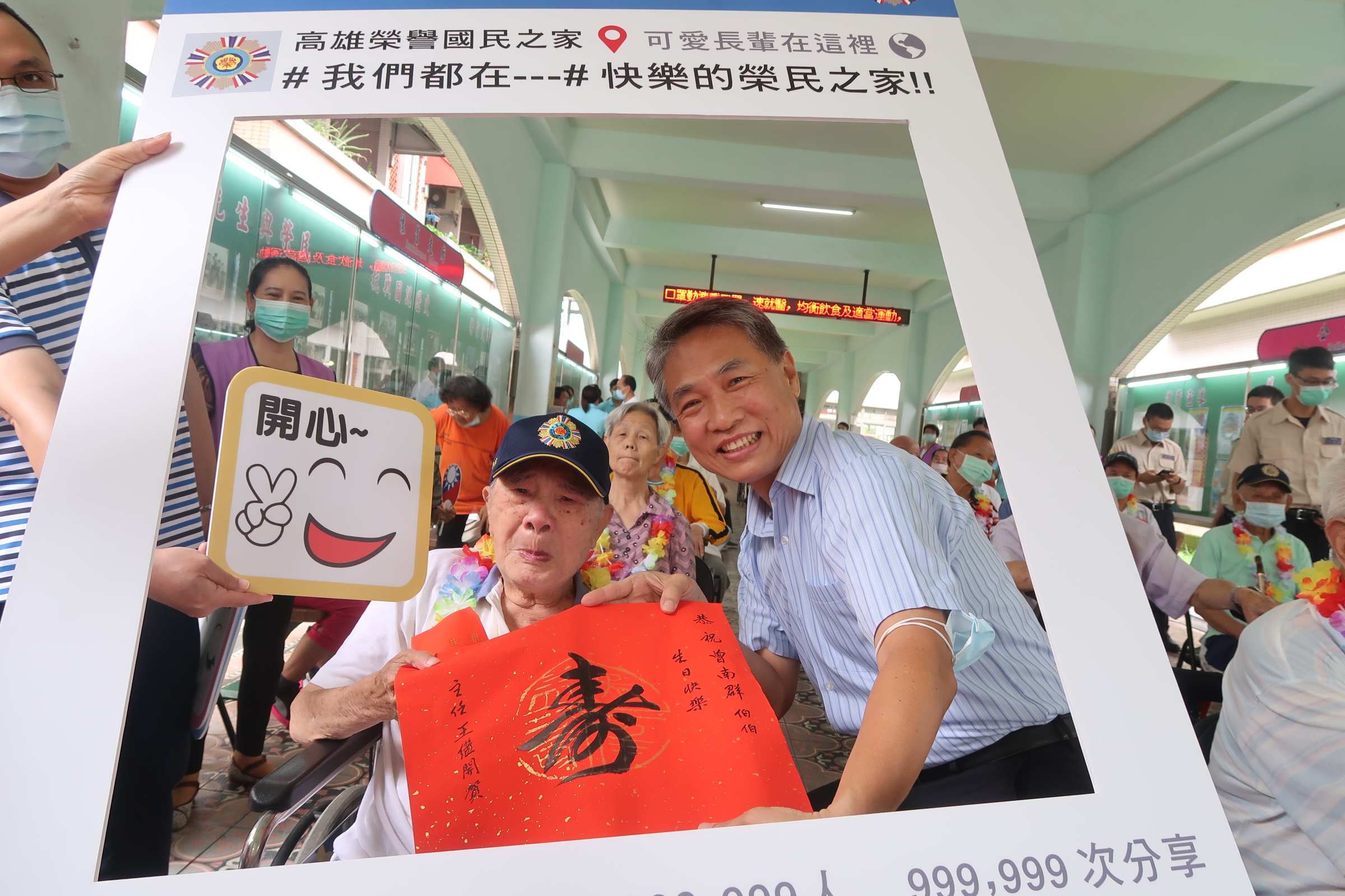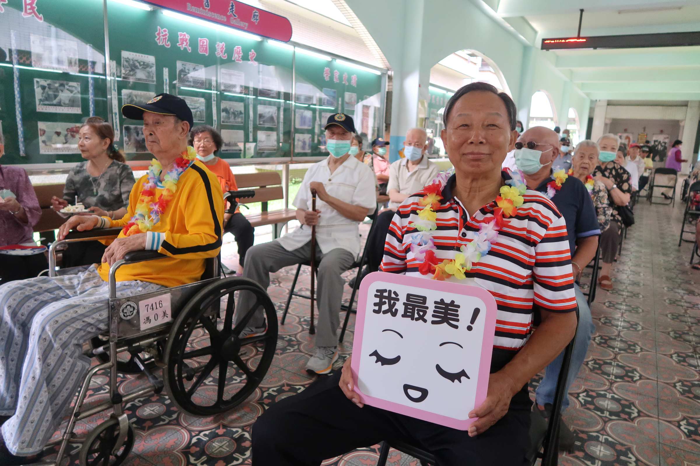 5月28日高雄榮家於文化走廊舉辦「5月份壽星慶生茶會」,由王繼開主任陪同高齡90歲壽星代表安豐增伯伯切壽糕,祝福所有壽星健康平安。榮家「舞林高手」及「唯我獨尊」兩組由保健組工作人員及住民組成的舞團成員,合併演出帶來動感十足的「防疫新生活運動操」,為慶生活動掀起高潮! 舞團推派80歲長相酷似衛福部阿中部長的劉伯伯代表宣讀「防疫新生活運動宣導」,只見現場驚呼聲連連,壽星長輩們笑稱:原來榮家防疫也超前部署,我們也有阿中部長駐守,引來如雷掌聲與笑聲! 現場最年輕壽星70歲詹大哥,首先帶來一首「媽媽」,以表達思念的心情,來祝福現場每位如父如母的高齡壽星長輩們,大家掌聲不斷。住民長輩們輪番上台演唱了「紅塵情歌」、「雙人枕頭」、「茶葉青」、「煙花三月」、「浪子心情」等動聽歌曲,甚少公開唱歌的王主任大受感動,現場應邀與住民張媽媽合唱「綠島小夜曲」,長輩們連聲喊安可,都說唱得好,慶生會現場高潮迭起。 茶會進行中,長輩們也搶著與榮家阿中部長在防疫新生活宣導同框合照,連百歲人瑞任奶奶也開心與家主任合照,長輩們開心享用茶點,個個笑的好燦爛,現場氣氛熱鬧又開心!王主任表示,雖然防疫不可鬆懈,只要依照衛福部防疫新生活運動指導,長輩們還是可以多多參加戶外活動,讓自己開心每一天! 相關照片