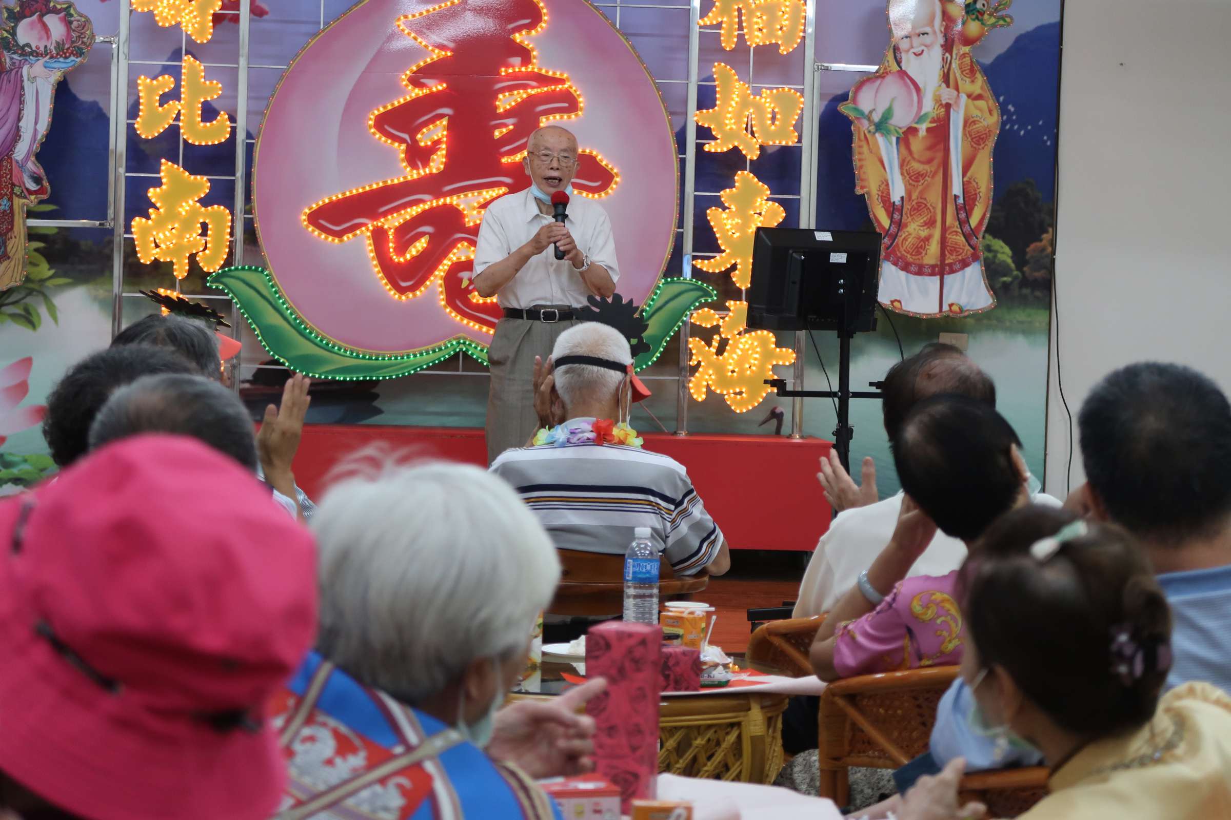 6月30日高雄榮家舉辦「6月份壽星慶生茶會」,由王繼開主任陪同高齡95歲壽星代表劉餘泉伯伯切壽糕,祝福所有壽星健康平安。中華佛教善緣慈善會顧問團團長黃隆正校長也蒞臨會場並帶來祝賀禮,致贈百歲人瑞敬老禮金及6月壽星長輩們紅包,長輩們報以熱烈掌聲。現場3位百歲人瑞及6位近百歲高壽長輩們也精心打扮,神采奕奕出席生日會,個個精神抖擻、中氣十足,讓前來祝福的黃校長也好感動! 表演活動由68歲壽星馮阿姨帶來溫婉小曲《煙花三月》拉開序幕。榮家長輩組成的「唯我獨尊」及保健組職員的「舞林高手」舞團再次合體,為壽星長輩們帶來精彩的團體舞蹈,台下的大家跟著旋律打節拍,為慶生活動掀起一波高潮。73歲既是壽星又是舞蹈團員的張媽媽上台獻唱《榕樹下》,讓大家印象深刻,大讚她能歌善舞好才藝,張媽笑得好開心,有了大家的讚賞打氣讓她愈跳愈起勁! 92歲蘇伯伯帶著濃濃鄉音,很有自信上台表演自己的創作《北京相聲繞口令》,一口氣連講好幾句繞口令,厲害的記憶力、順溜又不打結的嘴上功夫,讓大家瞠目結舌,獲得超級熱烈掌聲!住民長輩們輪番上台演唱《你怎麼說》、《真心真意過一生》、《花心》、《落山風》、《戀曲1980》,90歲夫妻房顧伯伯更以一首《花好月圓》為活動劃上句點,並祝福自己的壽星牽手及所有壽星們健康久久、花好月圓人長久! 中華佛教善緣慈善會顧問團黃隆正校長表示慈善會以實際行動照顧榮民,期能喚醒社會大眾尊敬長者的倫理,今天看到榮家長輩高齡又健康,心裡有滿滿感動。很高興善緣慈善會能藉此飲水思源感謝榮民老前輩對國家社會的貢獻,祝福長輩們健康呷百二!王主任感謝張騰龍會長帶領的中華佛教善緣慈善會,長年來對榮民長輩的關懷與照顧,為善不落人後的風範,令人敬佩,也鼓勵長輩們多活動笑口常開,讓健康快樂相伴每一天! 相關照片