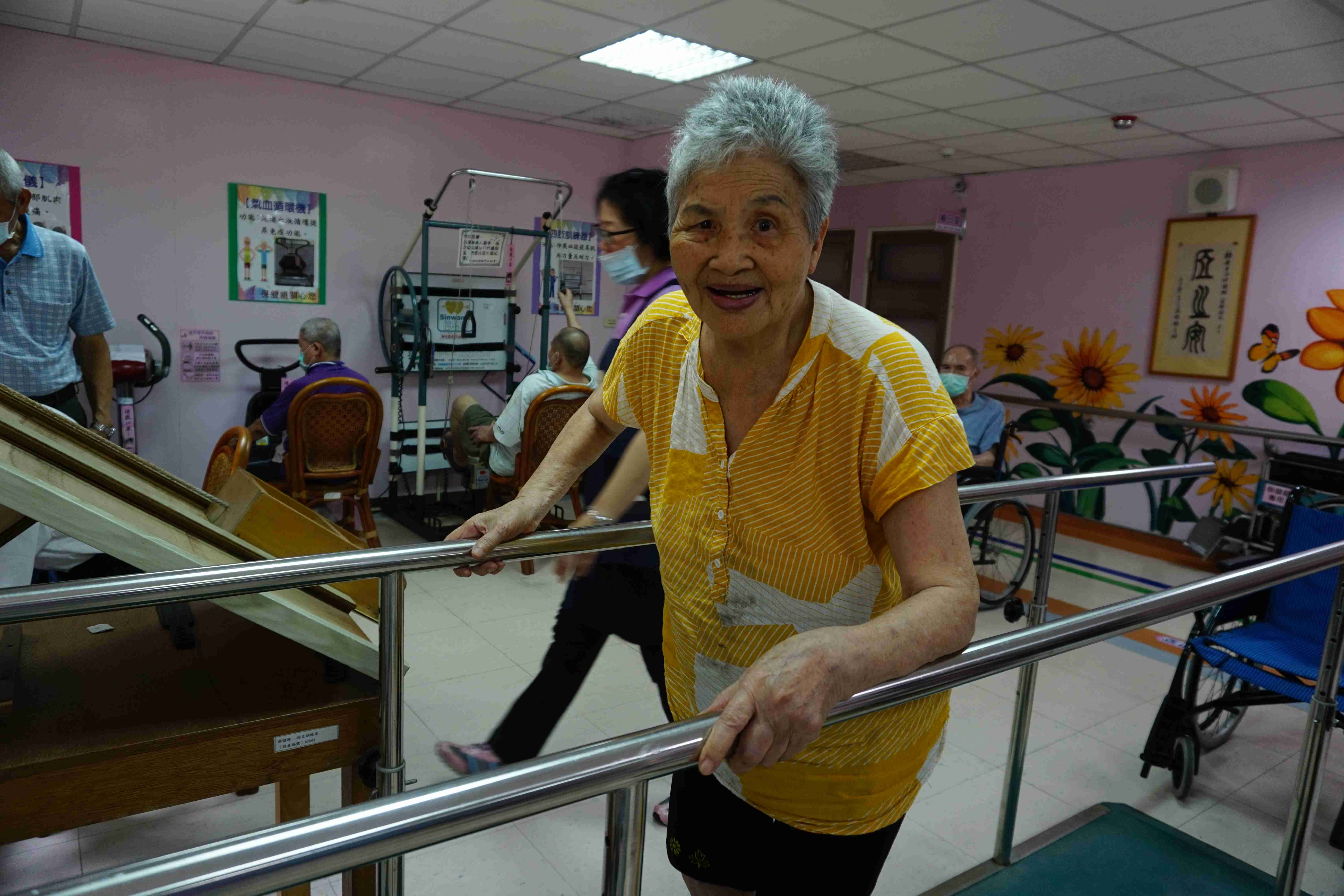 活出健康幸福的人生,要活就要動~,日照長輩在運動休閒室跟著榮家長輩們一起活動筋骨,不時還會聊聊天唱唱歌,最常哼唱的就是~愛拼才會贏!