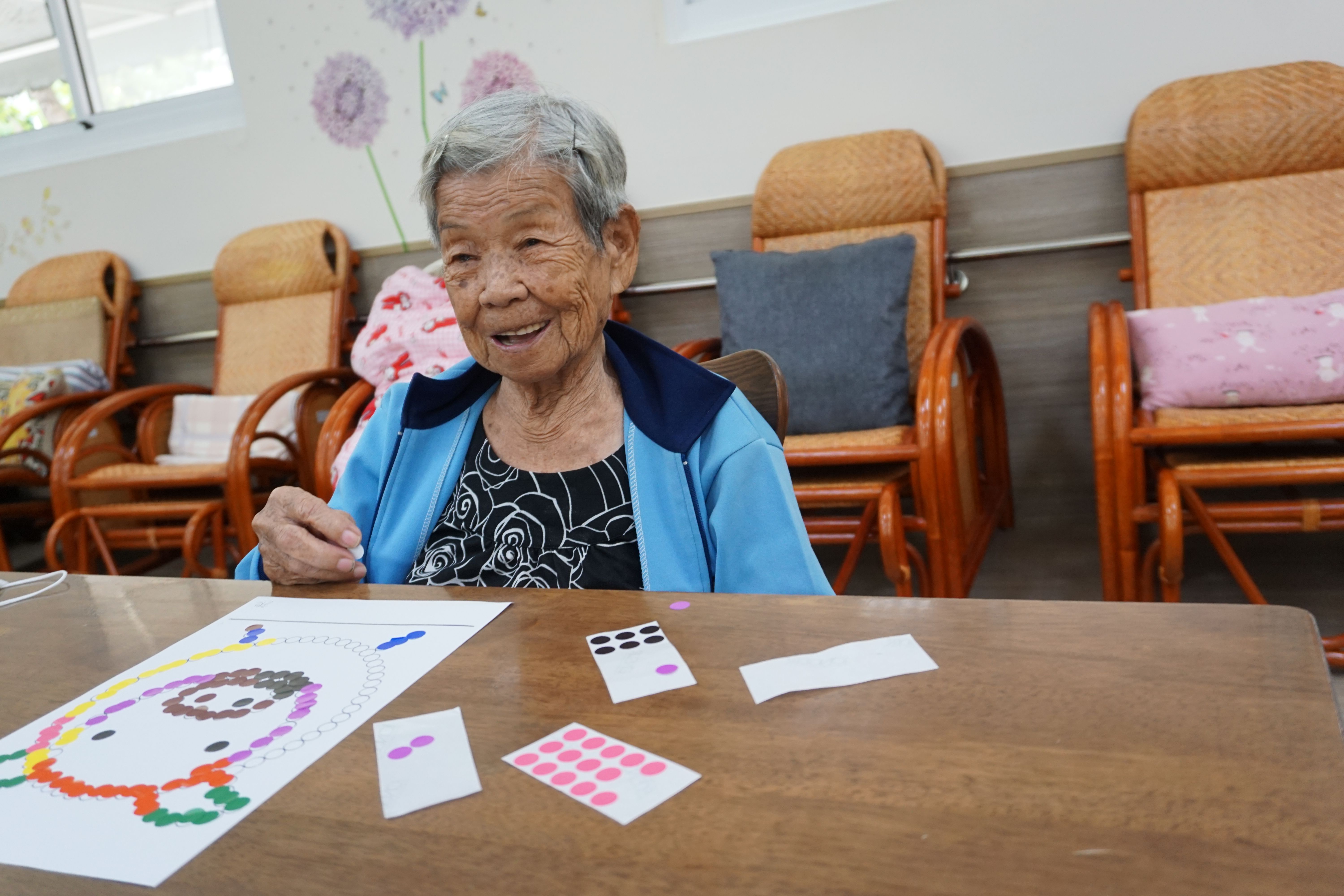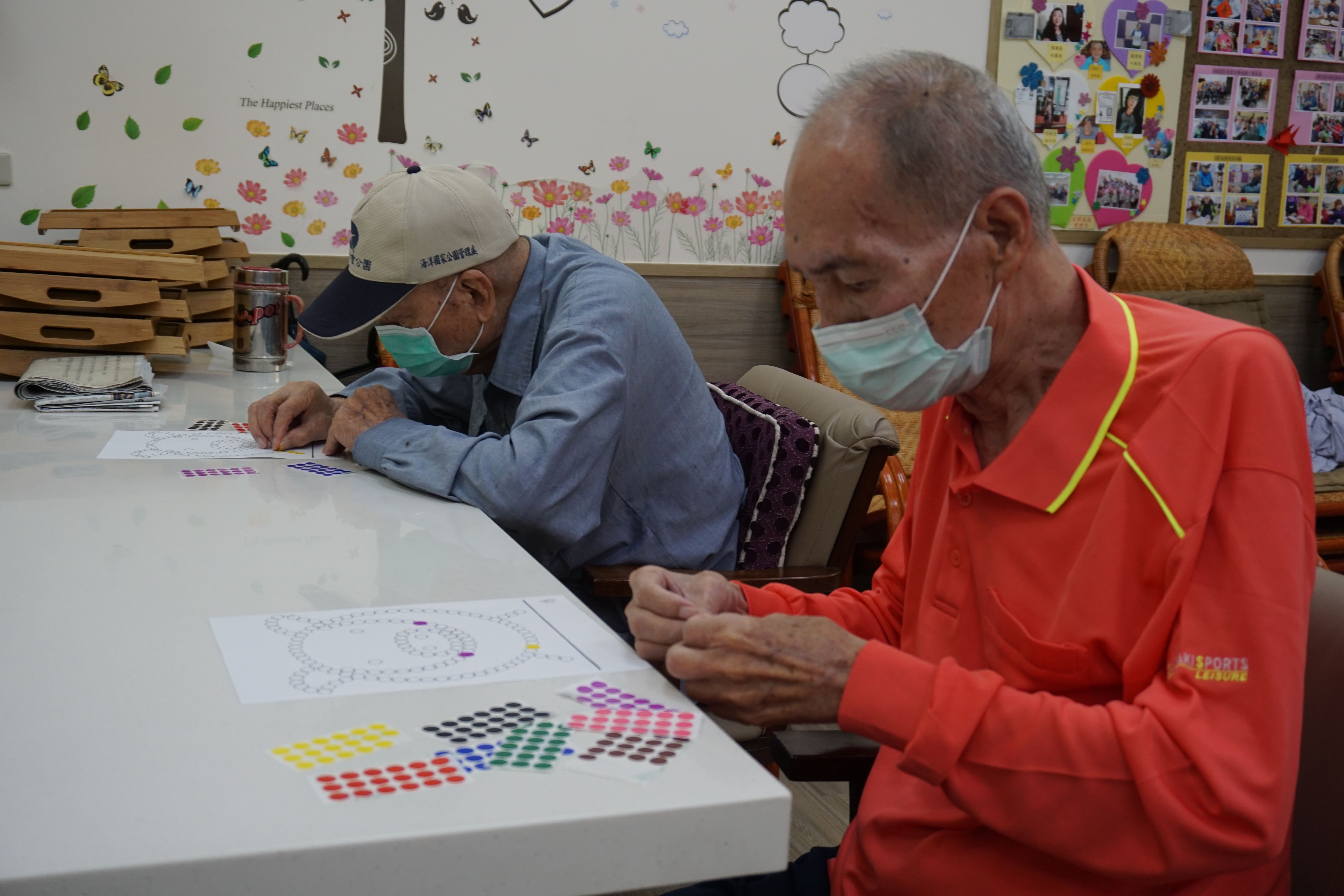 七彩的圓點貼讓視覺有強烈的衝擊,長輩們還可以練習手部精細動作,發揮自己的創意替圖案來配色,每一個作品都是獨一無二的呦~